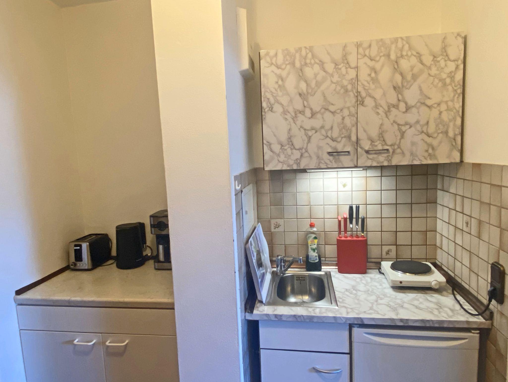 Gemütliche Ferienwohnung für bis zu 3 Personen – Ihr perfektes Zuhause auf Zeit! Willkommen in unserer liebevoll eingerichteten Ein-Zimmer-Ferienwohnung mit 35 qm Wohnfläche – ideal für 1 bis 3 Personen! Die stilvolle Ausstattung mit Vinyl-Bodenfliesen sorgt für eine angenehme Atmosphäre, während Sie sich im freundlich eingerichteten Wohn- und Schlafbereich mit Doppelbett und ausziehbarer Schlafcouch entspannen können. Ein Essplatz im Wohnraum bietet genügend Platz, um gemeinsame Mahlzeiten zu genießen – sei es ein gemütliches Frühstück oder ein entspannter Abend mit leckerem Essen. Für Unterhaltung ist bestens gesorgt: Ein TV und kostenloses WLAN stehen Ihnen zur Verfügung. Die Kochnische mit Einbauküche, 2-Zonen-Kochfeld, Kaffeemaschine, Kühlschrank und Wasserkocher bietet alles, was Sie für die Zubereitung Ihrer Lieblingsgerichte brauchen. Das Badezimmer verfügt über eine Dusch-/Badewanne, ein WC und Fön, damit Sie sich nach einem erlebnisreichen Tag erfrischen können. Haustierliebhaber aufgepasst: Ein Hund darf gegen Aufpreis gerne mitgebracht werden!