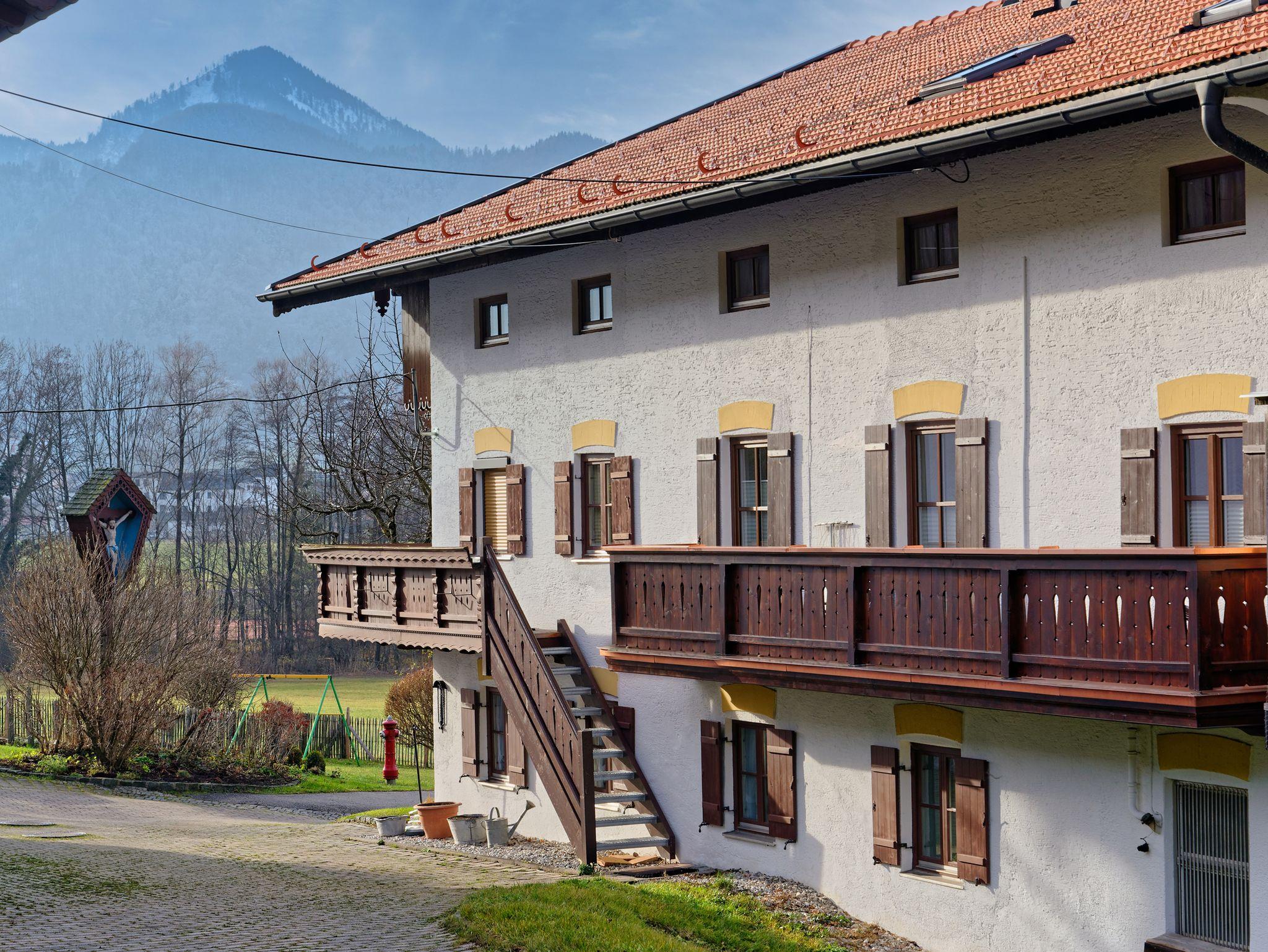 Ehemaliger Bauernhof in idyllischer Alleinlage am Ortsrand von Aschau . in Richtung Bernau am Chiemsee. Sehr schöner Blick in Richtung Aschau iemgau und die umliegenden Bergen auf das Zellerhorn. Ferienwohnungen im Nebenhaus, Zimmer und Ferienwohnungen im Haupthaus. 500 m zum Badeplatz mit Tennisplatz und Moorbadeplatz, jeweils mit Kiosk. 10 Minuten Fußweg zur Orthopädischen Kinderklinik und 15 Minuten in den Ort, 7,4 km zum Chiemsee und 3,3 km zur Kampenwandseilbahn.