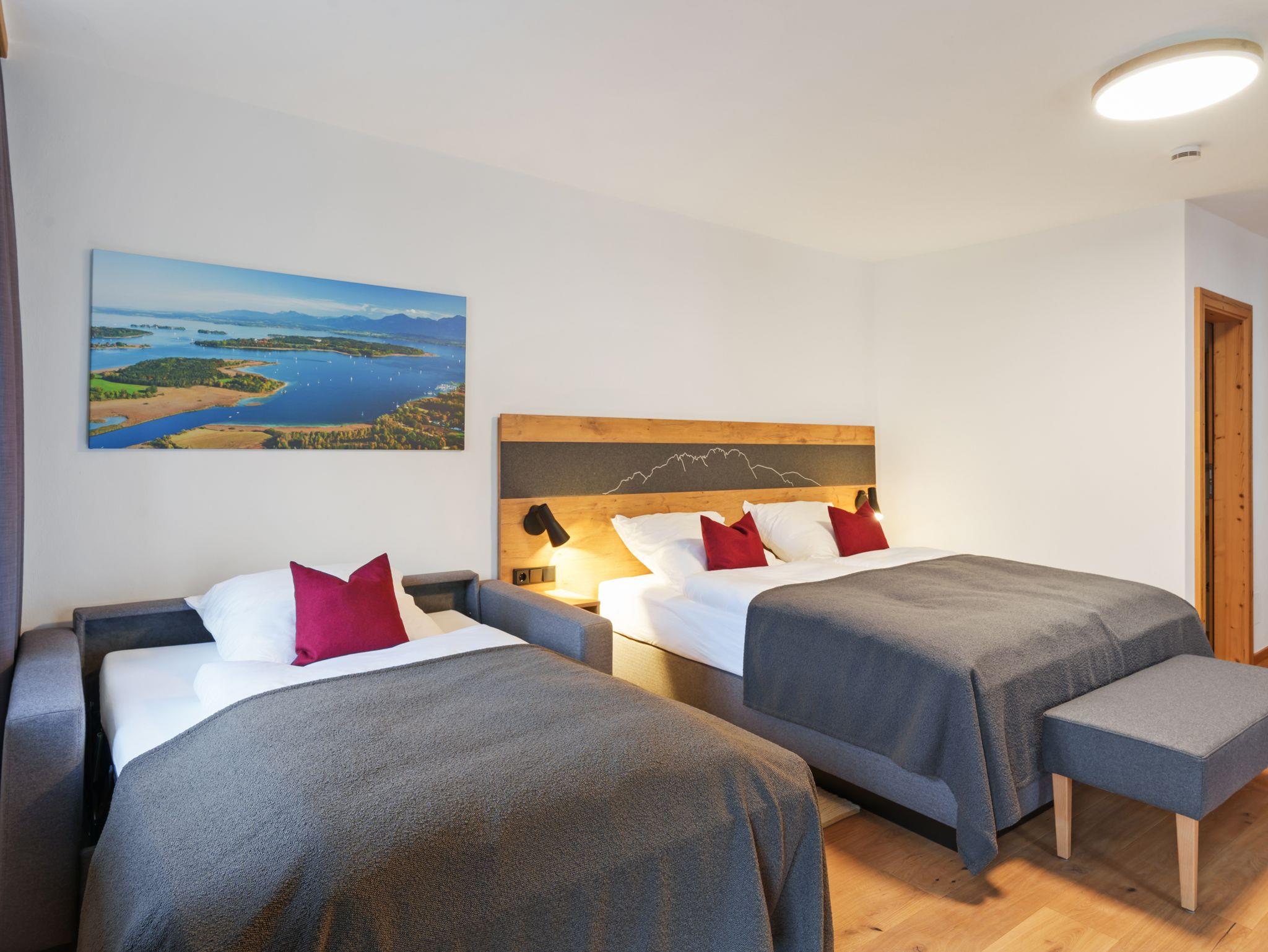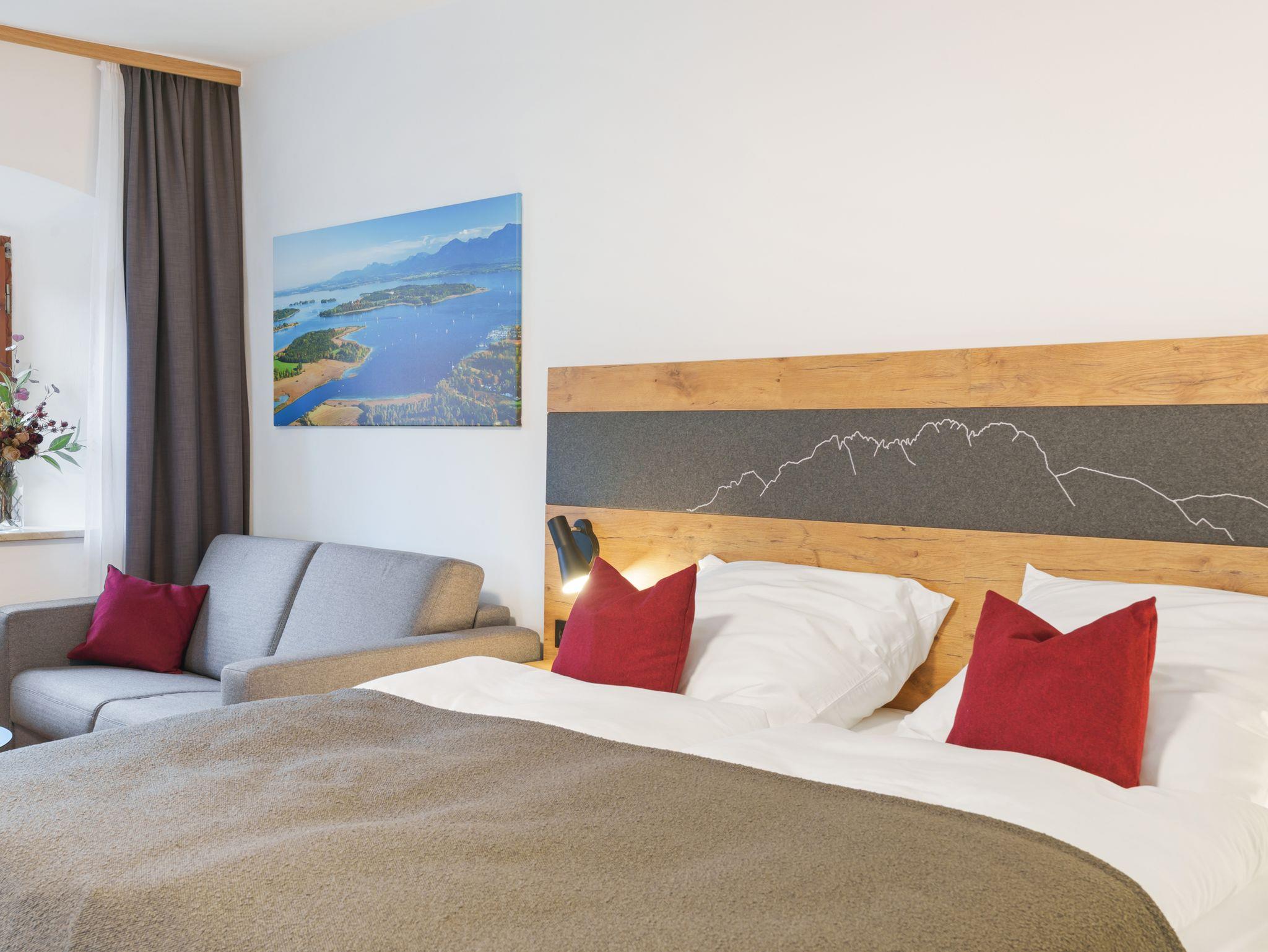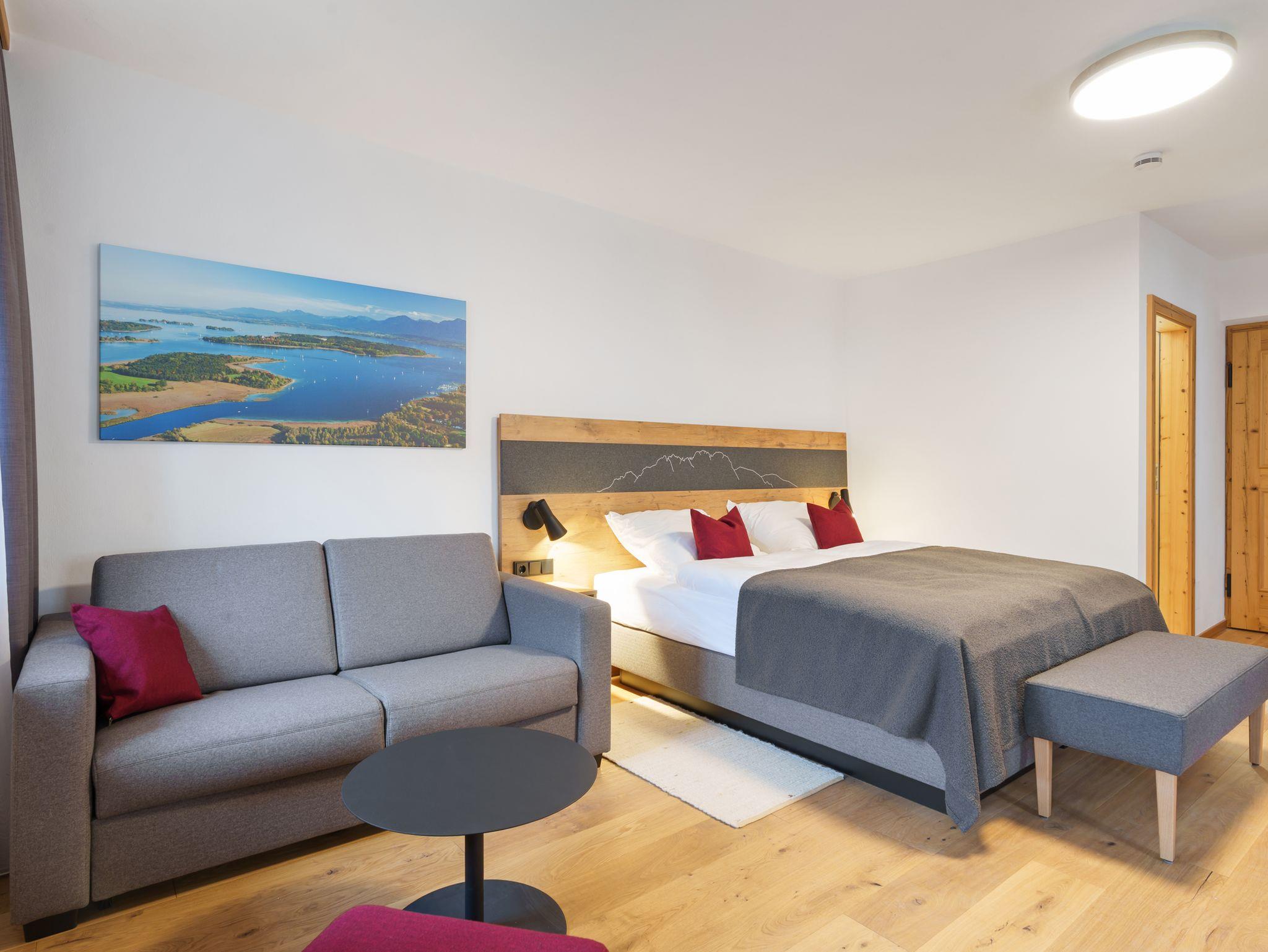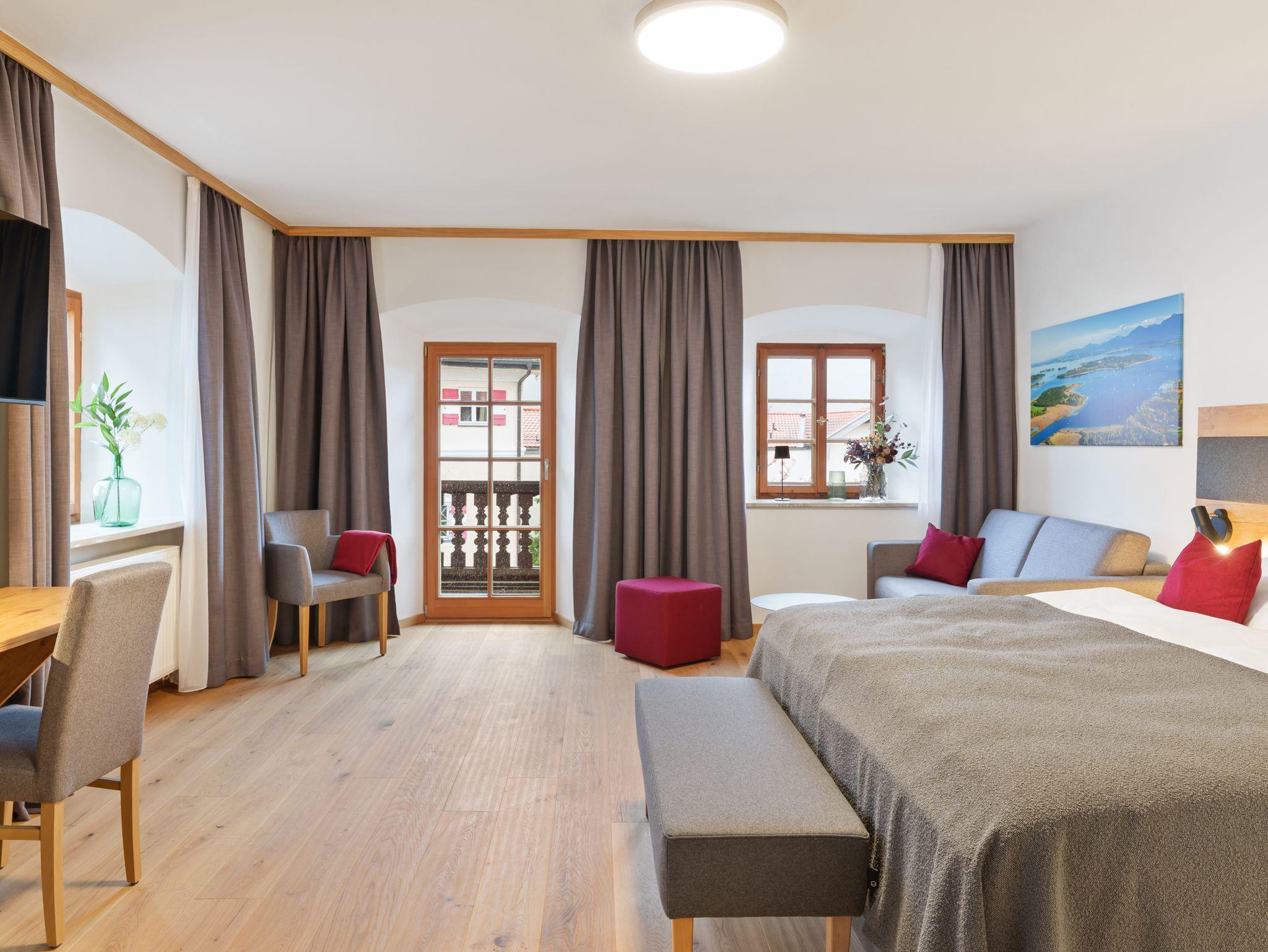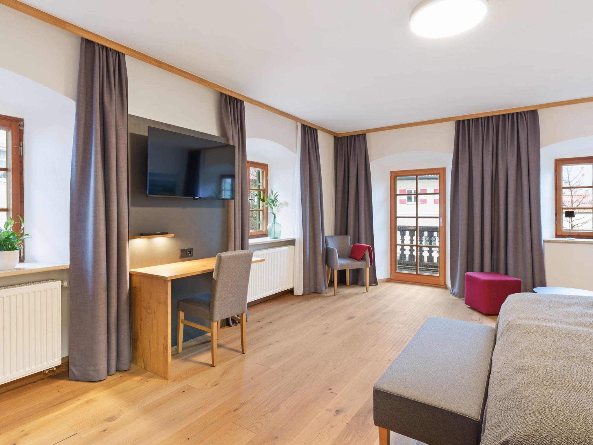 Das Highlight: Ihr eigener Balkon mit herrlichem Blick auf die Kampenwand und Schloss Hohenaschau – perfekt für entspannte Stunden in der Sonne oder romantische Abende. Der warme Charakter echter Holzparkettböden schafft eine behagliche Atmosphäre. Ein Hund ist auf Anfrage im eigenen Körbchen gegen Aufpreis erlaubt, bitte halten Sie mit uns Rücksprache.
