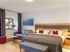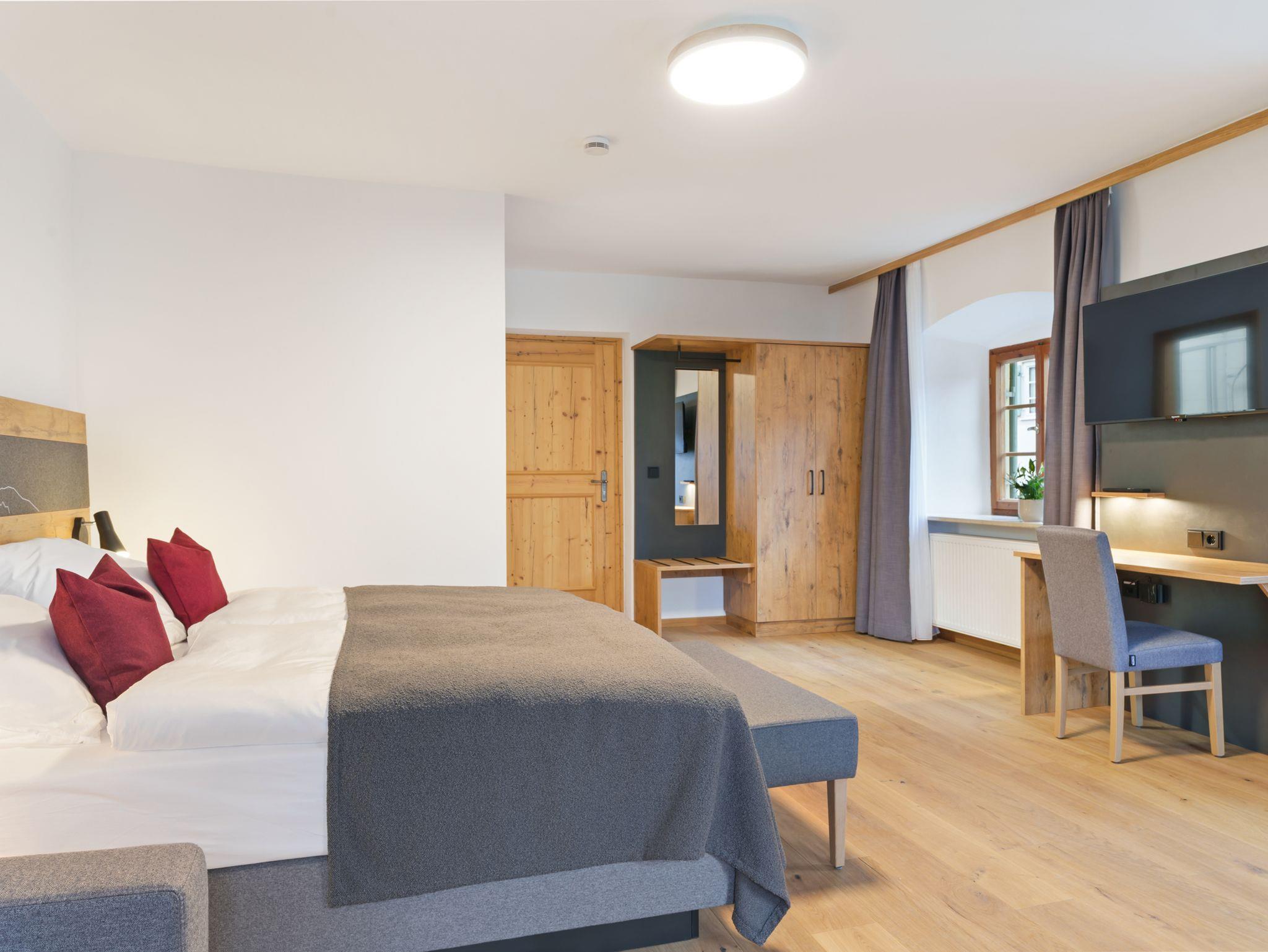 Zur Ausstattung gehören moderne Annehmlichkeiten wie Dusche, WC, Fön, Smart-Kabel-TV, Safe, W-LAN, Kofferablage sowie ein Schreibtisch, der sich auch ideal fürs Homeoffice eignet.