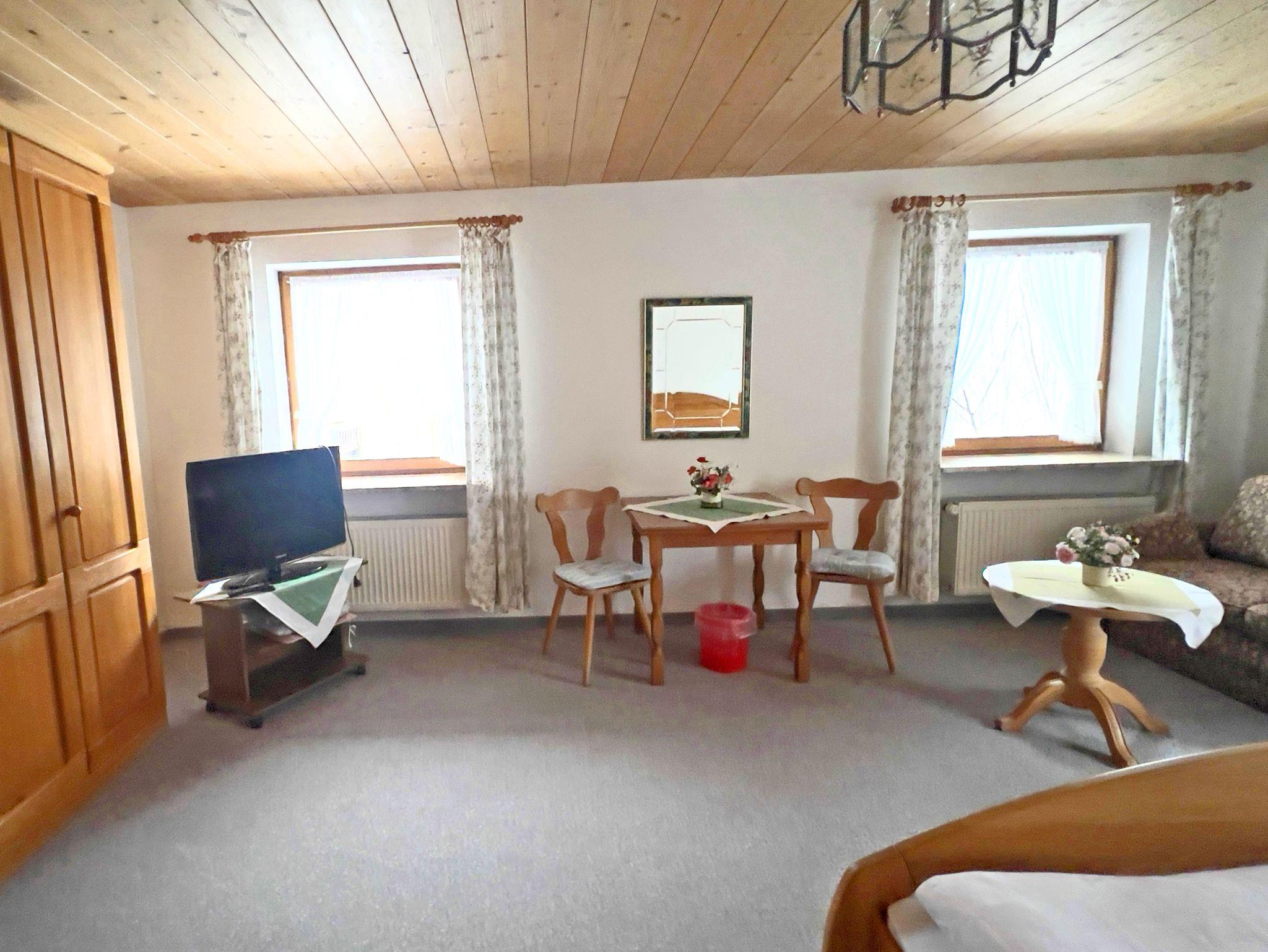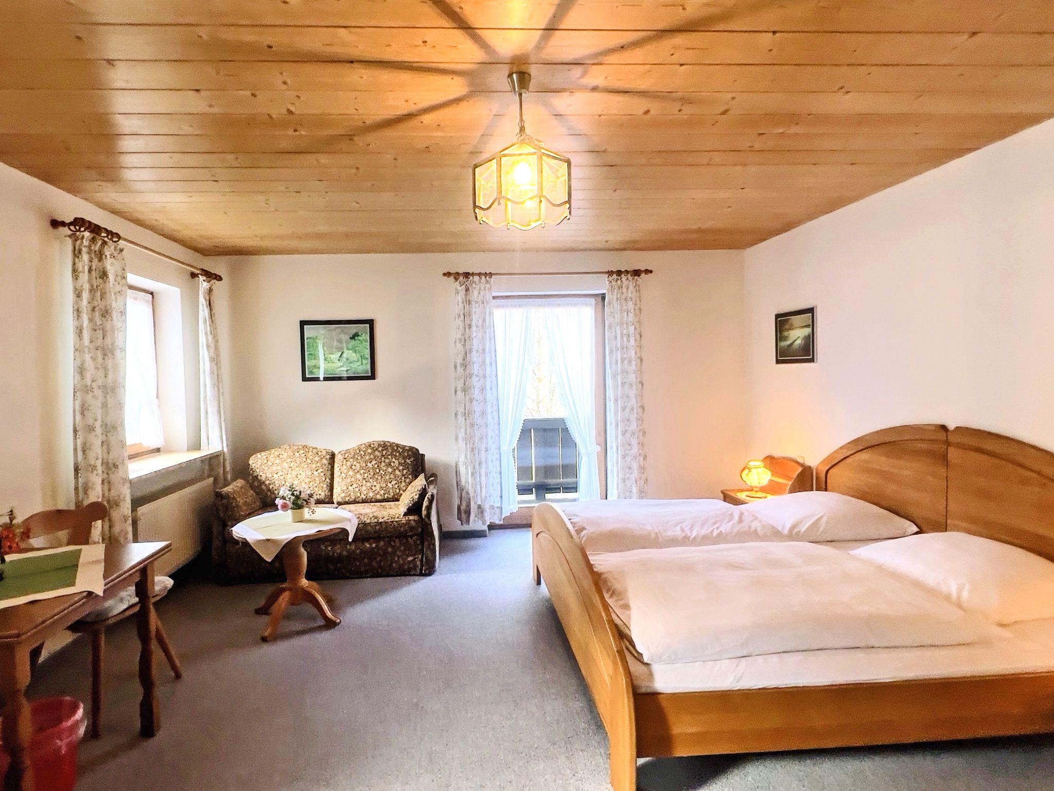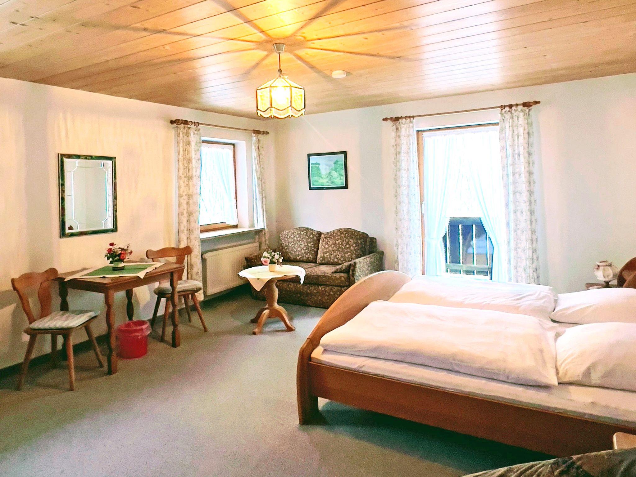 Großes helles Doppelzimmer mit Dusche/WC, Föhn, TV und Balkon. Herrlicher Blick vom Balkon auf das Zellerhorn und die umliegenden Berge. Kostenloses WLAN, ein Hund darf gegen Aufpreis gerne mitgebracht werden. Ihr Frühstück genießen Sie im Frühstücksraum.