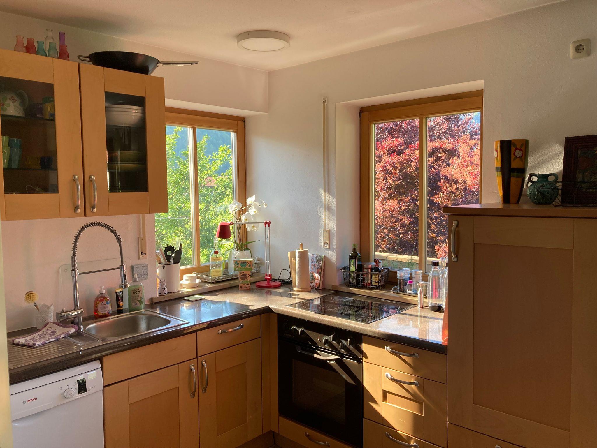 Die Wohnung liegt im sonneverwöhntenTeil Aschaus, 10 Gehminuten ins Zentrum. Das Haus liegt in einer ruhigen Straße, nach 50 Metern beginnen die Felder und viele Talwanderwege.