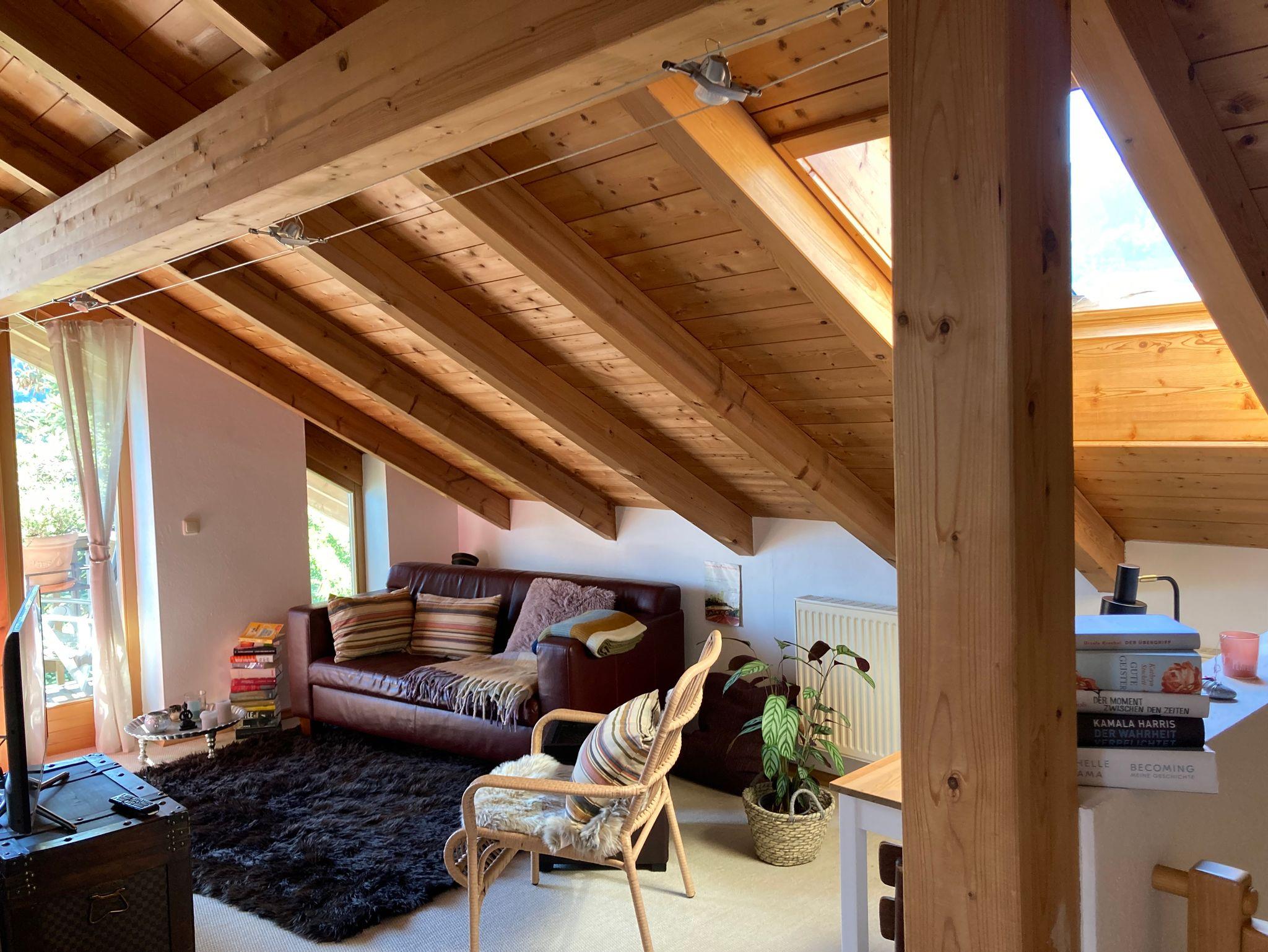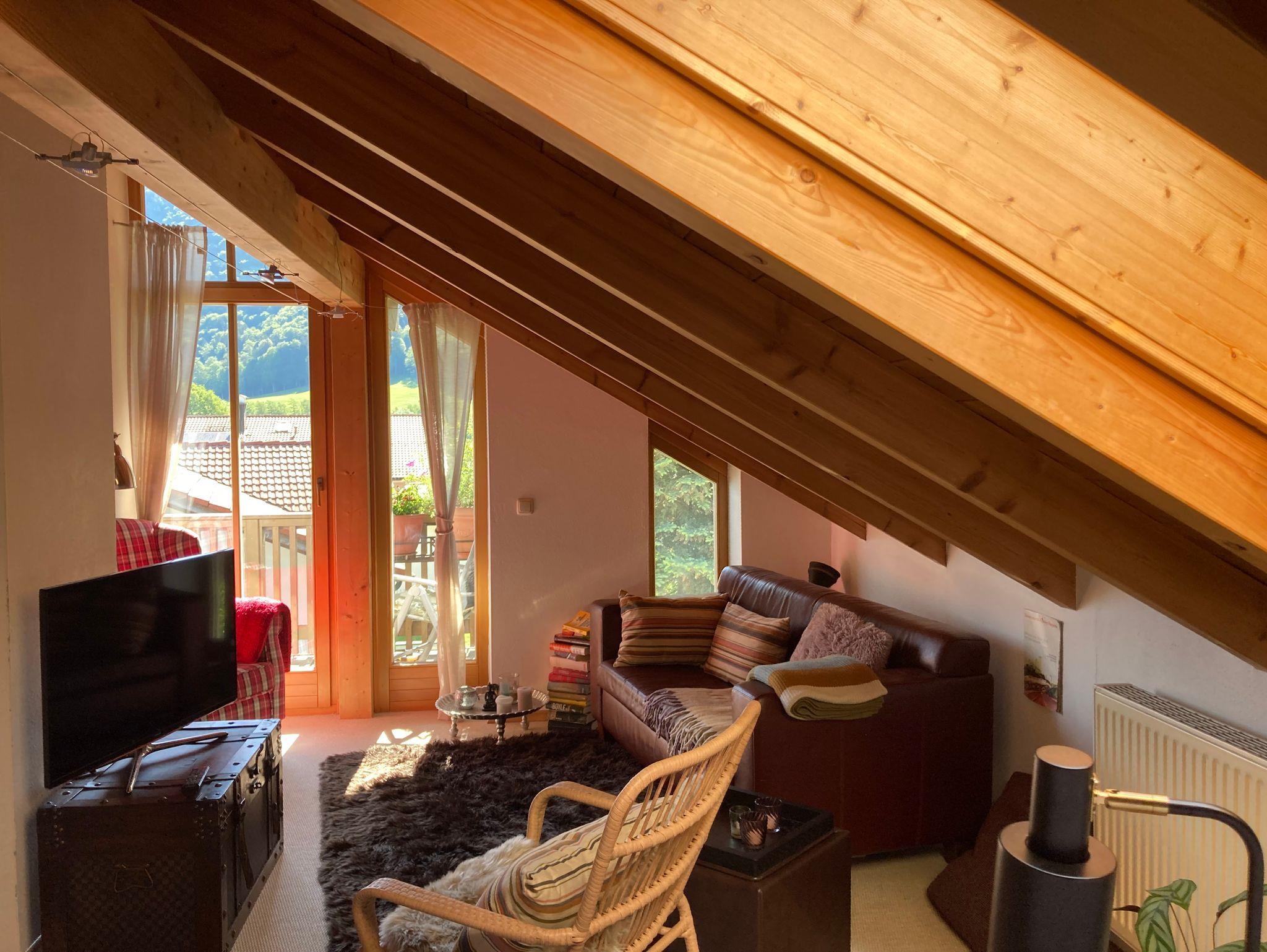 Die Nichtraucher-Ferienwohnung KampenWinkel bis 4 Personen im 1. Stock ist eine schöne, gemütliche Maisonette-Ferienwohnung auf zwei Ebenen (68 qm) mit zwei großen Balkonen und fantastischem Blick auf die Kampenwand.