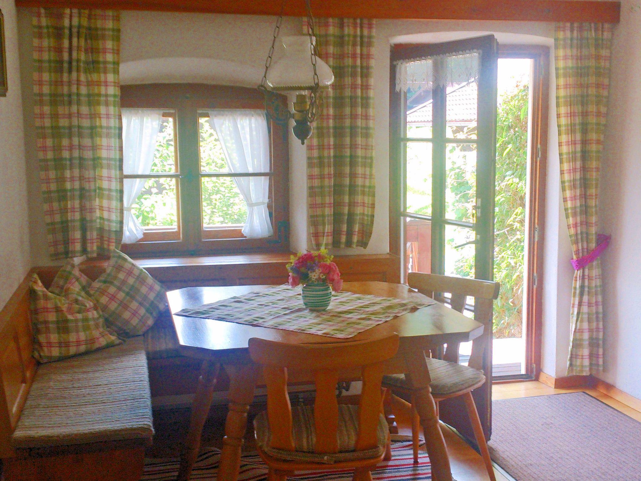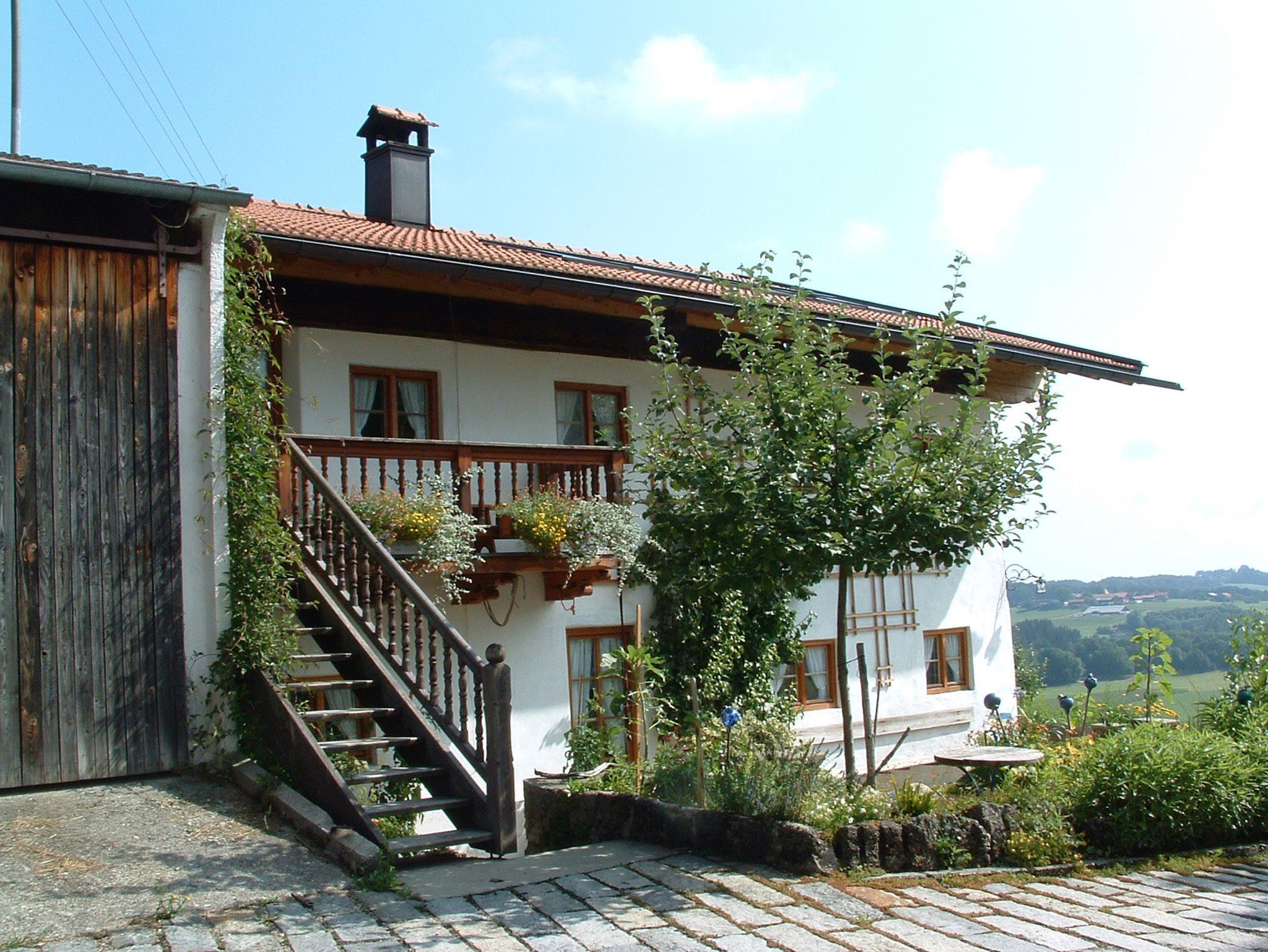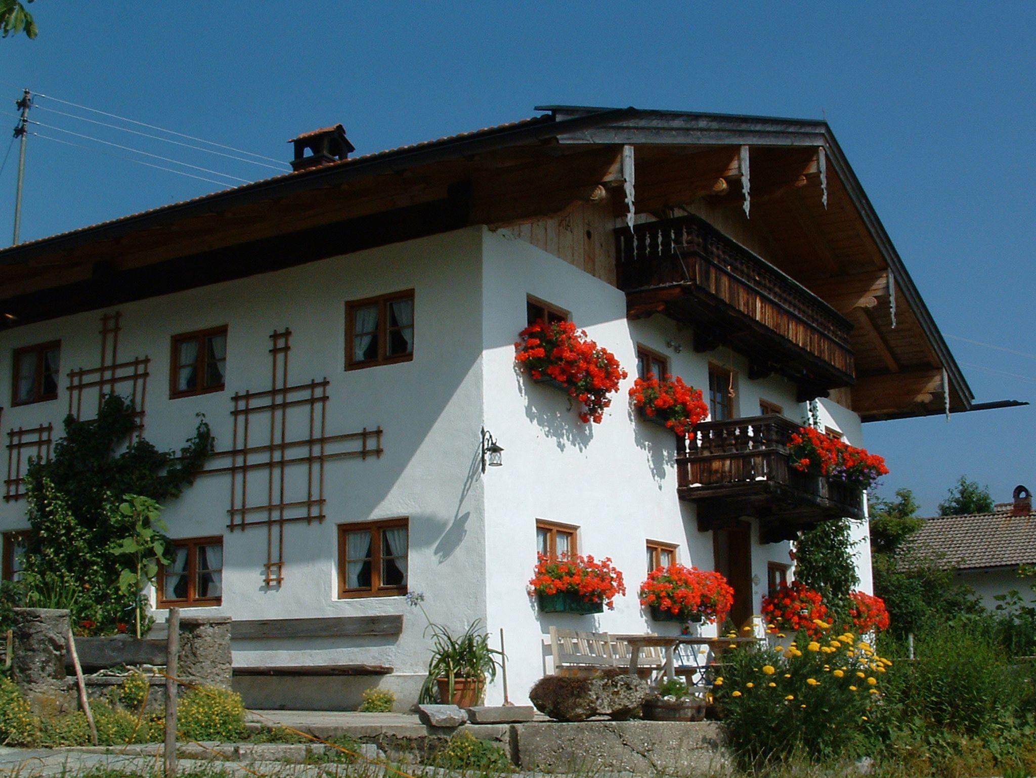 Gemütliche Nichtraucher Ferienwohnung (1.Stock) mit Parkettböden, mit zwei separaten Schlafzimmern mit Doppelbett, in einem Schlafzimmer ist ein zusätzliches Einzelbett. Wohnküche mit Eckbank, SAT-TV, W-LAN und Kochnische, Dusche und WC, Parkettböden, Südbalkon, separater Eingang und eigener Parkplatz. Freisitz im Bauerngarten mit Panoramablick auf Aschau, Kampenwand und Schloss Hohenaschau.