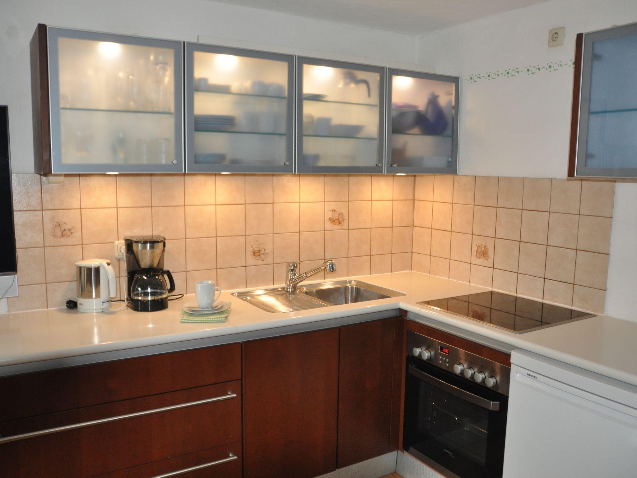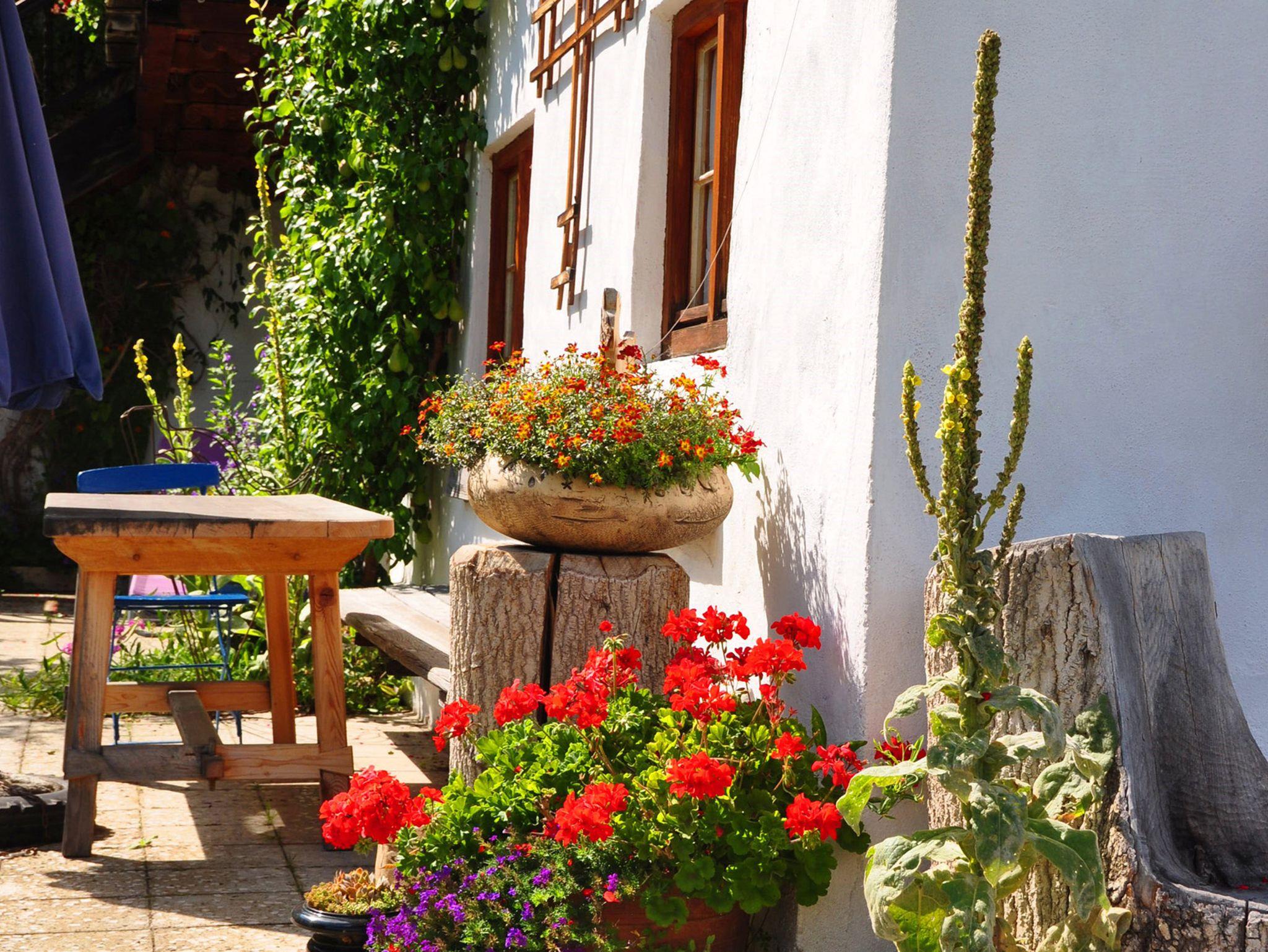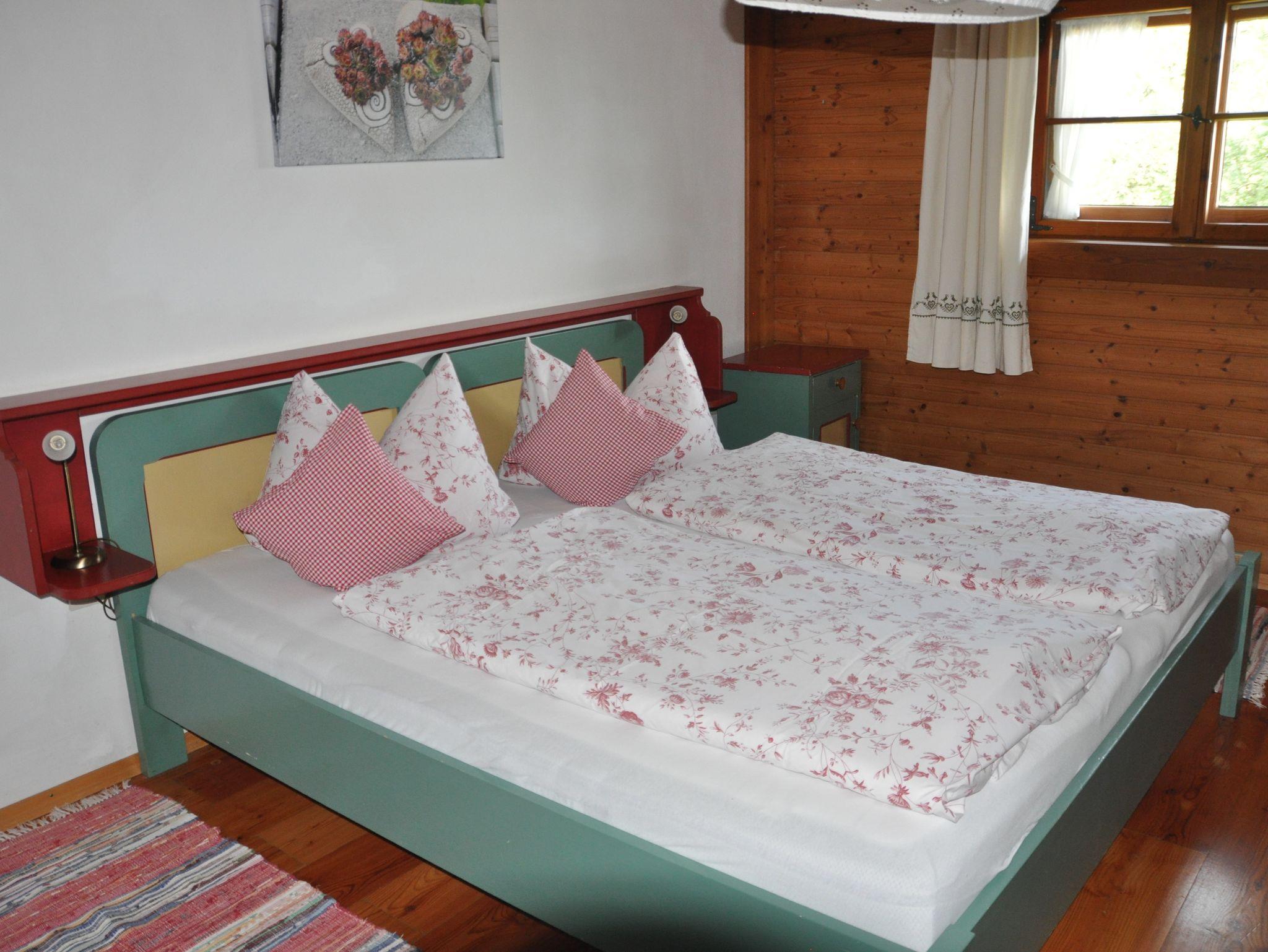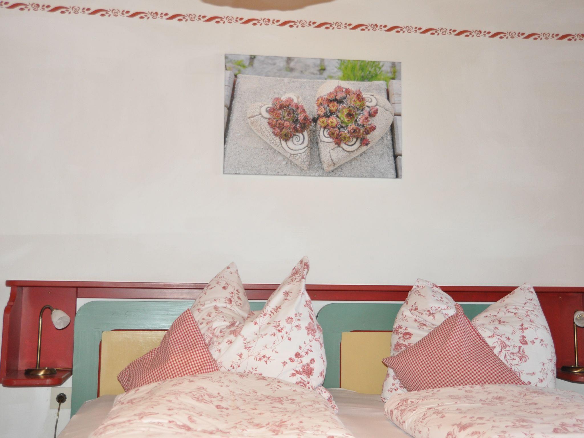 Gemütliche Nichtraucher Ferienwohnung (1.Stock) mit Parkettböden, mit zwei separaten Schlafzimmern mit Doppelbett, in einem Schlafzimmer ist ein zusätzliches Einzelbett. Wohnküche mit Eckbank, SAT-TV, W-LAN und Kochnische, Dusche und WC, Parkettböden, Südbalkon, separater Eingang und eigener Parkplatz. Freisitz im Bauerngarten mit Panoramablick auf Aschau, Kampenwand und Schloss Hohenaschau.