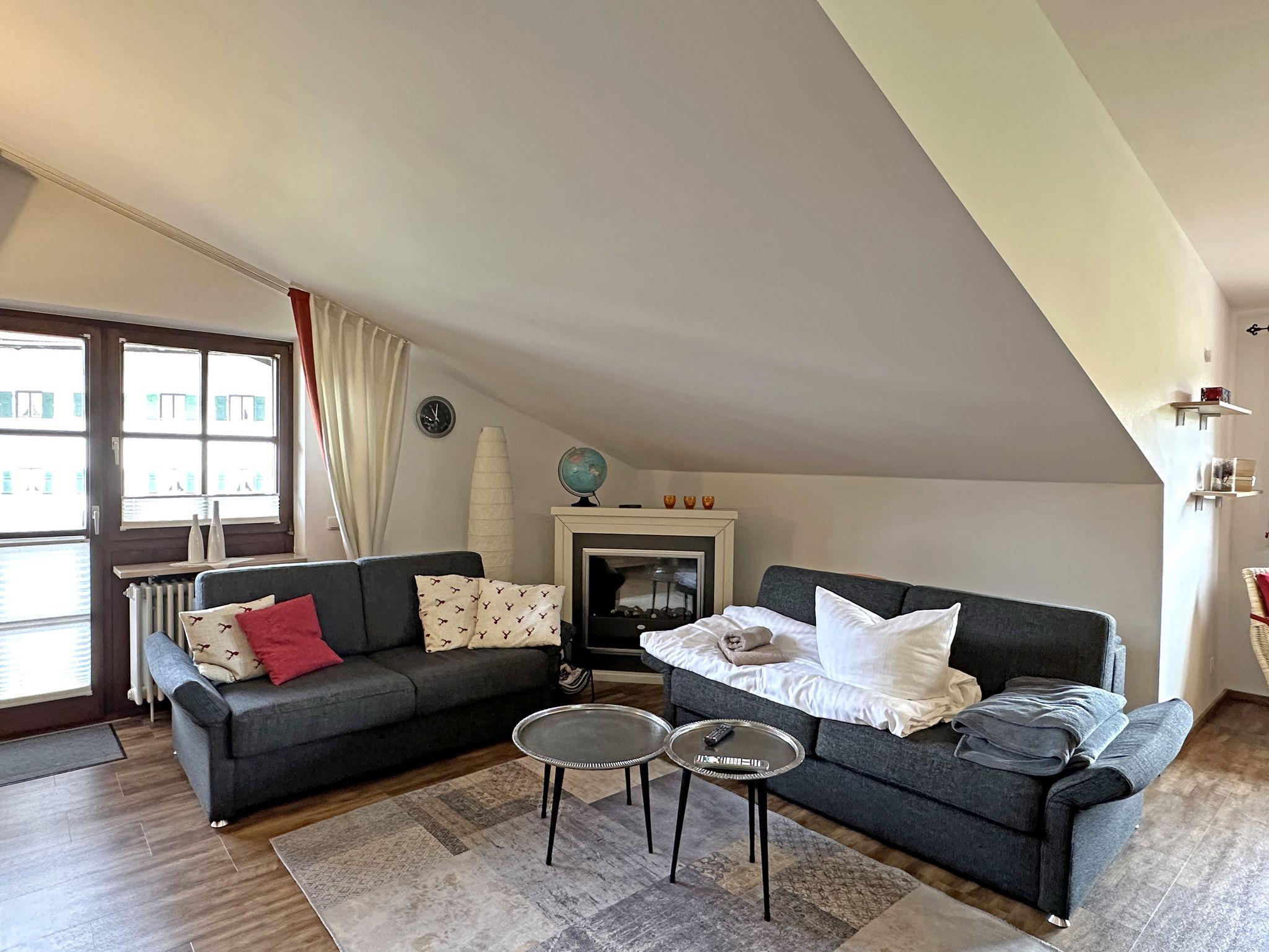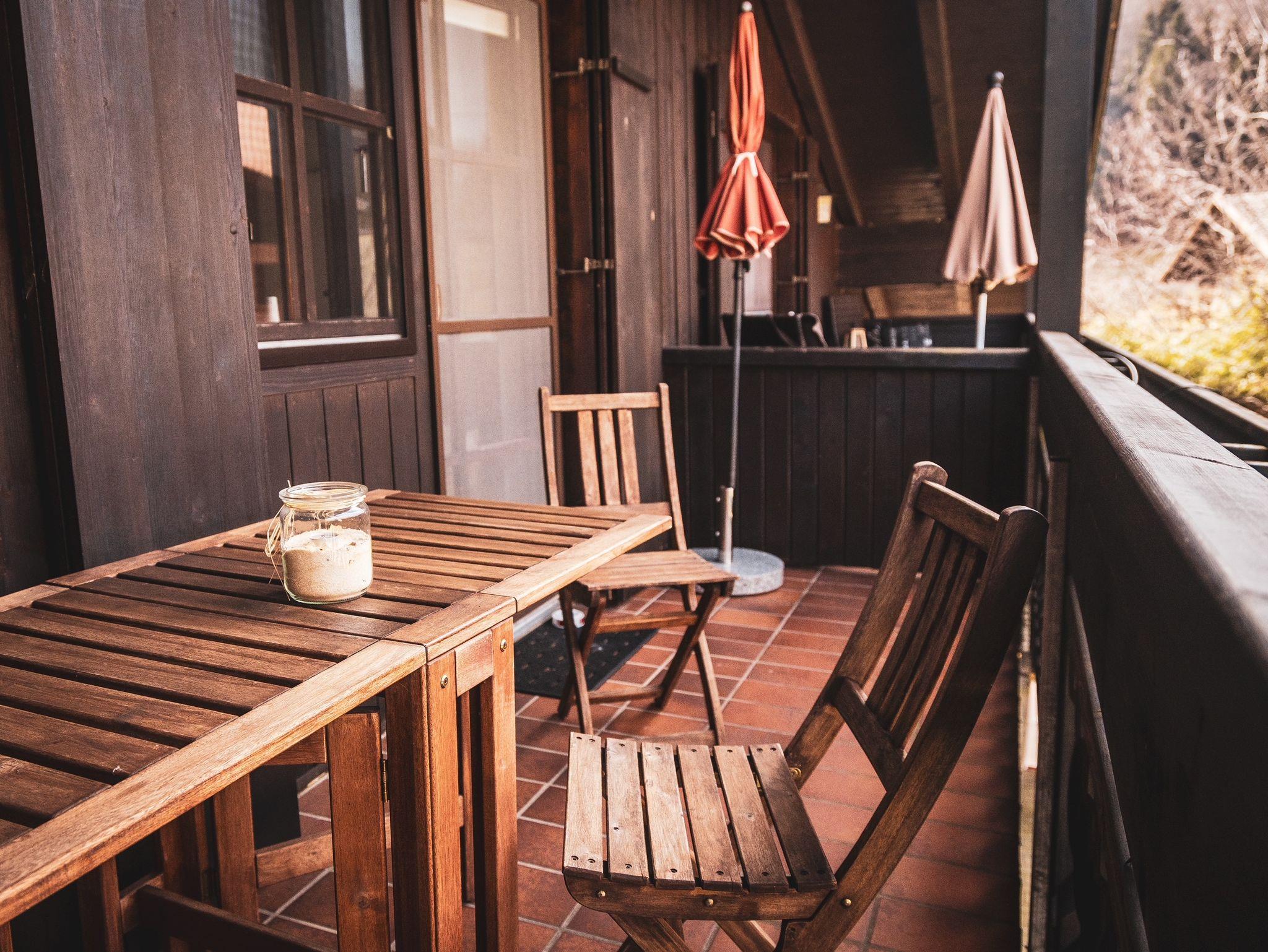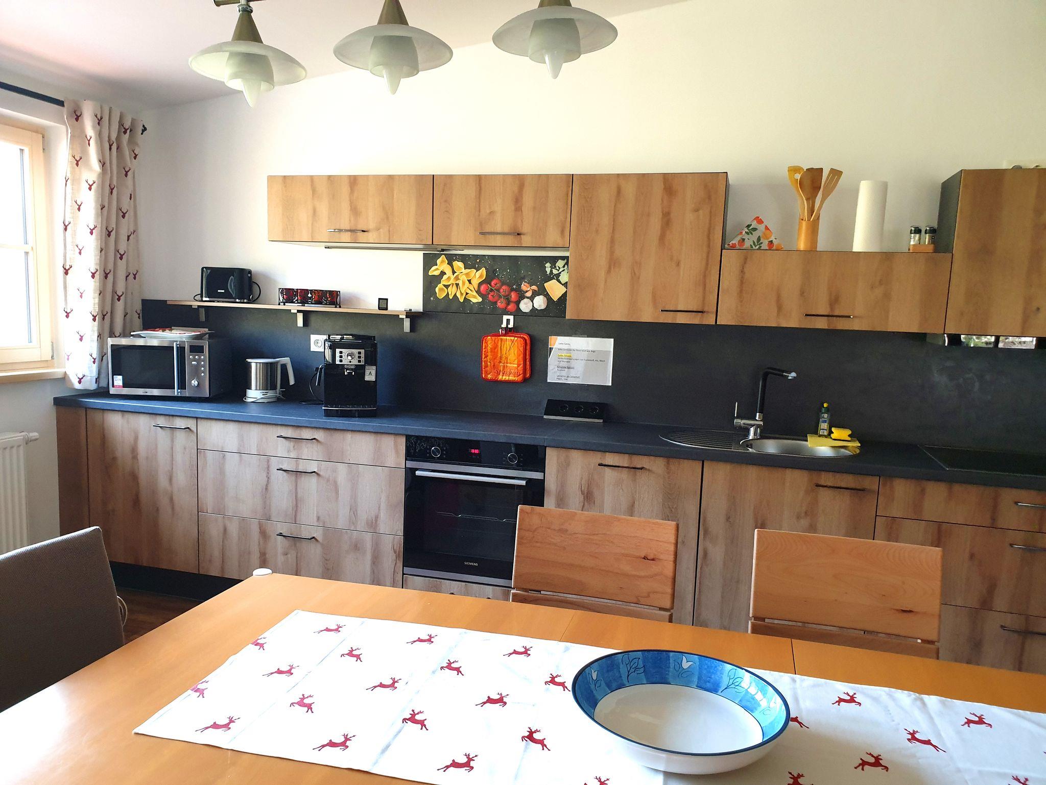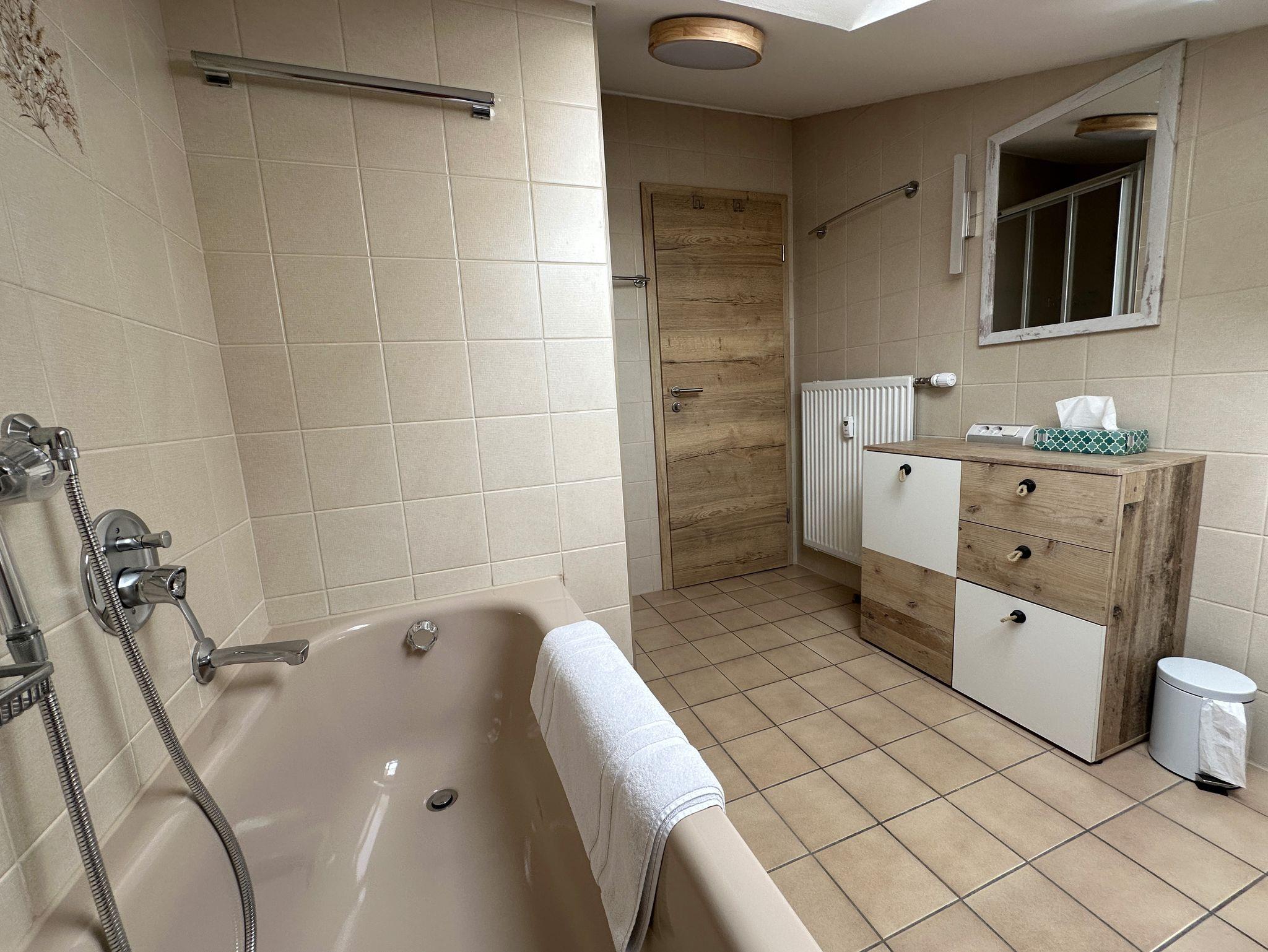 Sehr ruhig gelegene Ferienwohnung im 1. Stock, 73 qm mit teilweise leichter Mansarde und schönem Balkon mit Abendsonne. Die geräumige Wohnung verfügt über ein Schlafzimmer, ein Badezimmer mit Fenster, Dusche und Badewanne, Fön, sowie 2024 durch eine Gaube komplett neugestalteten, großen Wohnraum mit erweiterter Küche, Ess- und Wohnzimmer und neuem Vinylboden.