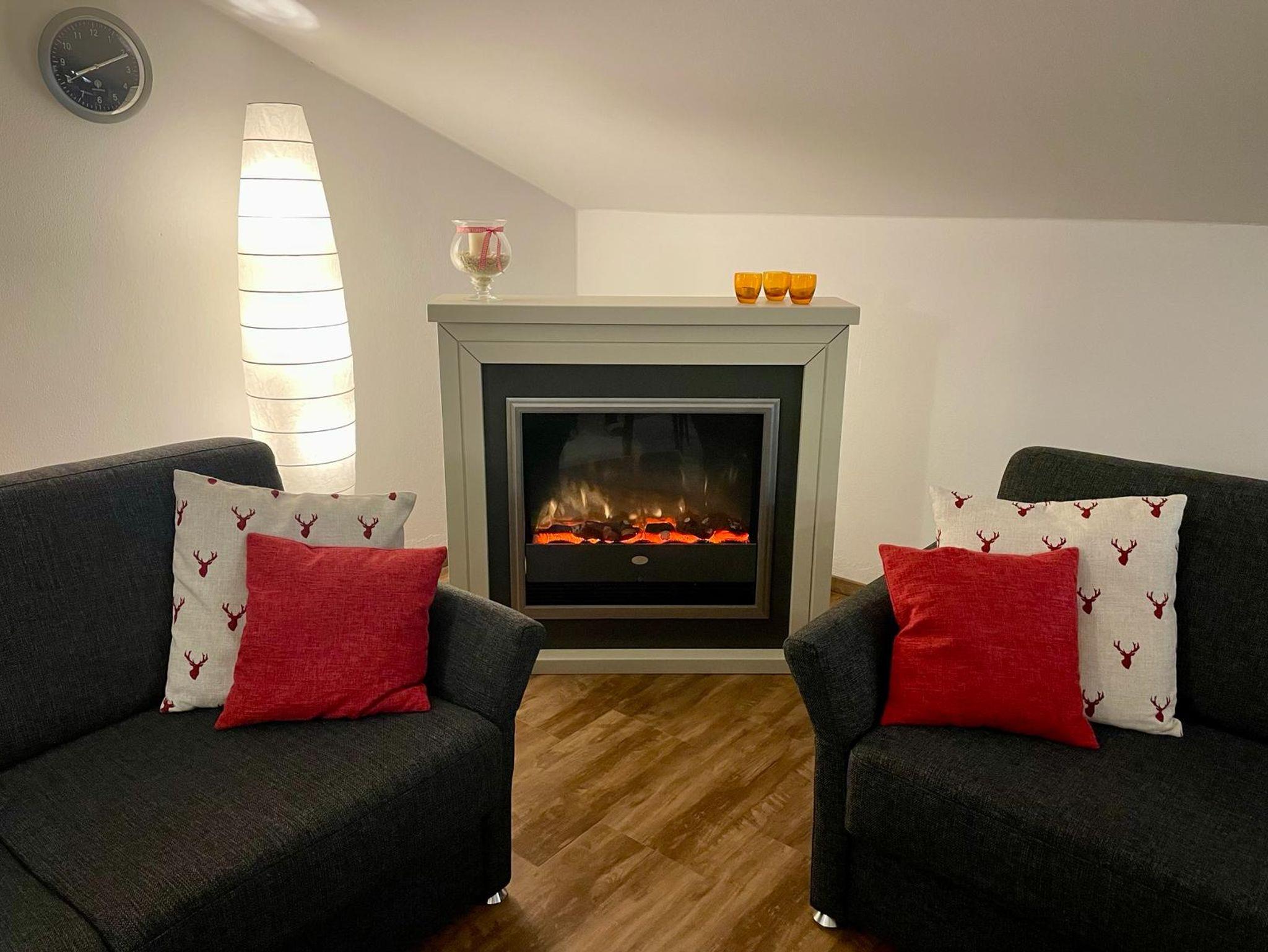 Ein gepflegter Gemeinschaftsgarten mit Holzliegen, Freisitz, Grillplatz und offener Feuerstelle lädt zum Entspannen und geselligen Beisammensein ein. Im Kellergeschoss stehen den Gästen eine Sauna mit Duschen/Ruheraum zur kostenlosen Nutzung, zwei neue (2025) Fitnessgeräte (Laufband und Sitzergometer), eine Münz-Waschmaschine und ein Münz-Trockner zur Verfügung. Darüber hinaus gibt es einen Abstellraum, einen Trockenraum mit Skiraum sowie einen gemütlichen Aufenthaltsraum mit Tischtennisplatte, Kicker, Spielecke und Sitzgelegenheiten. WLAN und ausreichend Parkplätze sind kostenfrei nutzbar.