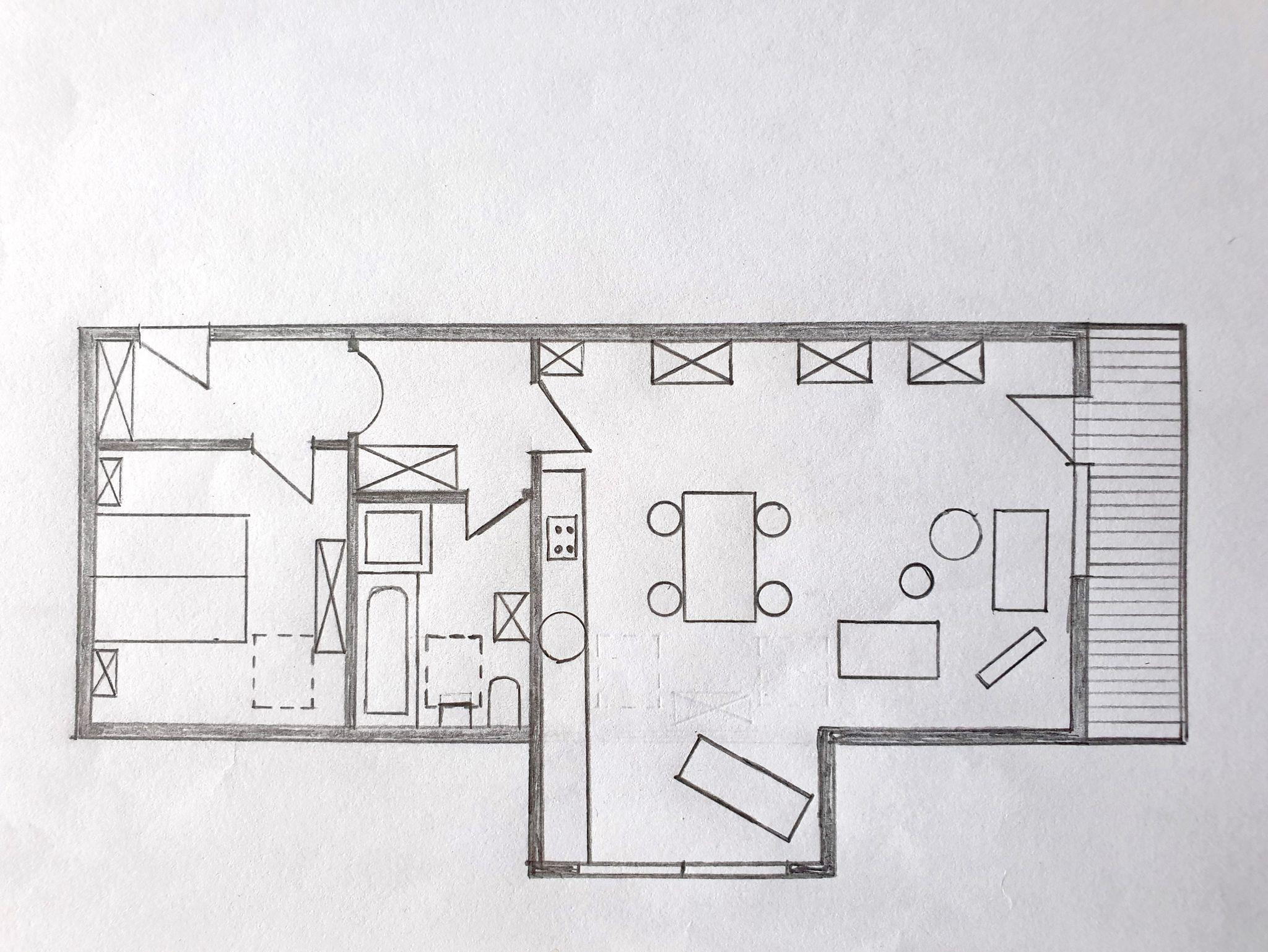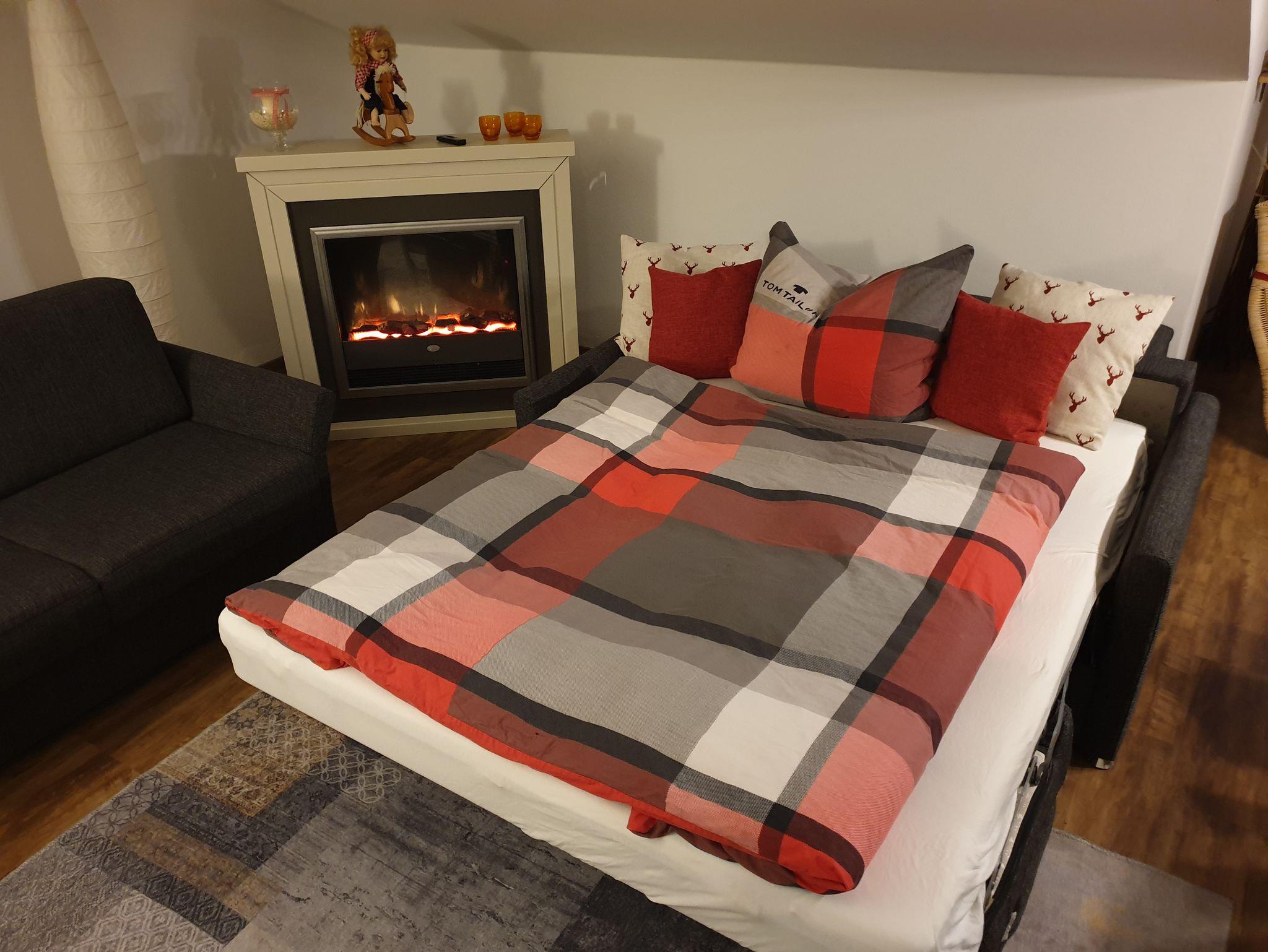 Alle Zimmer erreichen Sie über die geräumige Diele. Das Schlafzimmer ist mit einem bequemen Doppelbett 1,8 m x 2 m ausgestattet und verfügt über einen Außenrollo zur kompletten Verdunkelung, sowie einem Fliegengitter. Anfang 2025 wurde auch hier ein neuer Vinylboden verlegt. Auch steht jetzt im Schlafzimmer ein zweiter Fernseher (kein Antennenanschluss) mit Blu-ray Player (viele DVDs vorhanden) und Anschlussmöglichkeiten für einen TV-Stick zur Verfügung. Das Wohnzimmer bietet einen weiteren Schlafplatz mit einer einfach ausklappbaren Schlafcouch. Diese bietet eine Liegefläche von 1,5 x 2 m und sorgt durch einen Lattenrost und eine Matratze für erholsamen Schlaf. Auch hier sorgen Mückenschutzgitter für ungestörten Schlaf. Die Küche ist voll ausgestattet mit 4-Platten Cerankochfeld, Backofen, Spülmaschine, Mikrowelle, Kaffeemaschine, Wasserkocher, Toaster und einer Kühl- Gefrierkombination. Der große Wohnbereich bietet neben der Küche eine Essgelegenheit für 6 Personen, sowie zwei gemütliche Sofas mit Blick auf den HD-Fernseher. Im gesamten Haus steht kostenloses WLAN und Streaming fähiges Internet zur Verfügung. Im Appartement bietet ein schnurloses Telefon kostenlose Inlandsgespräche. Für Kleinkinder stehen Kinderhochstuhl und Kinderbett/Klappbett zum Aufstellen in der Wohnung bereit. Frisch überzogene Betten sowie Handtücher erwarten unsere Gäste. Bitte beachten Sie, dass Hunde und andere Haustiere sowie Rauchen im Appartement leider nicht gestattet sind.