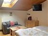Gut ausgestattetes Zimmer mit Dusche/WC und Dachfenster, Doppelbett, Kleiderschrank, Tisch und Stühle, Sofa, Flat-Kabel-TV, kostenloses WLAN, Kaffeemaschine, Toaster, Wasserkocher, Geschirr und Spülutensilien. Im Bad finden Sie Dusche, WC, Waschbecken, Spiegel, Ablagefläche und Föhn. Flüssigseife und Handtücher werden gestellt.