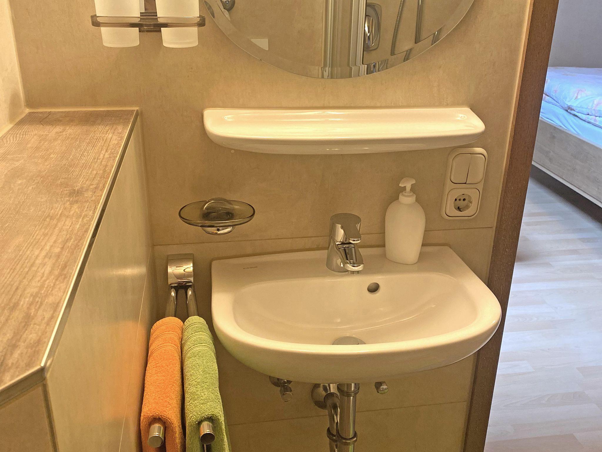 Im Flur vor den Zimmern stehen Ihnen zur gemeinsamen Nutzung mit einem weiteren Doppelzimmer ein Kühlschrank und eine Mikrowelle zur Verfügung.
