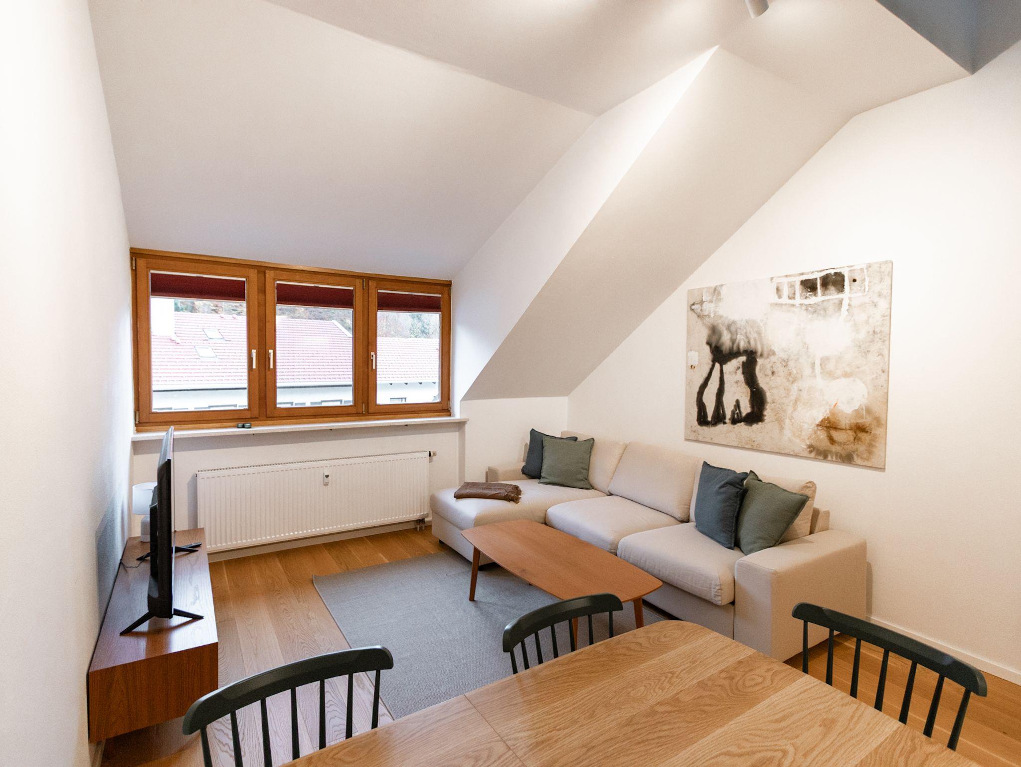Willkommen in der stilvoll eingerichteten Ferienwohnung Stubn Laubenstein – großzügiger Komfort mit Bergblick. Die Ferienwohnung bietet Ihnen auf 90?m² ein stilvolles Zuhause auf Zeit – perfekt für Familien oder kleine Gruppen, die Ruhe, Natur und hochwertige Ausstattung schätzen. Die Wohnung befindet sich im 2. Obergeschoss und überzeugt mit drei gemütlichen Schlafzimmern: zwei mit Doppelbetten (180?×?200?cm) und eines mit einem Doppelbett (160?×?200?cm). Im Wohnzimmer lädt eine komfortable Schlafcouch (140?×?200?cm) zum Ausruhen oder als zusätzliche Schlafmöglichkeit ein. Die moderne Küche ist voll ausgestattet mit Herd, Backofen, Geschirrspüler, Filter- und Kapselkaffeemaschine, Kühlschrank mit Tiefkühlfach, Toaster und Wasserkocher – ideal für gemeinsame Kochabende.