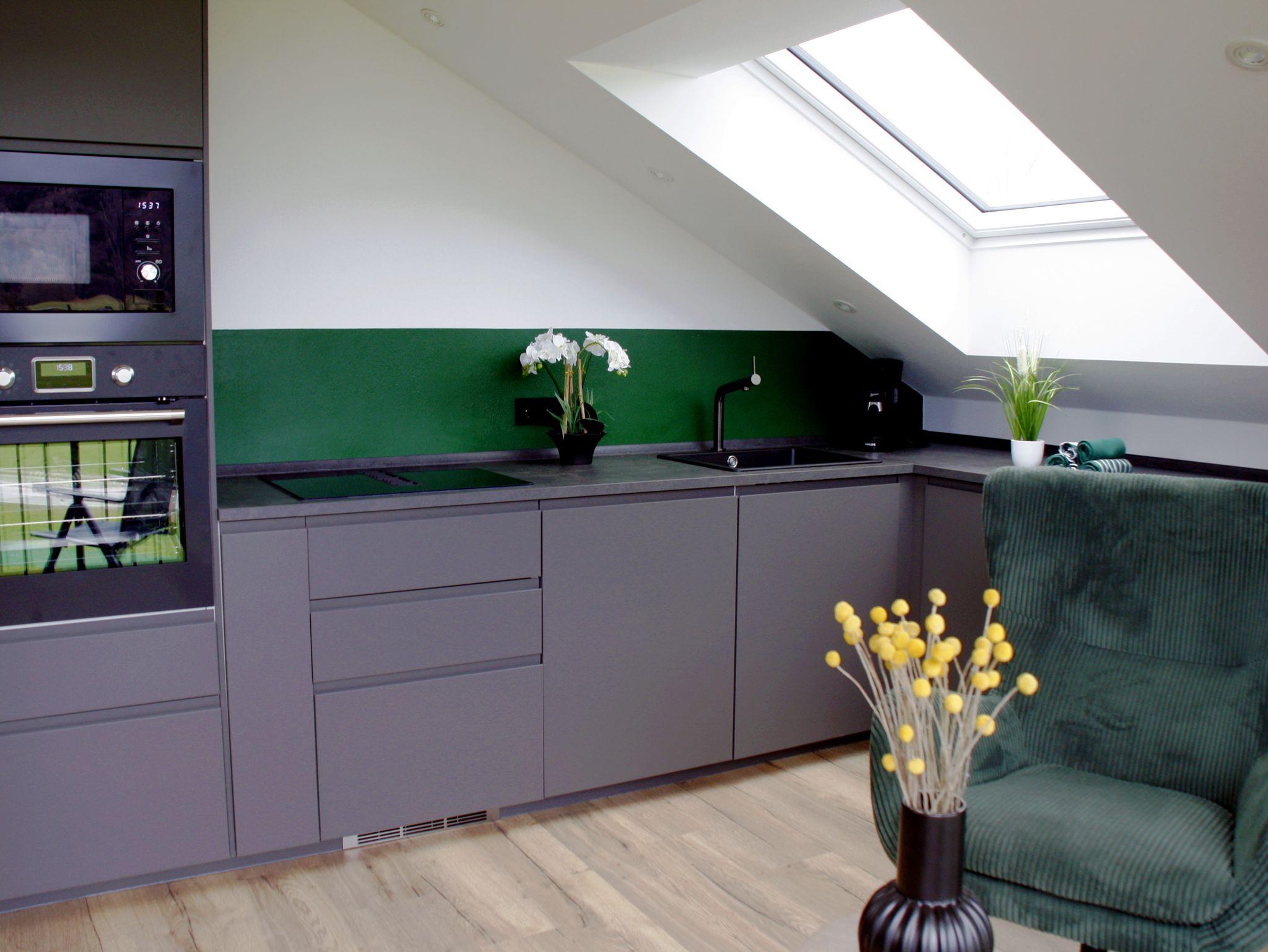 In der voll ausgestatteten Küche finden Sie alles, was Sie für die Zubereitung köstlicher Mahlzeiten benötigen, einschließlich Kaffeemaschine, Toaster, Wasserkocher, Kühlschrank/Tiefkühlfach, Herd/Backofen, Spülmaschine, Backofen, Kühlschrank und Mikrowelle.