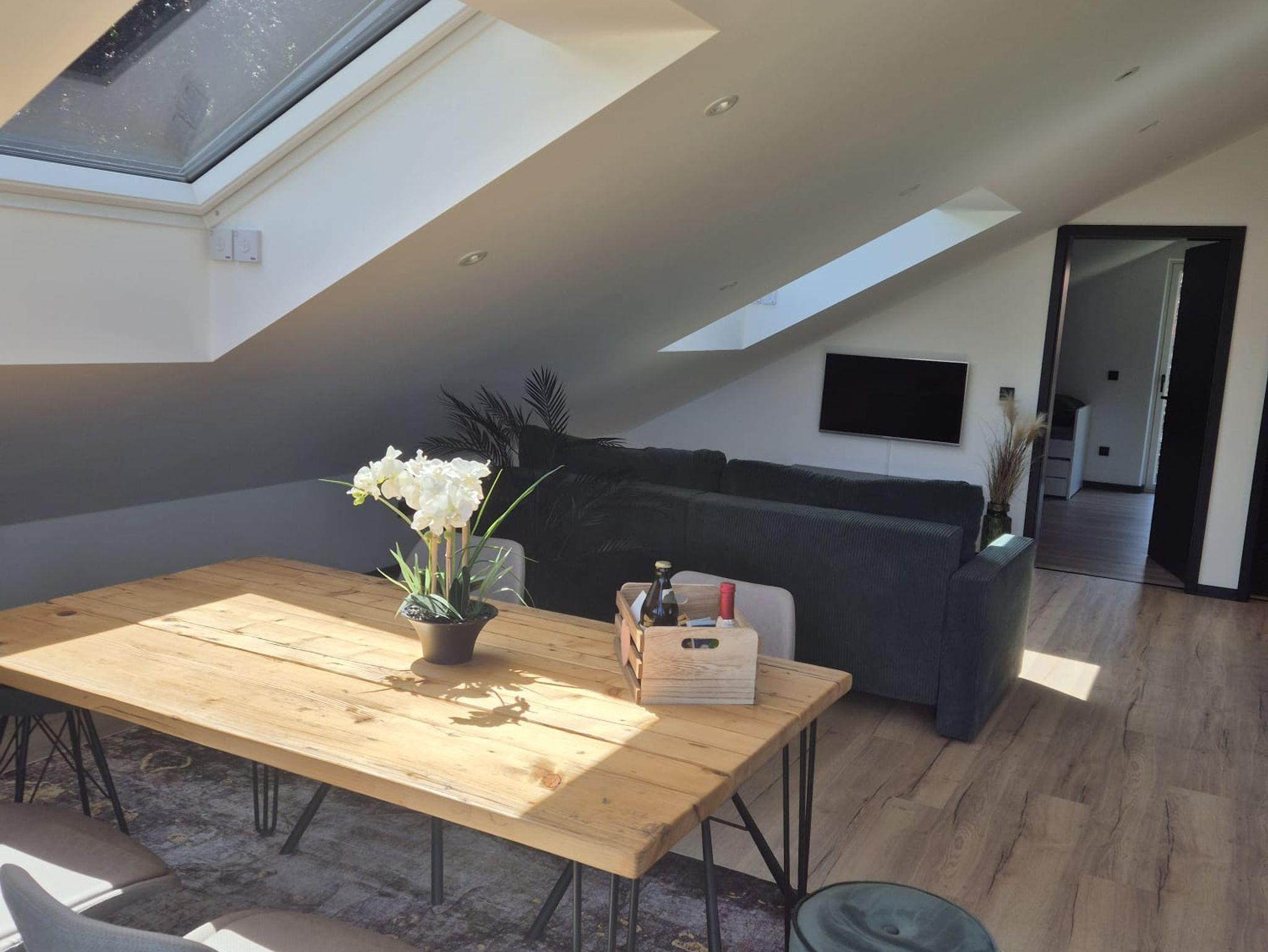 Unser Wohnzimmer ist der perfekte Ort, um sich zu entspannen und bietet eine ausziehbare Couch und einen Smart-TV um Filme anzuschauen und Zeit mit der Familie zu genießen, kostenloses W-LAN steht zur Verfügung. Dank unserer offenen Raumaufteilung sind Sie immer in guter Gesellschaft.