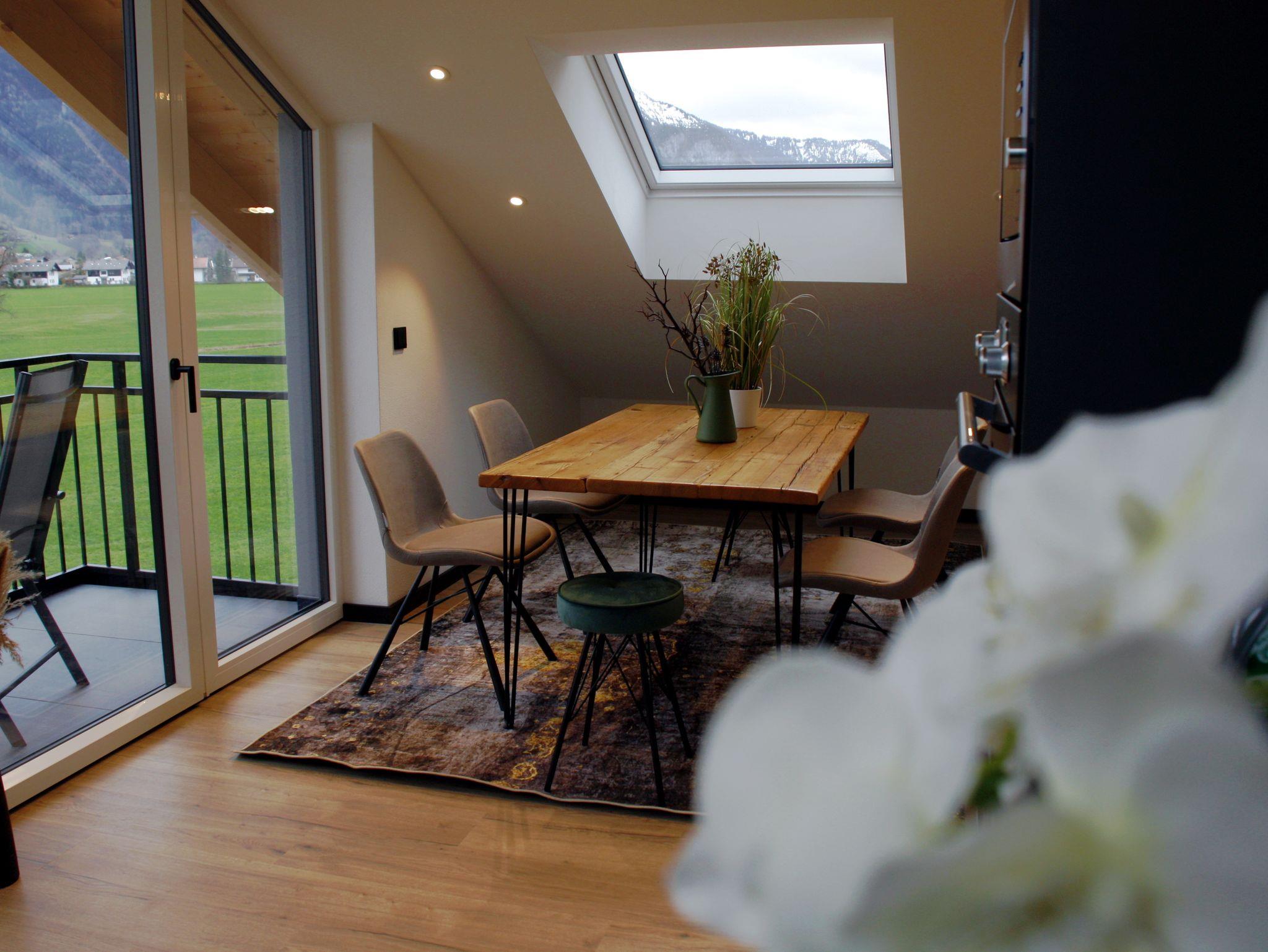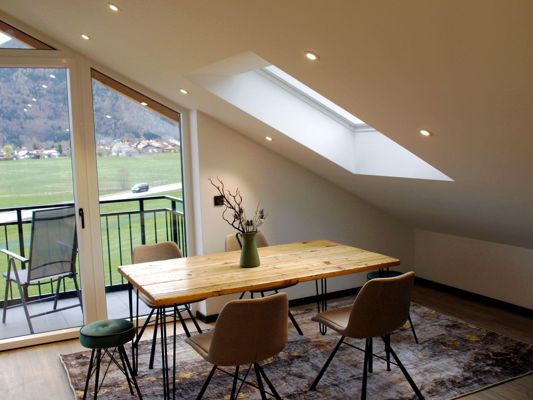 Unsere geräumige, moderne Nichtraucher-Mansarden-Ferienwohnung im 2. Obergeschoss mit 65 qm für 2 bis 6 Personen besticht mit einer atemberaubenden Aussicht vom Balkon auf Aschau im Chiemgau und einem Panoramablick auf die Kampenwand! Der offene, mit Parkettböden ausgestattete Wohnraum, lädt zum Entspannen ein und garantiert Ihnen eine behagliche Wohnatmosphäre.