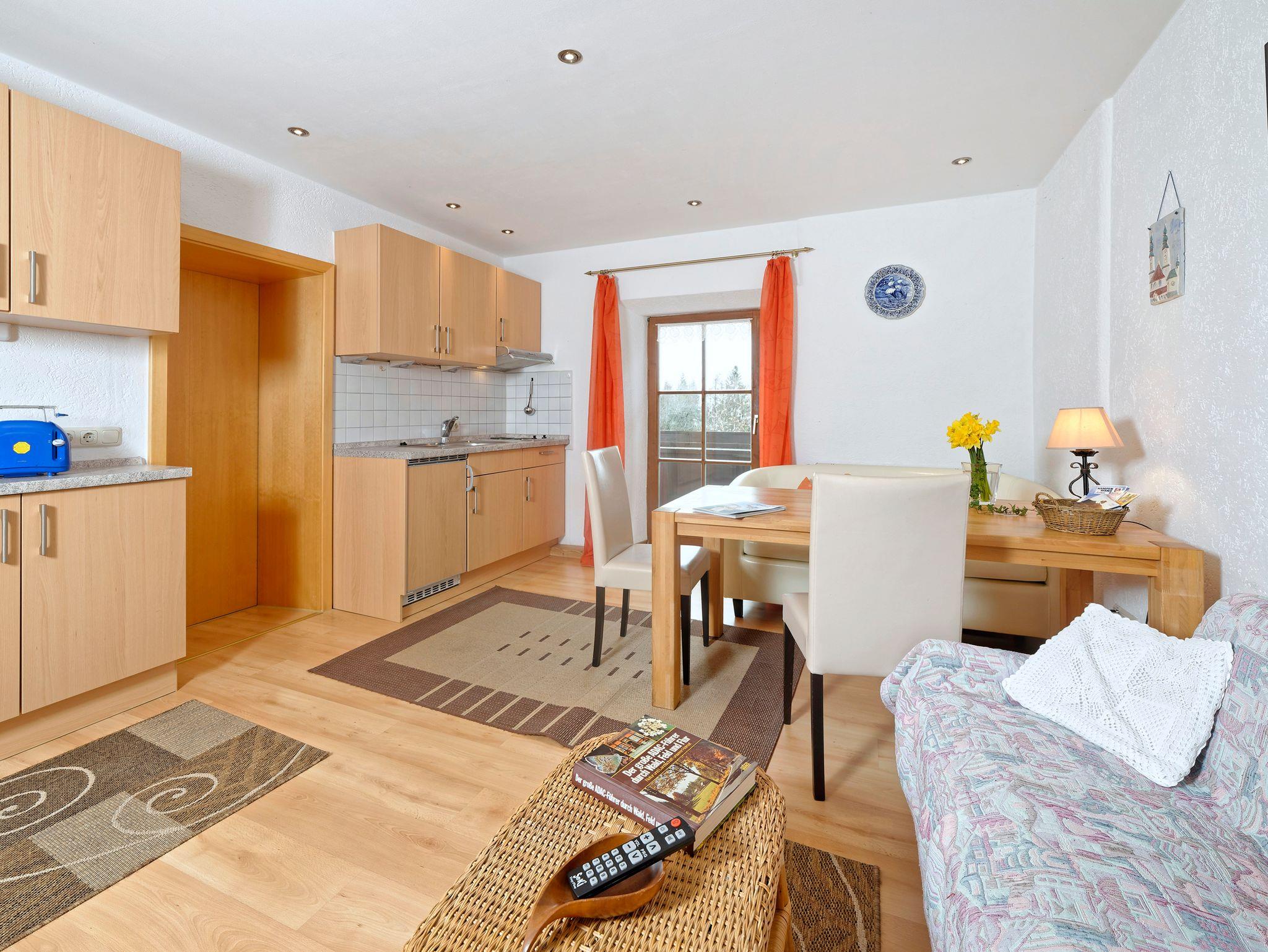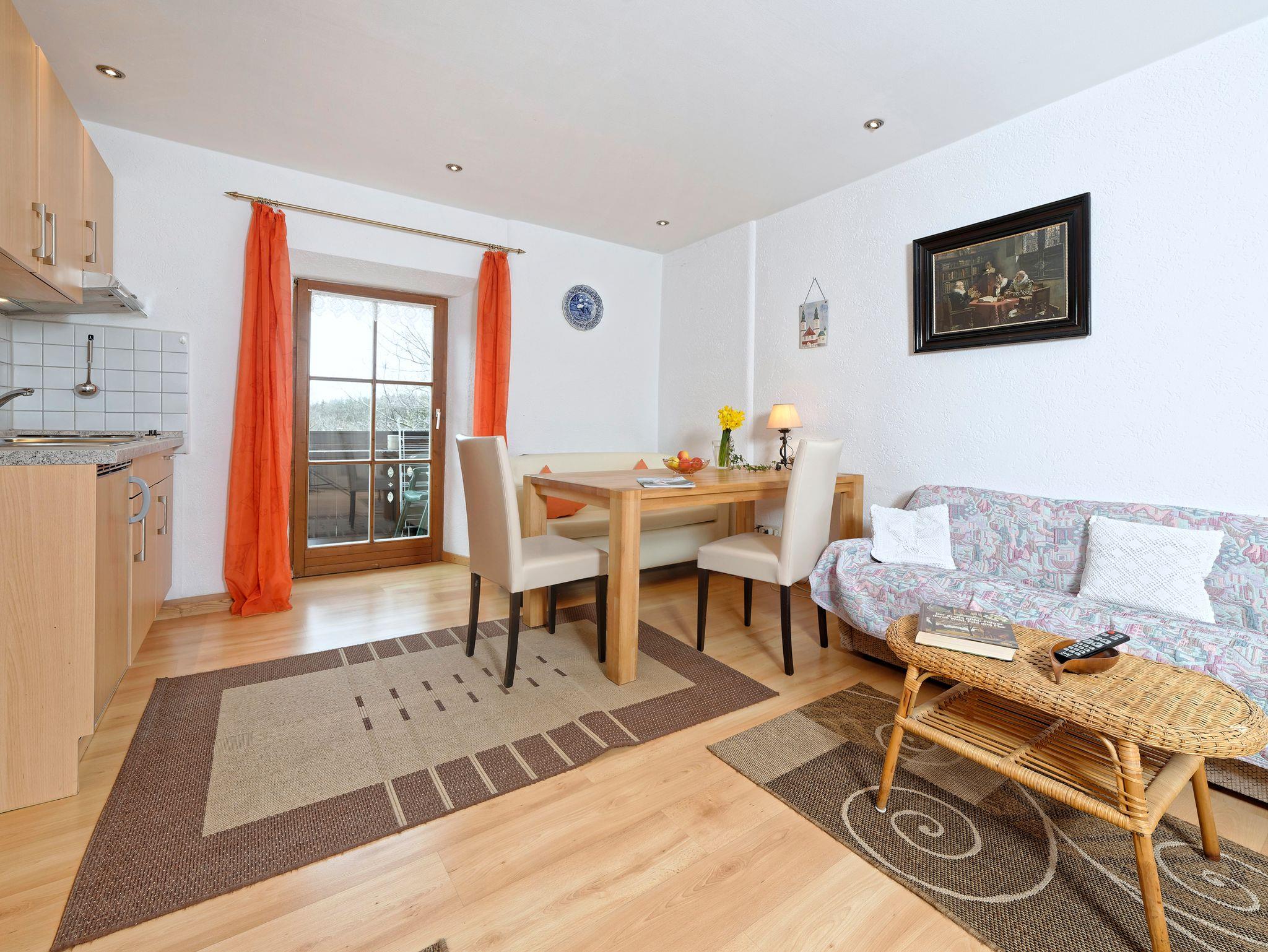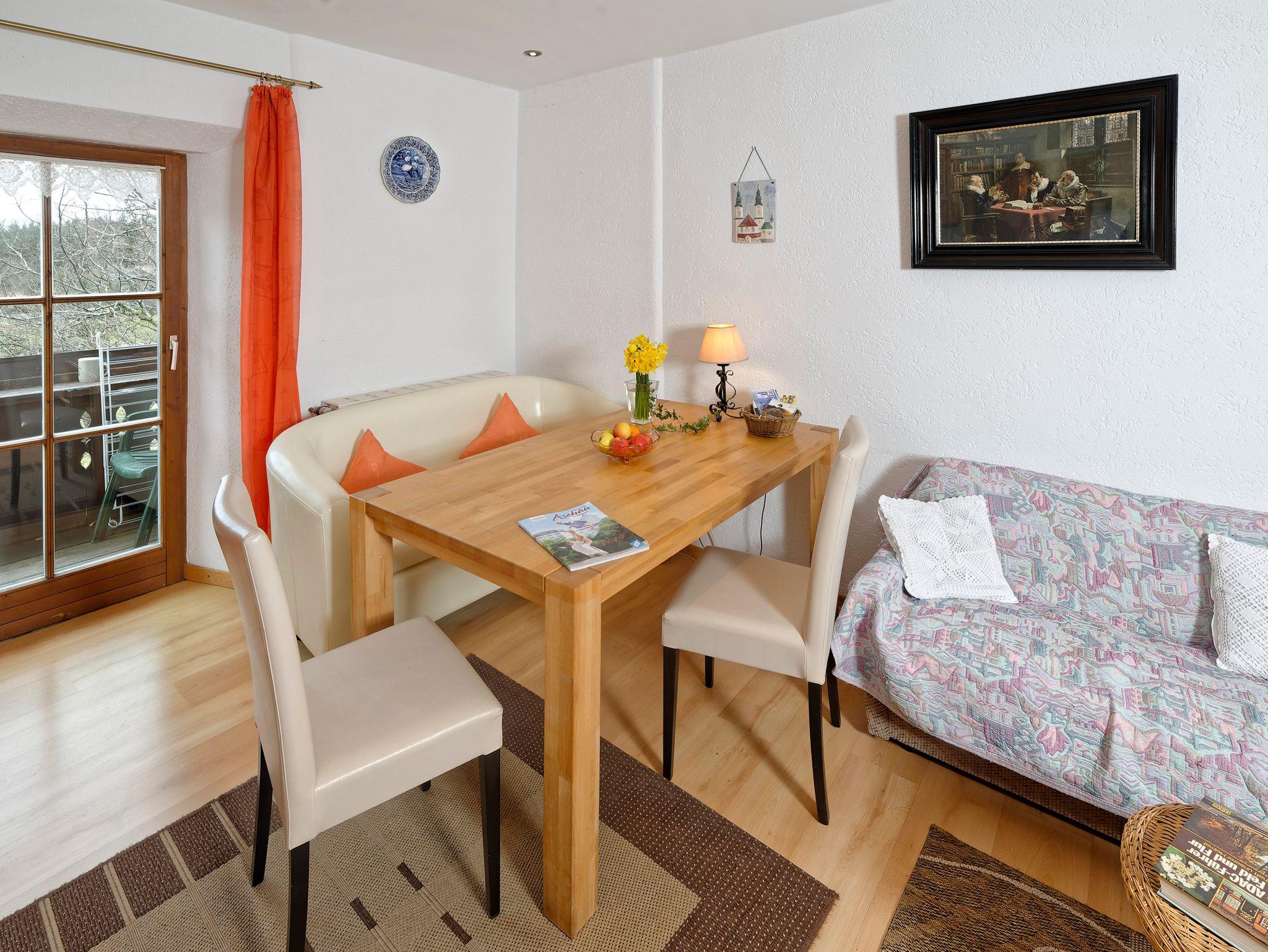 Großzügige Nichtraucher-Ferienwohnung im Haupthaus Koyerbauer für 2 Personen, 40 qm im 1. Stock mit Balkon. Ein großes separates Schlafzimmer mit Doppelbett. Wohnküche mit Küchenzeile, Geschirrspüler, Herd mit Cerankochfeld, Essplatz, Couch und Flachbild-Digital-SAT-TV, kostenloses WLAN, Radio. Badezimmer mit Dusche/WC und Fön. Bettwäsche und Handtücher vorhanden. Gegen Gebühr Waschmaschine und Wäschetrockner im Haus. Es dürfen keine Hunde oder Haustiere mitgebracht werden.