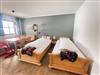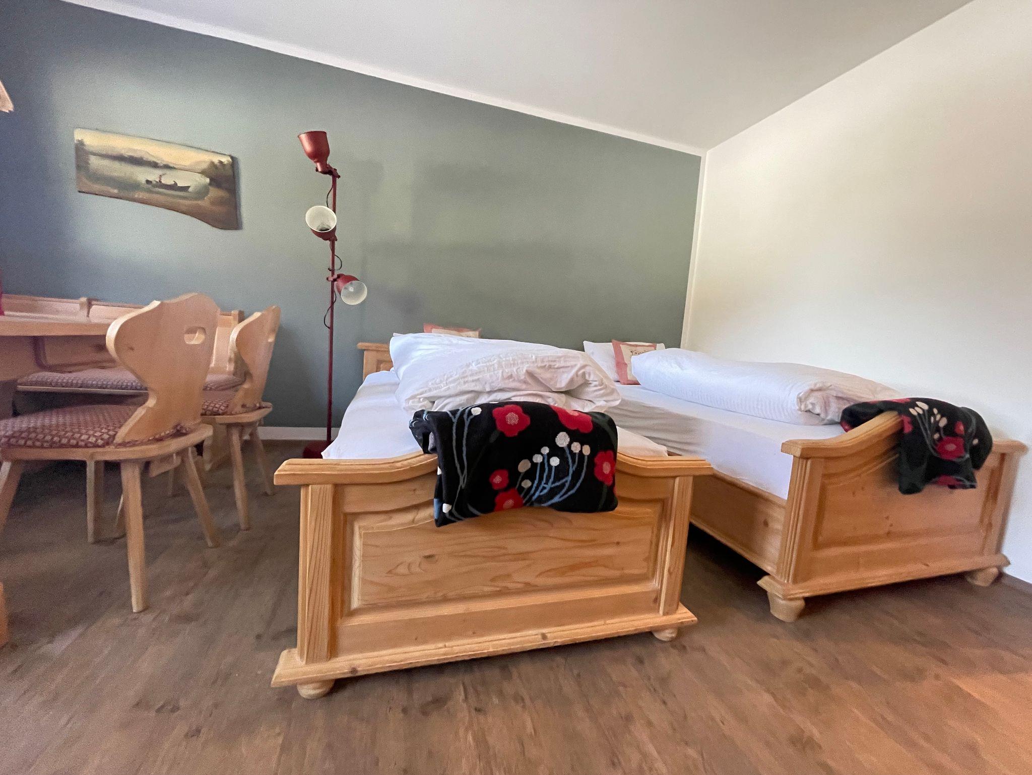 Der großzügige Wohn- und Schlafraum ist mit zwei Einzelbetten (90x200cm, 100x200cm), einem ausziehbaren Schlafsessel (80x195cm, empfohlen für leichte Personen), einem Kleiderschrank und einem Esstisch mit Eckbank (bis zu 6 Personen) ausgestattet. Badezimmer mit Dusch-/Badewanne, WC, Fön. Bettwäsche und Handtücher vorhanden. Kostenloses WLAN ist im gesamten Haus verfügbar. Keine Haustiere erlaubt.