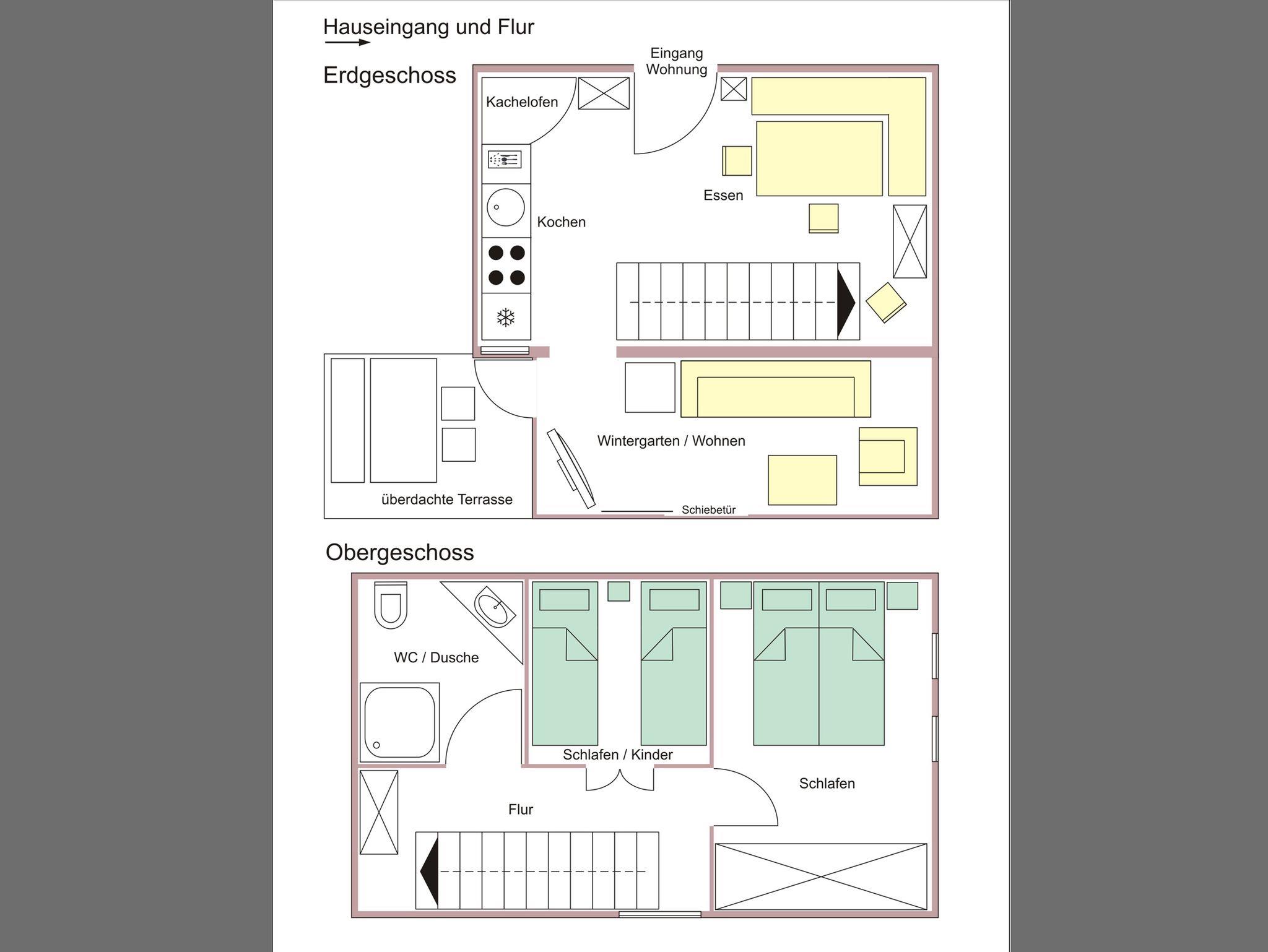 Unsere liebevoll eingerichtete Ferienwohnung für 4 Personen (max. 2 Erwachsene & 2 Kinder ab 6 Jahren), ausgestattet mit allem Komfort, lässt keine Wünsche offen. Der Kachelofen sorgt für gemütliche Wärme und der Wintergarten mit altem Eichenparkett, Sofa, kostenlosem WLAN und Sat-TV (Flachbildschirm) bietet einen freien Blick auf das Priental. Bei jedem Wetter können Sie Ihr Frühstück bereits auf Ihrer eigenen, vollständig überdachten Terrasse genießen. Im Erdgeschoss befindet sich der Wintergarten sowie die voll ausgestattete Küche inkl. Geschirrspüler und stilvoller Essbereich mit Bank und Stühlen. Im Obergeschoss, das komplett zum offenen Dachgeschoss umgebaut und mit Parkettboden ausgelegt ist, befindet sich das Schlafzimmer mit Doppelbett und Safe im Kleiderschrank sowie ein Kinderzimmer mit zwei Einzelbetten. Dieses Zimmer kann auch als „Schnarchzimmer“ genutzt werden. Etwas ganz Besonderes sind die ZIRBENHOLZ-BETTEN, die wir in unserer Tischlerei selbst hergestellt und mit einem darauf abgestimmten Schlafsystem ausgestattet haben. Sie werden es genießen, darin zu schlafen! Im Badezimmer, das sich ebenfalls im ersten Stock befindet, gibt es einen Föhn und einen Kosmetikspiegel. Wir haben unsere Ferienwohnung „SCHOSSBACH” nach dem Bach benannt, in den der nahegelegene Wasserfall mündet.