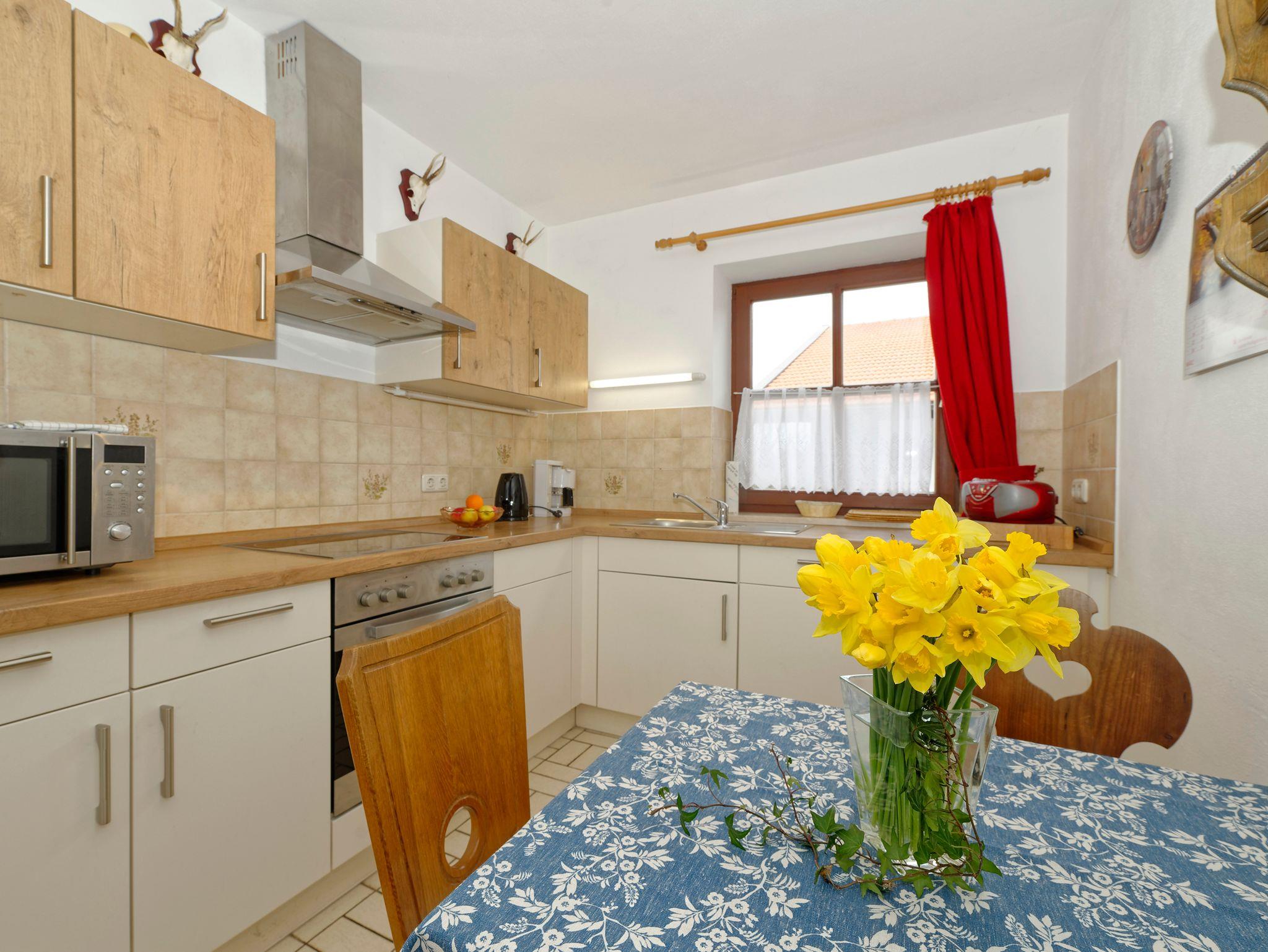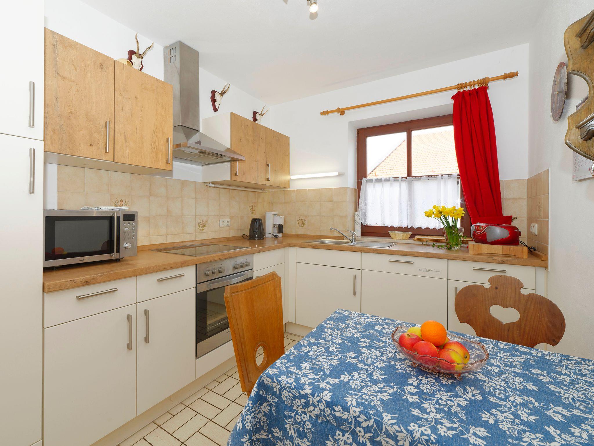 Freuen Sie sich auf eine erholsame Auszeit in dieser großzügigen und gemütlichen Nichtraucher-Ferienwohnung im Nebenhaus in der 1. Etage. Auf 65 m² bietet sie Platz für bis zu 4 Personen und besticht durch einen einladenden Ost-Balkon, auf dem Sie den Blick ins Grüne genießen können. Das separate Schlafzimmer mit komfortablem Doppelbett (190 x 200 cm) garantiert erholsame Nächte, während im großen Wohnzimmer eine gemütliche Couchgarnitur sowie zwei Boxbetten (á 90 x 200 cm) für die 3. und 4. Person bereitstehen. Mit Flachbild-Digital-SAT-TV, Radio, kostenlosem WLAN und einem einladenden Essplatz erleben Sie hier ein echtes Urlaubs-Wohngefühl. Die separate Küche ist vollständig ausgestattet und verfügt über einen Geschirrspüler sowie eine Essgruppe – ideal für gemeinsame Mahlzeiten und kulinarische Experimente. Das moderne Badezimmer mit Dusche, WC und Fön rundet den Komfort ab. Bettwäsche und Handtücher liegen für Sie selbstverständlich bereit. Zudem stehen im Haus eine Waschmaschine und ein Wäschetrockner gegen Gebühr zur Verfügung. Bitte beachten Sie, dass Hunde und andere Haustiere in dieser Wohnung leider nicht gestattet sind – perfekt für Gäste, die eine allergikerfreundliche Umgebung suchen. Diese charmante Ferienwohnung mit Blick ins Grüne bietet alles, was Sie für einen unvergesslichen Urlaub brauchen. Tauchen Sie ein in die Ruhe und Schönheit der Natur und lassen Sie sich einfach treiben.
