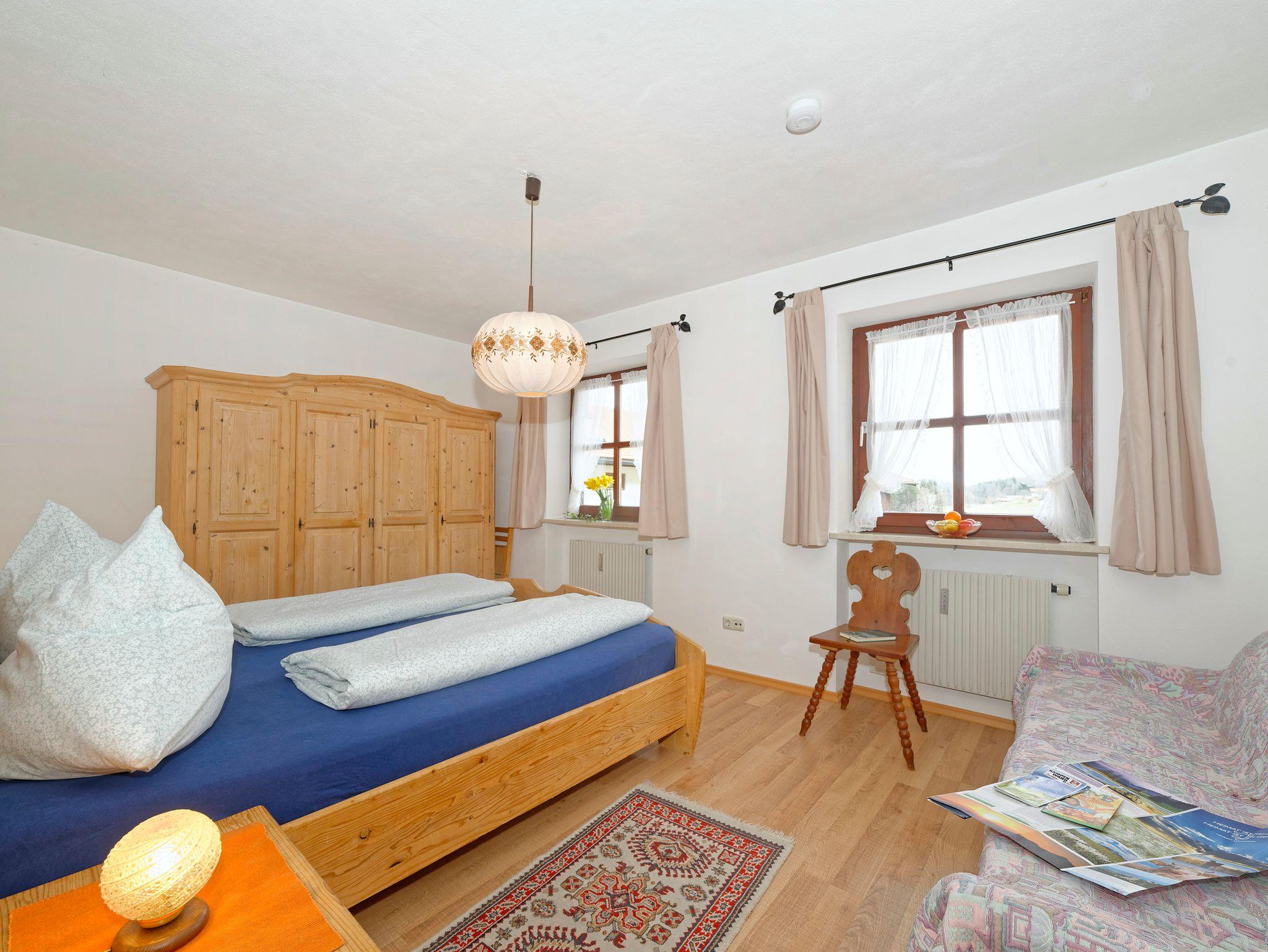 Ehemaliger Bauernhof in idyllischer Alleinlage am Ortsrand von Aschau . in Richtung Bernau am Chiemsee. Sehr schöner Blick in Richtung Aschau iemgau und die umliegenden Bergen auf das Zellerhorn. Ferienwohnungen im Nebenhaus, Zimmer und Ferienwohnungen im Haupthaus. 500 m zum Badeplatz mit Tennisplatz und Moorbadeplatz, jeweils mit Kiosk. 10 Minuten Fußweg zur Orthopädischen Kinderklinik und 15 Minuten in den Ort, 7,4 km zum Chiemsee und 3,3 km zur Kampenwandseilbahn.