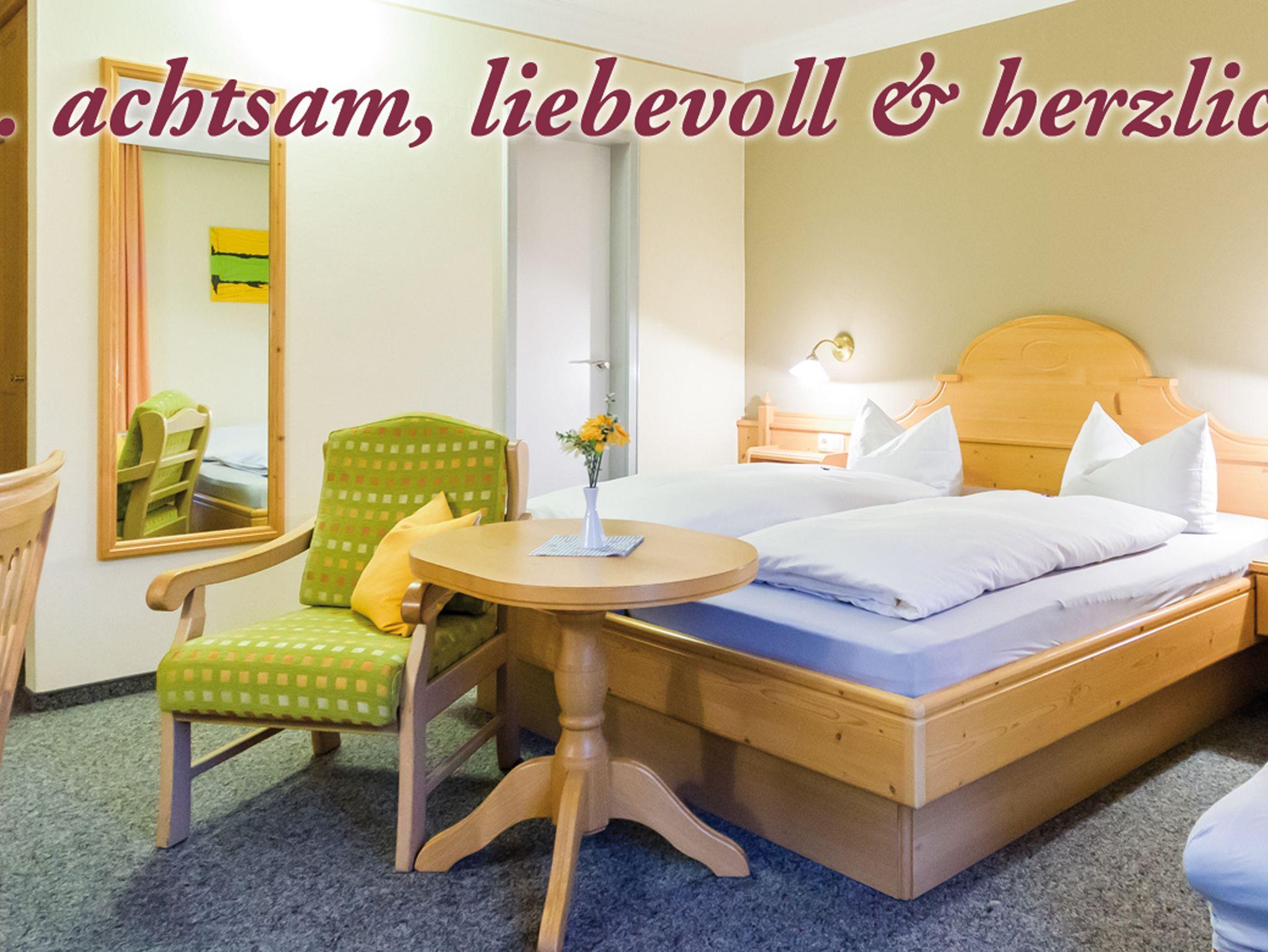 Sie wohnen in einem gemütlich-eleganten, mit hellen Fichtenholzmöbeln eingerichteten Nichtraucherzimmer. Ihr Zimmer ist mit Dusche/WC, Fön, kostenloses WLAN, zwei Flat Fernseher mit Kabel-TV, Radio und Safe ausgestattet. Es kann mit 2 - 4 Personen belegt werden: Doppelbett und im Nebenzimmer eine große ausziehbare Schlafcouch 1,80 x 2 m. Westbalkon mit Liegestuhl, Tischchen und Blick auf die Berge Zellerhorn, Laubenstein und Aschauer Kopf. Hunde und Haustiere dürfen nicht mitgebracht werden. Zimmer ohne Frühstück. Sollten Sie ein Frühstück wünschen, so können Sie das Frühstück vom Buffet, nach Voranmeldung in unserem Gasthof Kampenwand Aschau (täglich von 07:00 bis 10:00 Uhr) zum Preis von 8,00 € einnehmen. Der Gasthof befindet sich ca. 600 m vom Hotel Edeltraud entfernt.