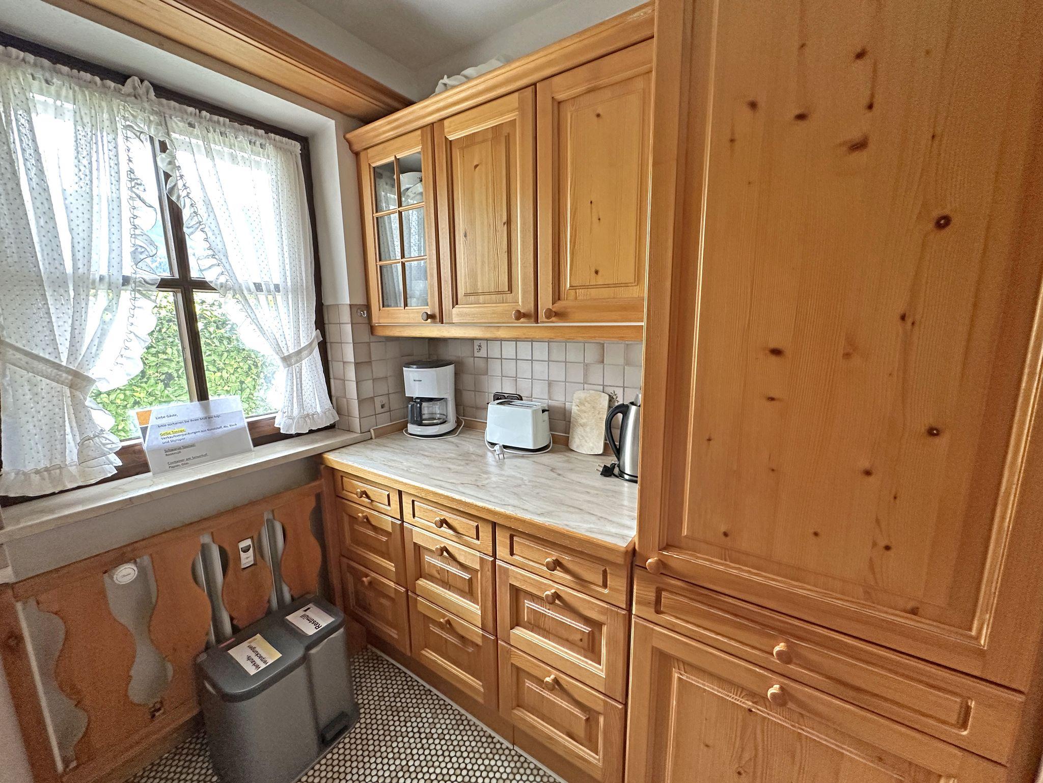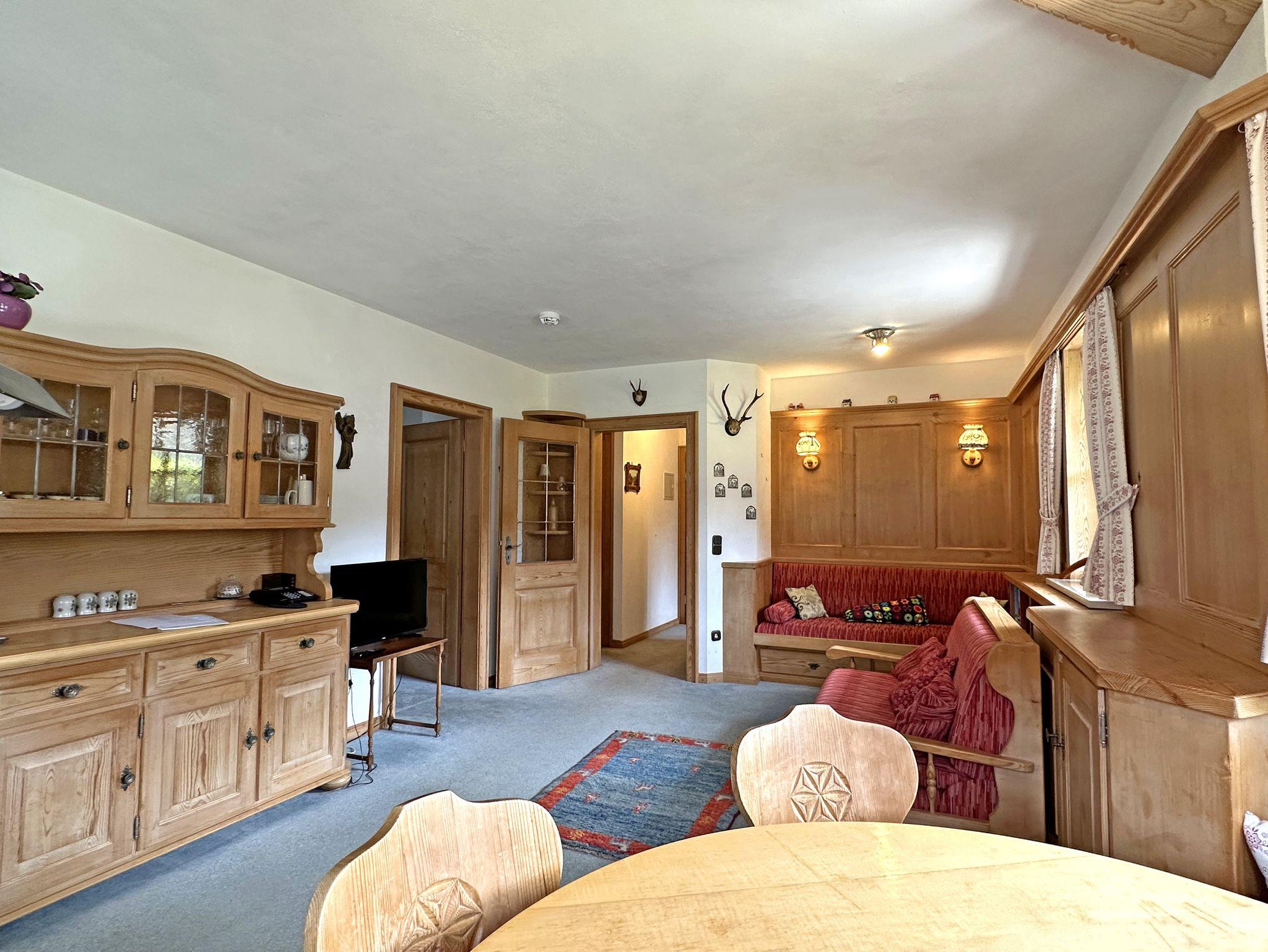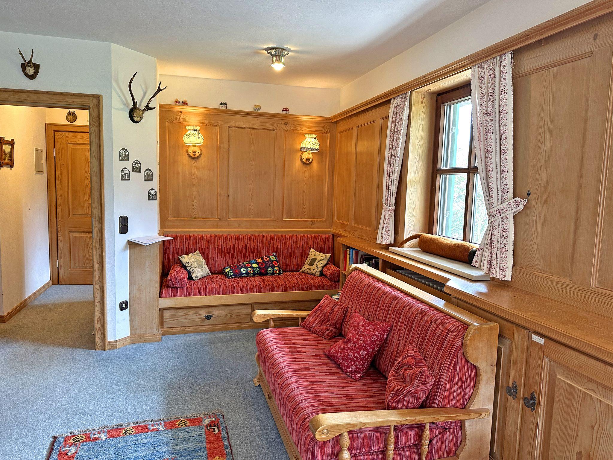 Der Wohn-/Schlafraum ist alpenländisch eingerichtet und lädt mit einer gemütlichen Essecke im Erker, einem Sofa sowie einer ausziehbaren Schlafcouch (1,40?×?2?m) zum Verweilen ein. Flat-SAT-TV, kostenloses WLAN und ein Telefon stehen Ihnen ebenfalls zur Verfügung.