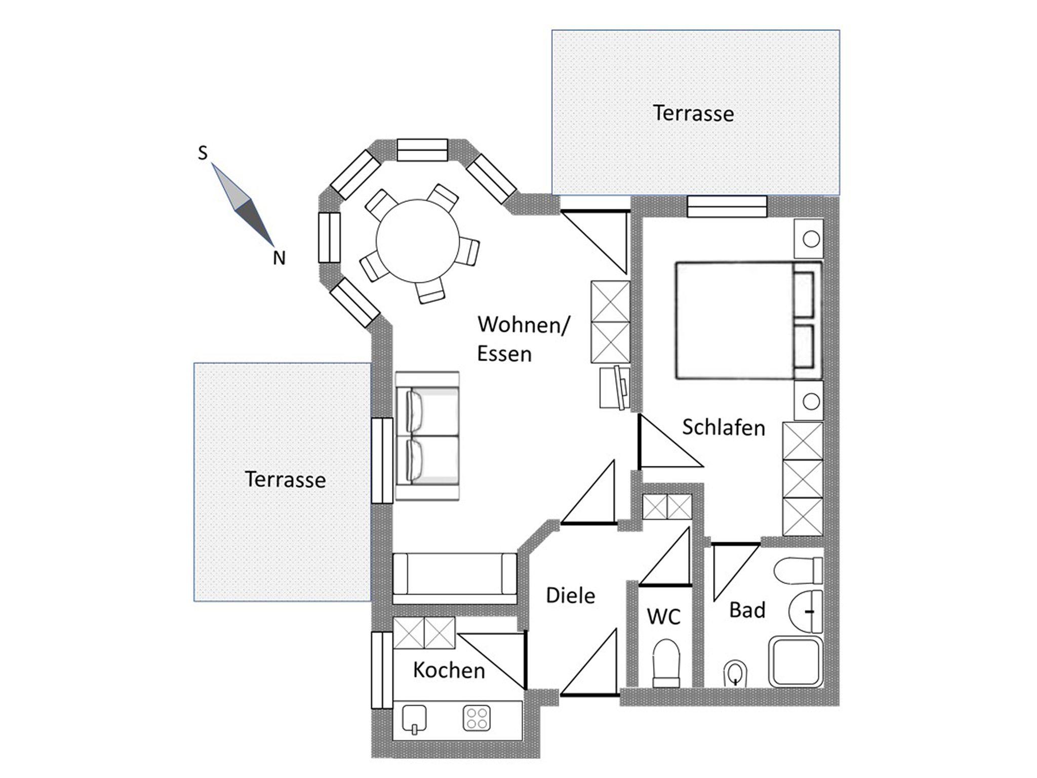 Bettwäsche und Handtücher sind selbstverständlich vorhanden. Die Wohnung ist mit Teppichboden ausgestattet und verfügt über eine Terrassentür mit Fliegengitter. Ein Hund darf gerne mitgebracht werden – bitte beachten Sie, dass nur ein Hund erlaubt ist.