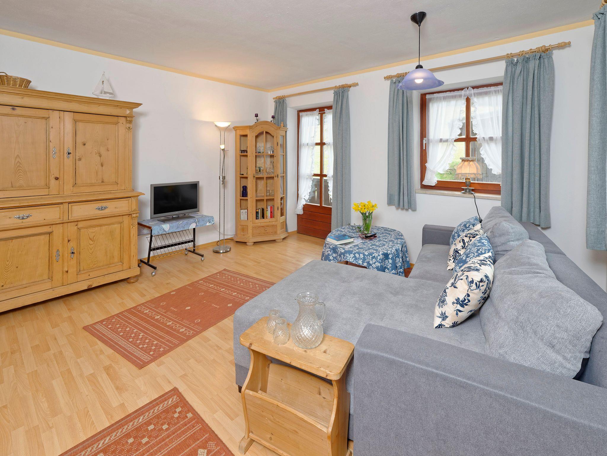 Willkommen in Ihrem gemütlichen Urlaubszuhause! Diese großzügige Nichtraucher-Ferienwohnung im Nebenhaus in der 1. Etage ist ideal für 2 bis 3 Personen und lädt Sie mit ihren 65 m² sowie einem großen sonnigen Süd-Balkon und Ost-Balkon zu unvergesslichen Stunden mit traumhaftem Bergblick und Blick Richtung Aschau im Chiemgau ein – der perfekte Ort, um die Seele baumeln zu lassen. Das gemütliche Schlafzimmer mit Doppelbett (190 x 200 cm) sorgt für erholsame Nächte. Im geräumigen Wohnzimmer erwarten Sie eine bequeme Couchgarnitur, Flachbild-Digital-SAT-TV, Radio und kostenloses WLAN – ideal für entspannte Abende; zusätzlich steht ein Boxbett (90 x 200 cm) für die 3. Person bereit. Die separate Küche ist bestens ausgestattet mit Herd/Backofen, Spülmaschine, Kaffeemaschine, Kühlschrank mit Tiefkühlfach, Mikrowelle, Toaster, Wasserkocher und einer einladenden Essgruppe – alles, was Sie für ein gemütliches Frühstück oder ein entspanntes Essen benötigen. Das moderne Badezimmer mit Dusche, WC und Fön bietet zusätzlichen Komfort. Für längere Aufenthalte stehen im Haus eine Waschmaschine und ein Wäschetrockner gegen Gebühr zur Verfügung. Bettwäsche und Handtücher sind selbstverständlich vorhanden. Bitte beachten Sie, dass aus Rücksicht auf Allergiker keine Hunde oder Haustiere in der Wohnung erlaubt sind. Genießen Sie Ihre wohlverdiente Auszeit in dieser charmanten Ferienwohnung mit herrlichem Ausblick auf die Berge – hier beginnt Ihr Urlaub entspannt und mit einem Lächeln.