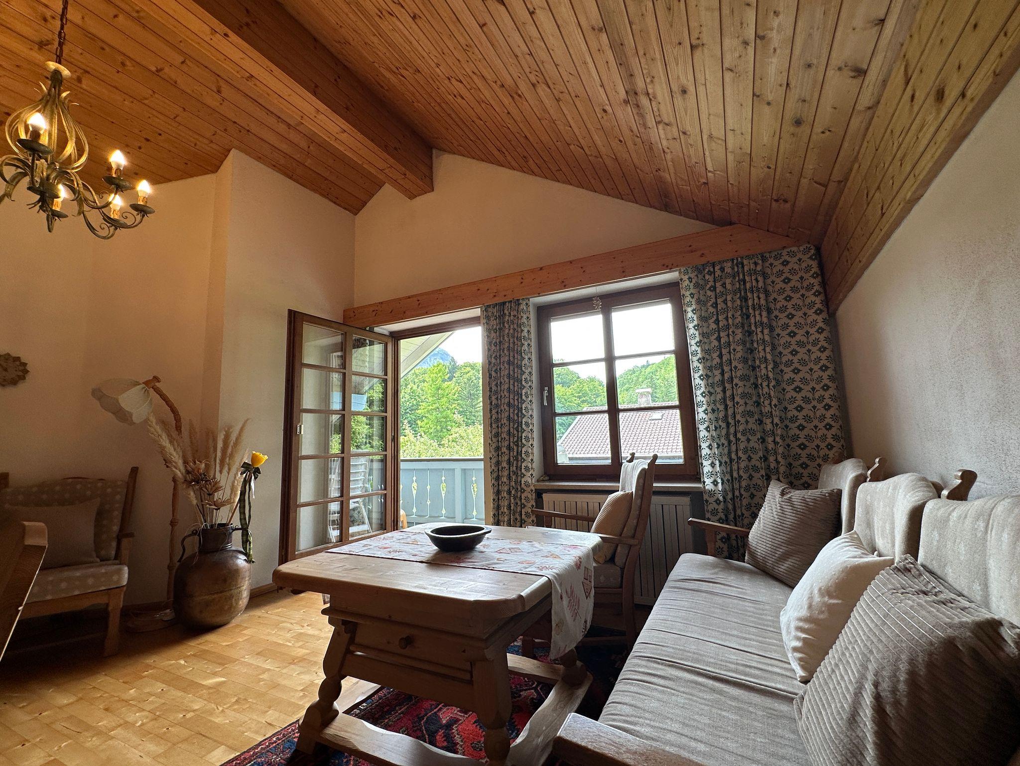 Willkommen in der Ferienwohnung Zellerhorn, einem liebevoll eingerichteten Rückzugsort für zwei Personen, der im alpenländischen Stil gehalten ist. Genießen Sie die absolute Ruhe und lassen Sie sich auf dem Süd-Balkon von einem traumhaften Blick in die grüne Natur und auf die Berge verzaubern. Die Wohnung liegt im 2. Stock mit Dachschräge und besticht durch eine warme und gemütliche Atmosphäre. Der Wohnraum lädt mit einem traditionellen Kachelofen, einer Eckbank zum Essen und geselligen Verweilen sowie einer Polstersitzbank und bequemen Stühlen zum Entspannen beim Fernsehen auf dem Flat-TV ein. Dank kostenlosem W-LAN bleiben Sie stets verbunden. Im separaten Schlafzimmer mit Doppelbett (1,80 x 2 m) und Dachschräge finden Sie eingebaute Schrankmöbel sowie eine Verdunklungsmöglichkeit durch ein Rollo, damit Sie sich rundum wohlfühlen. Das Badezimmer verfügt über eine Dusche/WC und sorgt für Komfort während Ihres Aufenthalts. Die voll ausgestattete Küche lässt keine Wünsche offen: Ein Geschirrspüler, ein Herd mit Backofen, eine Kaffeemaschine, ein Kühlschrank mit Tiefkühlfach, ein Toaster und ein Wasserkocher stehen Ihnen für die Zubereitung Ihrer Lieblingsgerichte zur Verfügung. Ob gemütliche Abende am Kachelofen, erholsame Stunden auf dem Balkon oder die Erkundung der wunderschönen Umgebung – hier erwartet Sie eine perfekte Mischung aus Entspannung und Erlebnissen. Auch vierbeinige Freunde sind willkommen – gegen einen Aufpreis dürfen Sie einen Hund mitbringen.