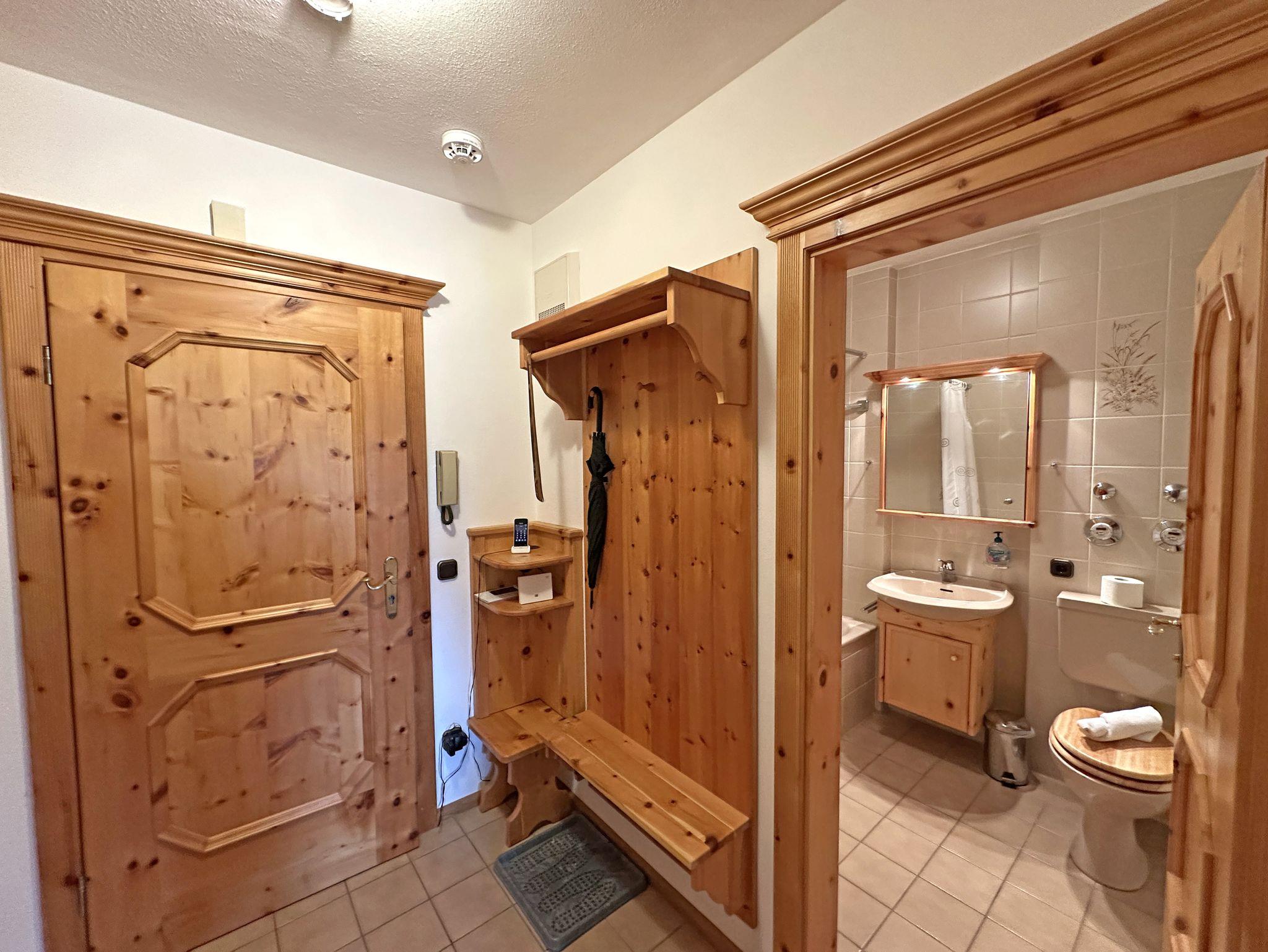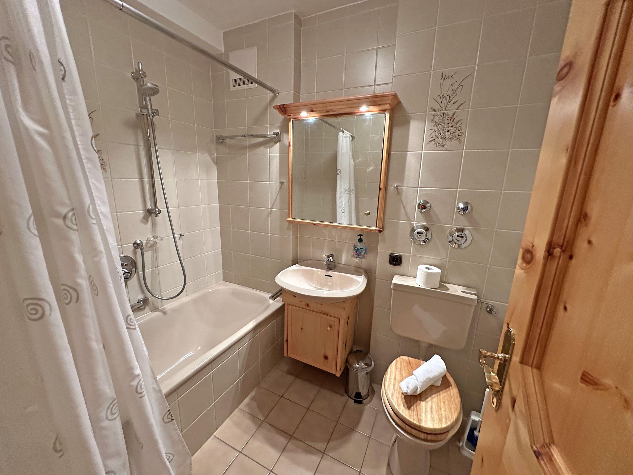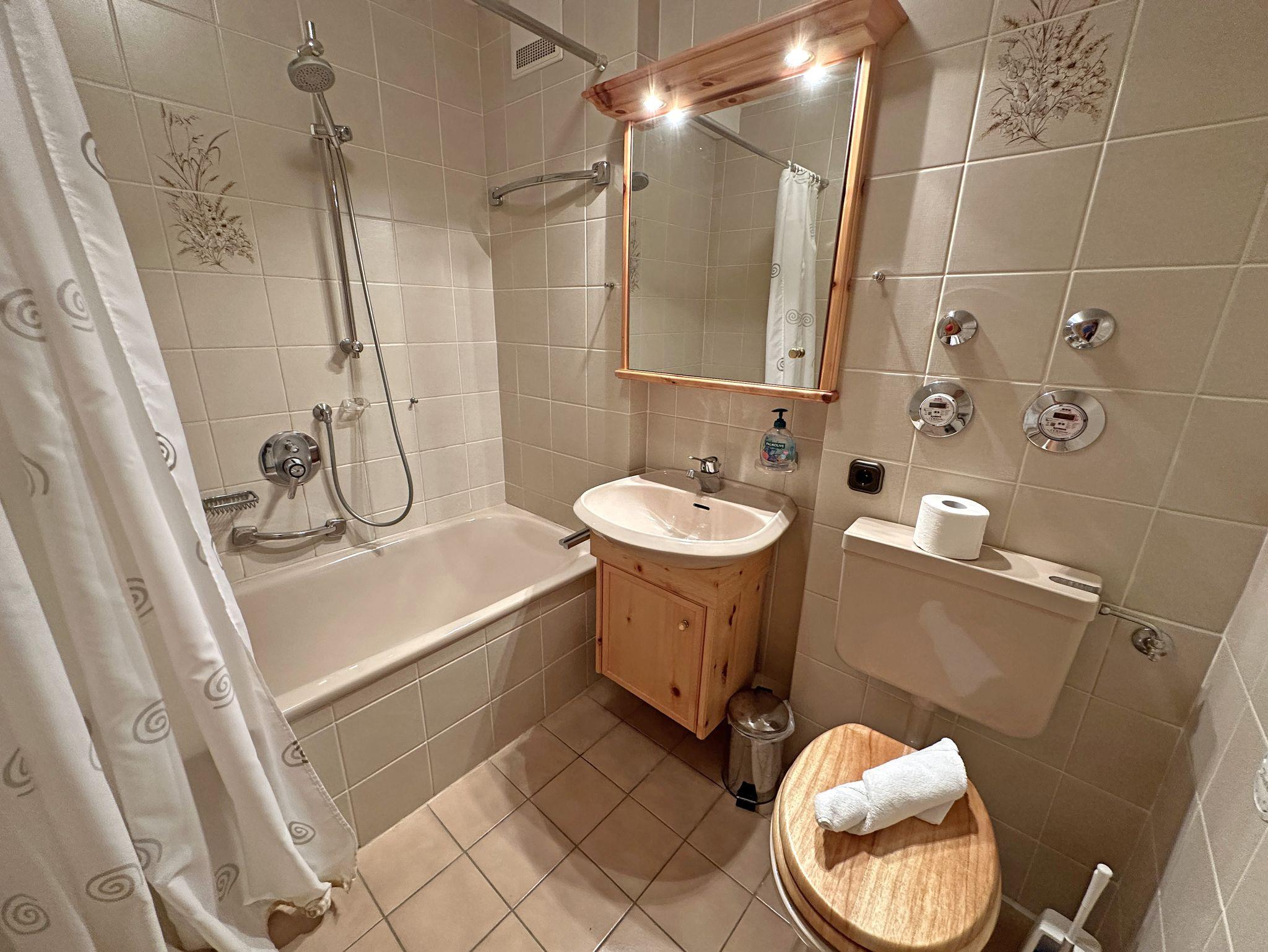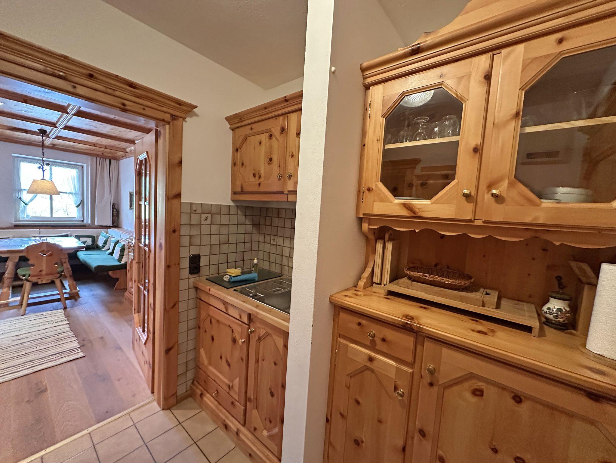 Unsere gemütliche Ein-Raum-Ferienwohnung „Zirbenstube“ mit 29 m² im alpinen Charme lädt zu erholsamen Urlaubstagen ein. Das exklusive Ambiente aus edlem Zirbenholz schafft eine warme, behagliche Atmosphäre, die durch den angenehmen Duft des Holzes und seine beruhigende Wirkung eine besonders erholsame Nachtruhe fördert. Das liebevoll eingerichtete Wohn- und Schlafzimmer überzeugt mit einem komfortablen Doppelbett sowie einer großen, gemütlichen Sitz- und Essecke mit Eckbank aus Zirbenholz, die zum Verweilen einlädt. Von der großzügigen Ost-Terrasse genießen Sie die ersten Sonnenstrahlen des Tages und lassen den Blick über die Umgebung schweifen. Für Unterhaltung und Entspannung stehen Ihnen kostenfreies WLAN, Telefon und ein Flat-SAT-TV zur Verfügung. Die kleine, aber bestens ausgestattete Küchenzeile mit Kühlschrank samt Tiefkühlfach, 2-Platten-Cerankochfeld und allen nötigen Küchenutensilien ermöglicht es Ihnen, unkompliziert köstliche Mahlzeiten zuzubereiten. Im Badezimmer erwartet Sie eine komfortable Kombination aus Dusche und Badewanne, WC sowie ein Fön und weitere Annehmlichkeiten für Ihre persönliche Auszeit. Bitte beachten Sie, dass Hunde und Haustiere in unserer Ferienwohnung nicht erlaubt sind. Für längere Aufenthalte stehen im Haus eine Münz-Waschmaschine und ein Münz-Wäschetrockner bereit. Die „Zirbenstube“ ist der ideale Rückzugsort für alle, die Naturverbundenheit, Gemütlichkeit und Entspannung miteinander verbinden möchten.