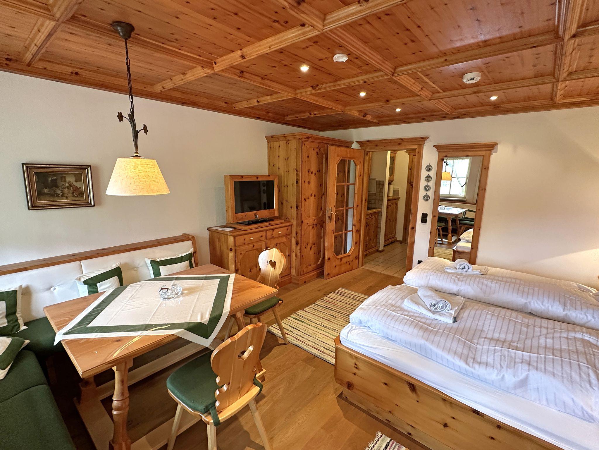 Gschwendtnerhof App8 Fuß, Ferienwohnung 29 qm Zirbenstube, Wohn-/Schlafraum kombiniert und Terrasse, App. 8