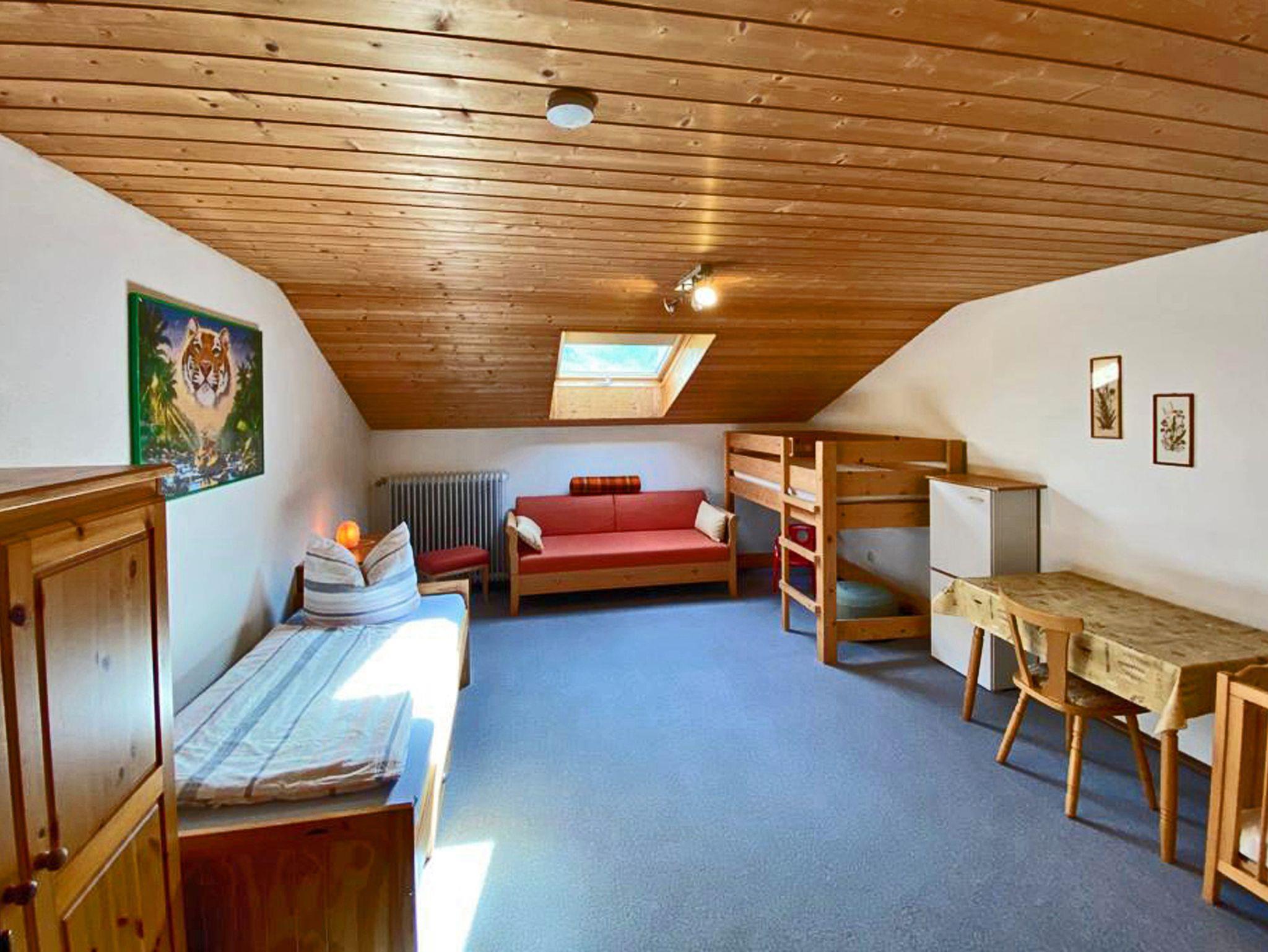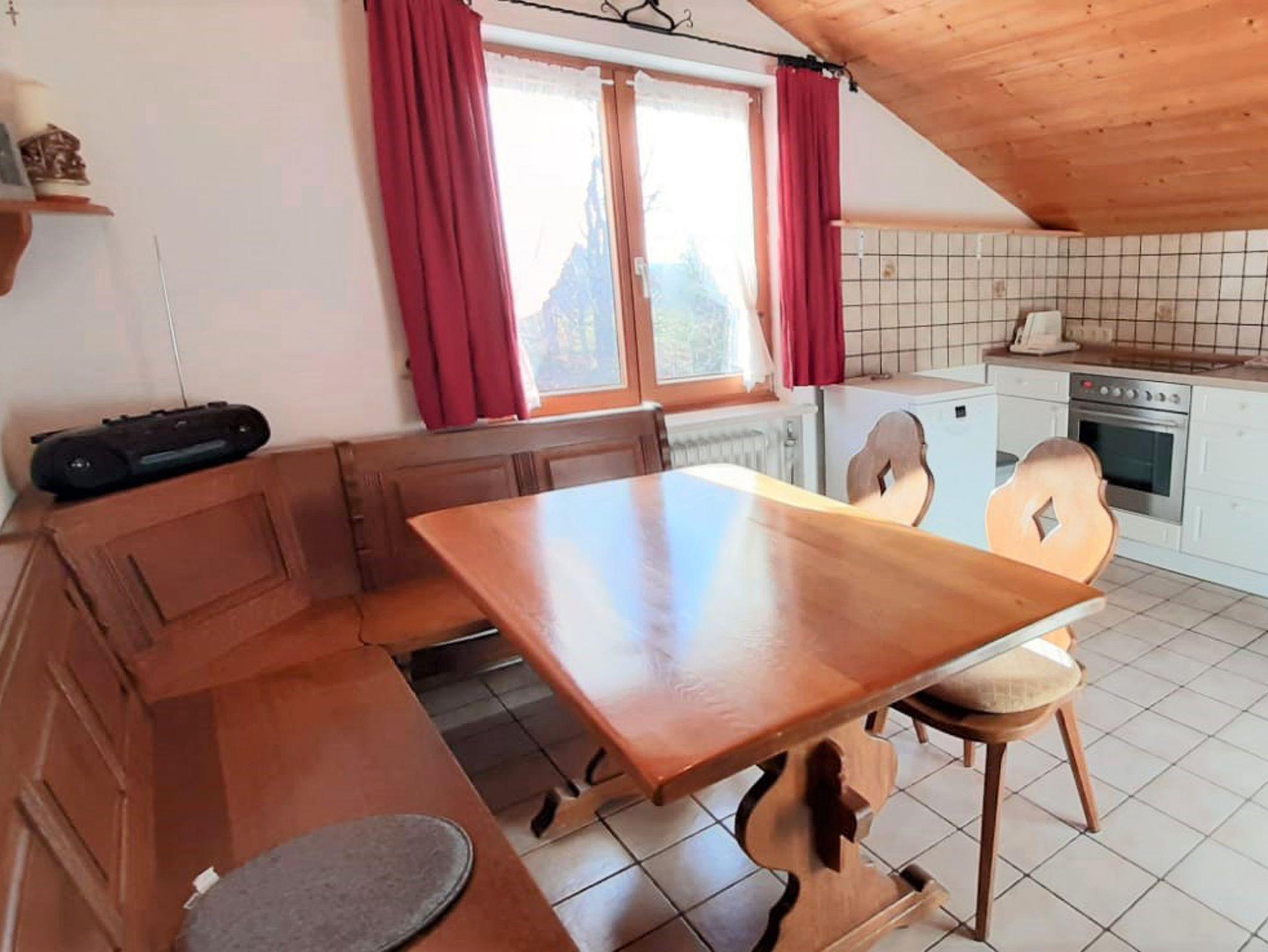 Helle Nichtraucher Ferienwohnung 105 qm mit Ost-Balkon und herrlichem Ausblick. Großes Wohnzimmer, Couchgarnitur zum gemütlichen fernsehen, kostenloses WLAN, SAT-TV und Sitzecke mit Tisch. Separate Küche (großer Kühlschrank mit 3 Gefrierfächer), Geschirrspüler, Mikrowelle, Herd, Eckbank mit großem Tisch zum Essen. Badezimmer mit Fußbodenheizung, Fön, Dusche und Badewanne. Separates WC. Ein Schlafzimmer mit Doppelbett und Balkon, ein Einzelzimmer (Parkettboden) mit Zugang zum gleichen Ost-Balkon und ein großes Kinderzimmer mit einem Einzelbett und einem Kinder-Hochbett (1,70 m lang) oder einem Babybett. Ein Gartenanteil mit Gartenmöbeln und die Liegewiese am Haus mit Grillplatz können gerne genutzt werden.