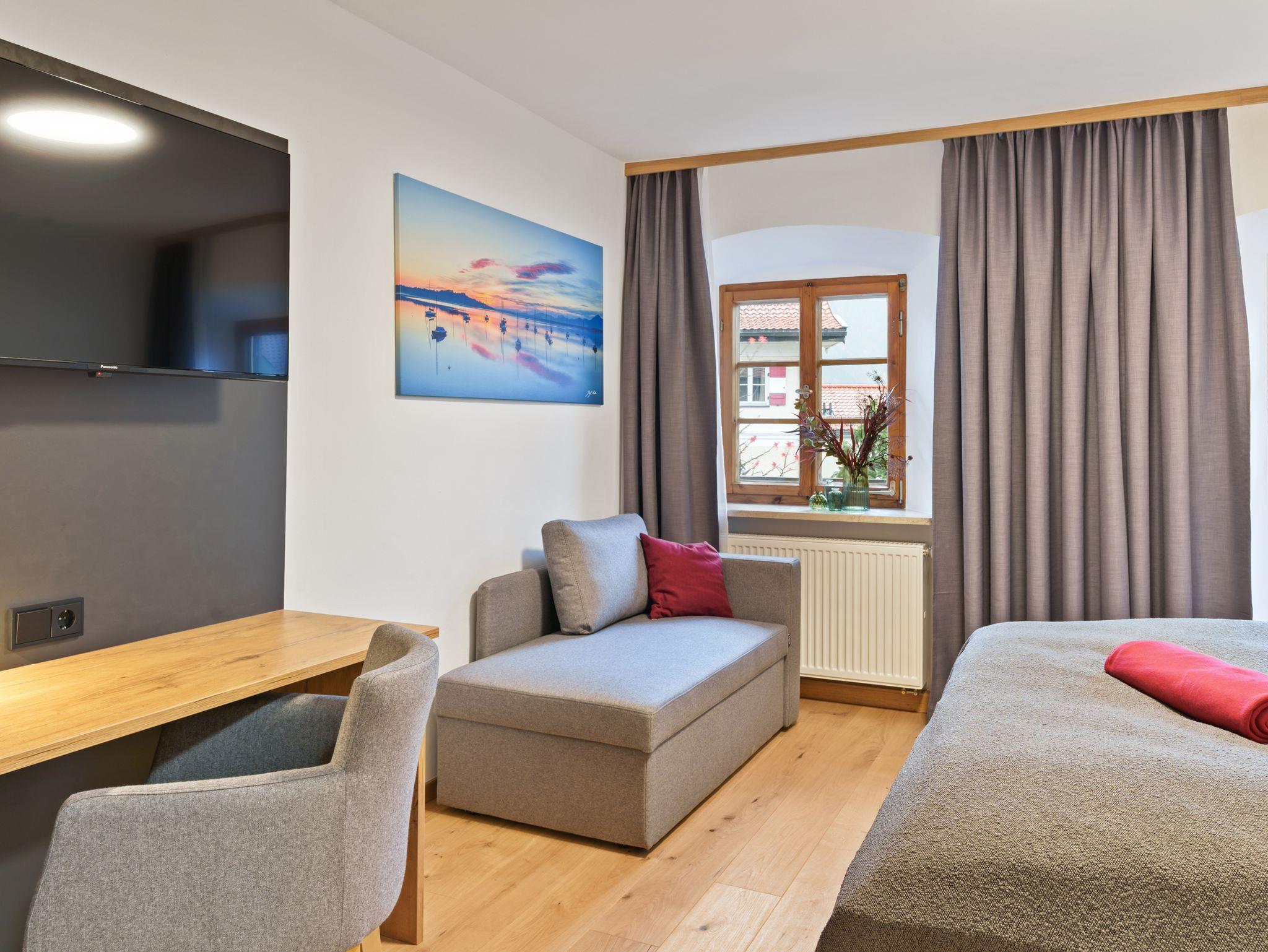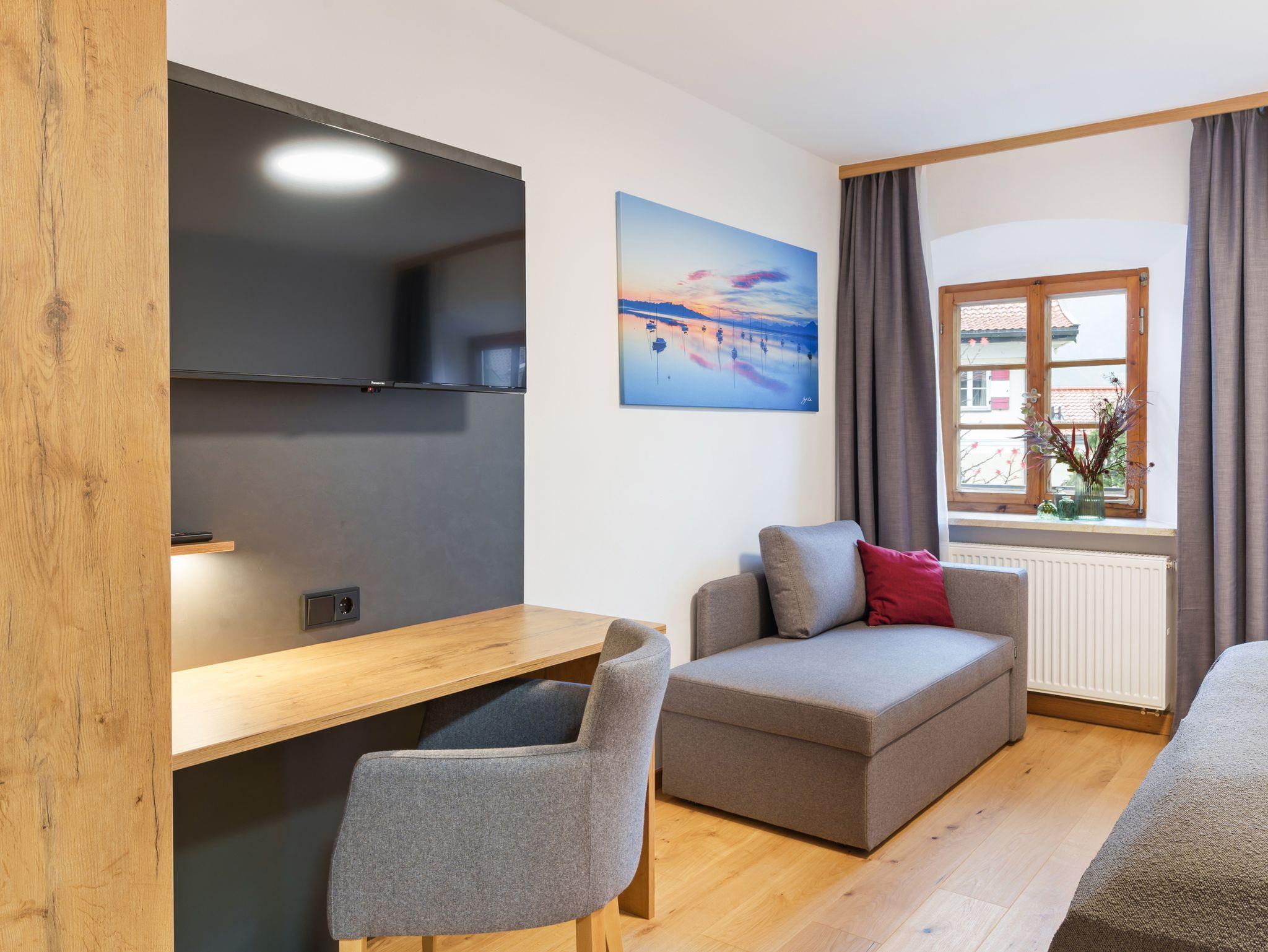 Zur Ausstattung gehören moderne Annehmlichkeiten wie Dusche, WC, Fön, Smart-Kabel-TV, Safe, W-LAN, Kofferablage und ein Schreibtisch, der sich auch ideal fürs Homeoffice eignet.