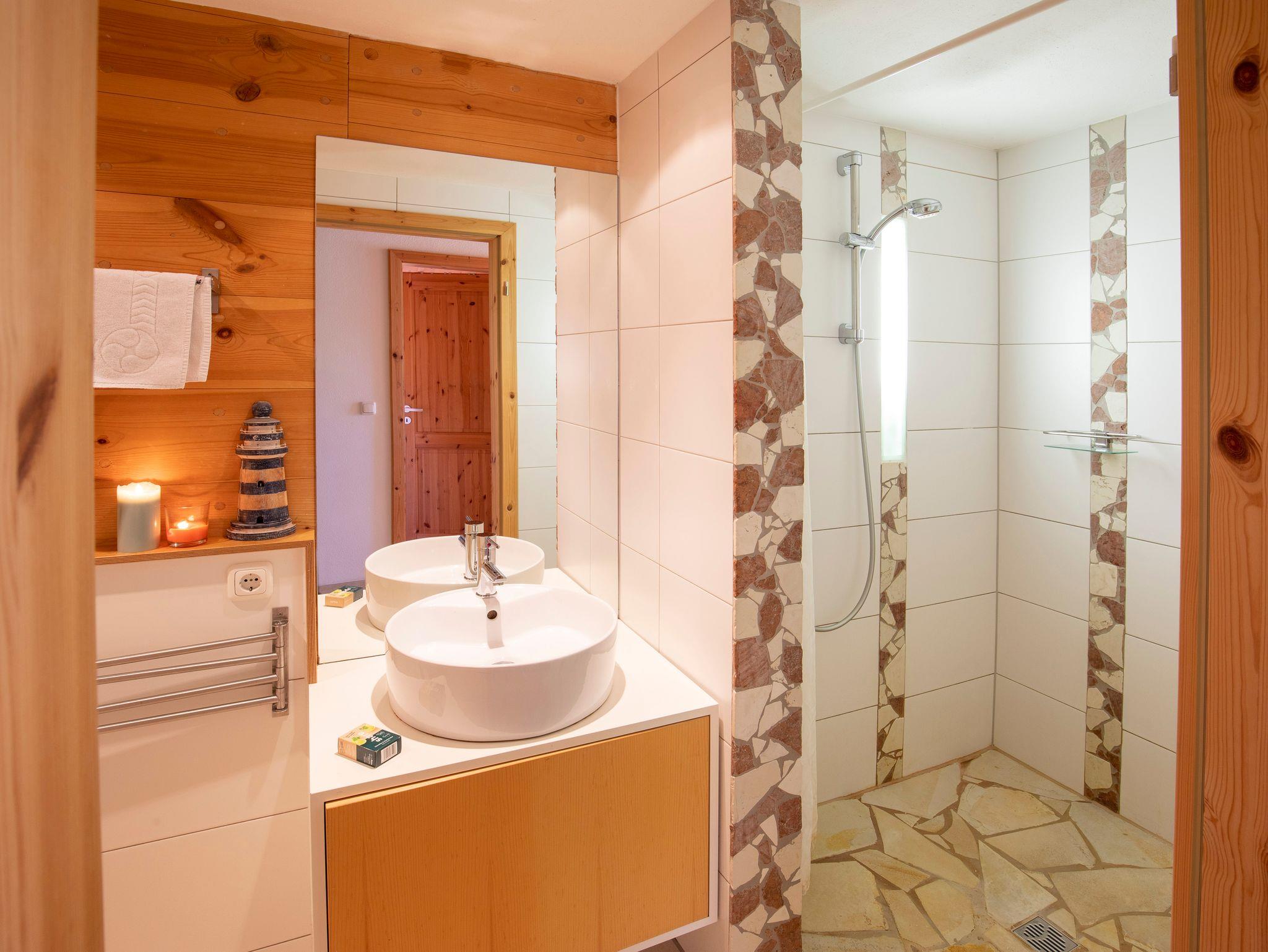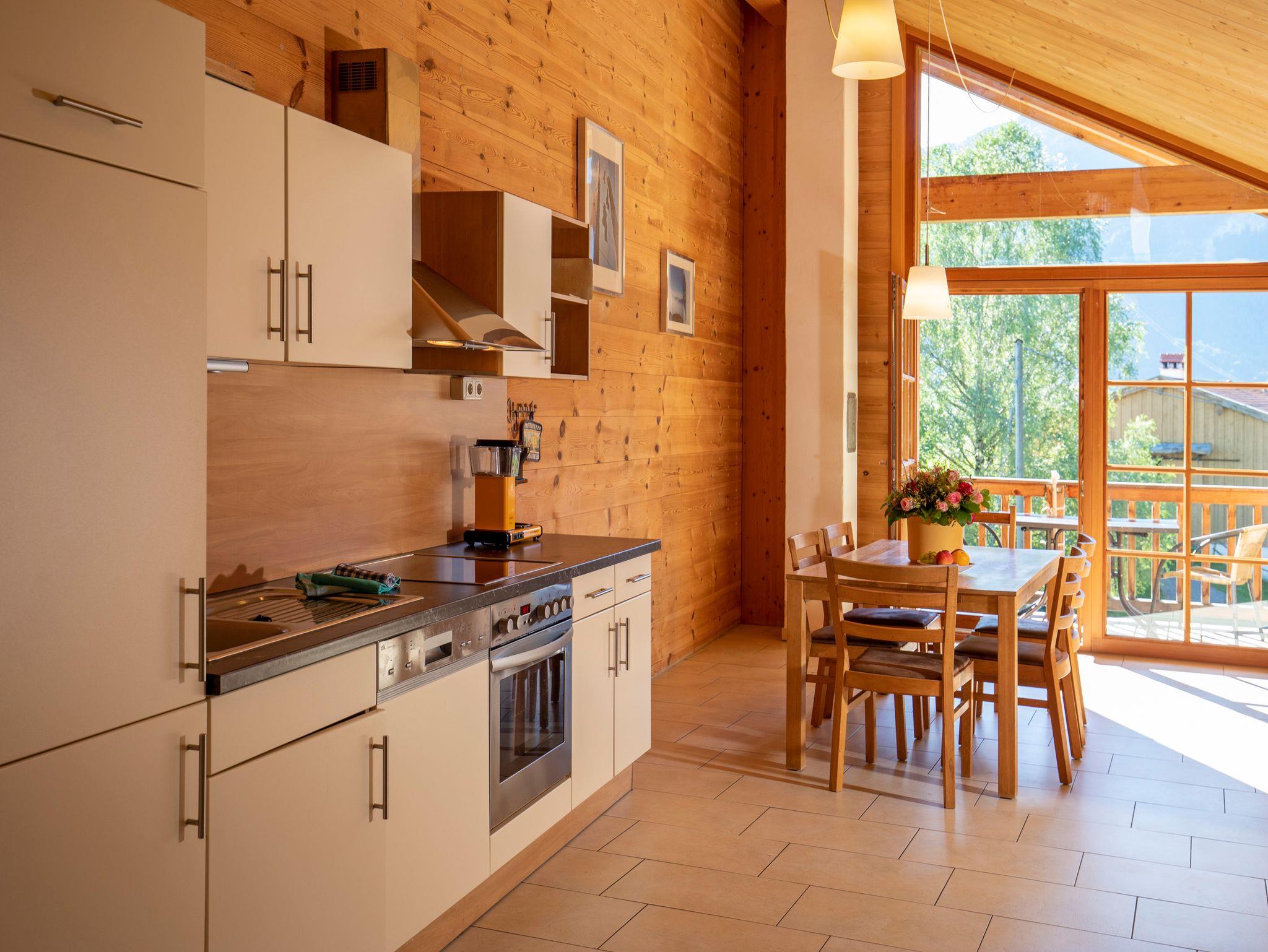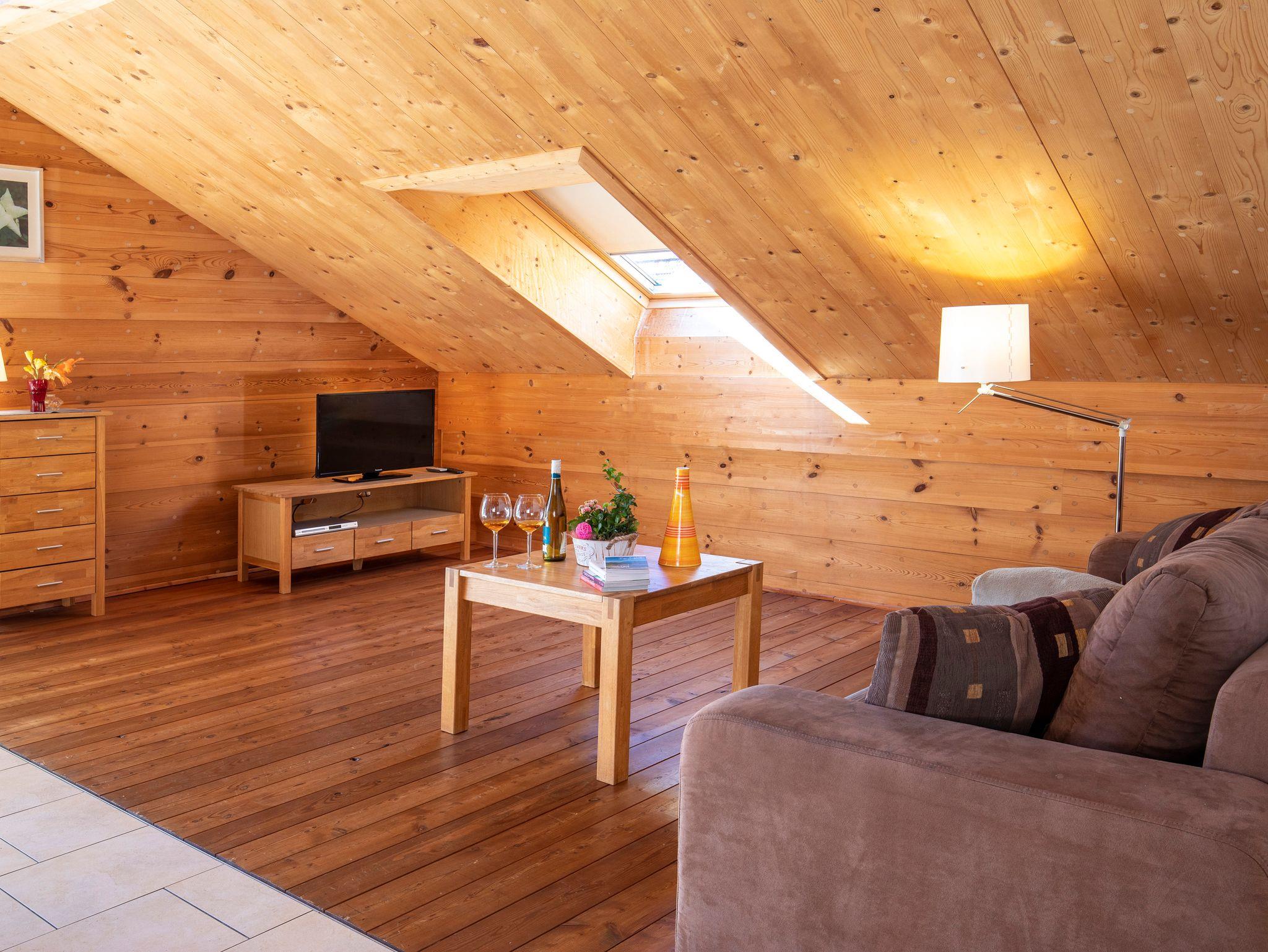 Die großzügig, helle und gemütliche mit Mondphasenholz und Lehm gestaltete 64 qm Nichtraucher Ferienwohnung im Dachgeschoss mit schönem hohen Sichtdachstuhl, Süd-Balkon und Panoramablick auf die Kampenwand, lädt durch ihre Naturholzmöbel mit Wohlfühlambiente, Fußboden- und Wandheizung zum Erholen ein. Genießen Sie Ihre Auszeit in einem großen Wohnraum mit offener Küche und Essplatz. Der Wohnbereich mit Schlafcouch, SAT-Flat-TV, Internetanschluss, kostenloses W-LAN, die voll ausgestattete Küche mit 4-Platten-Cerankochfeld/Backofen, Geschirrspüler, Kühlschrank/Tiefkühlfach, Moccamaster Kaffeemaschine, Wasserkocher und Toaster. Zwei separate Schlafzimmer: Ein Schlafzimmer mit einem Doppelbett und das zweite Schlafzimmer mit einem Einzelbett mit Ausziehbett. Das Ausziehbett ist in Form einer Unterschublade gestaltet und lässt sich einfach ausziehen. Badezimmer mit Natursteindusche, Fußboden- und Wandheizung, WC und Föhn. Bettwäsche und Handtücher sind vorhanden.