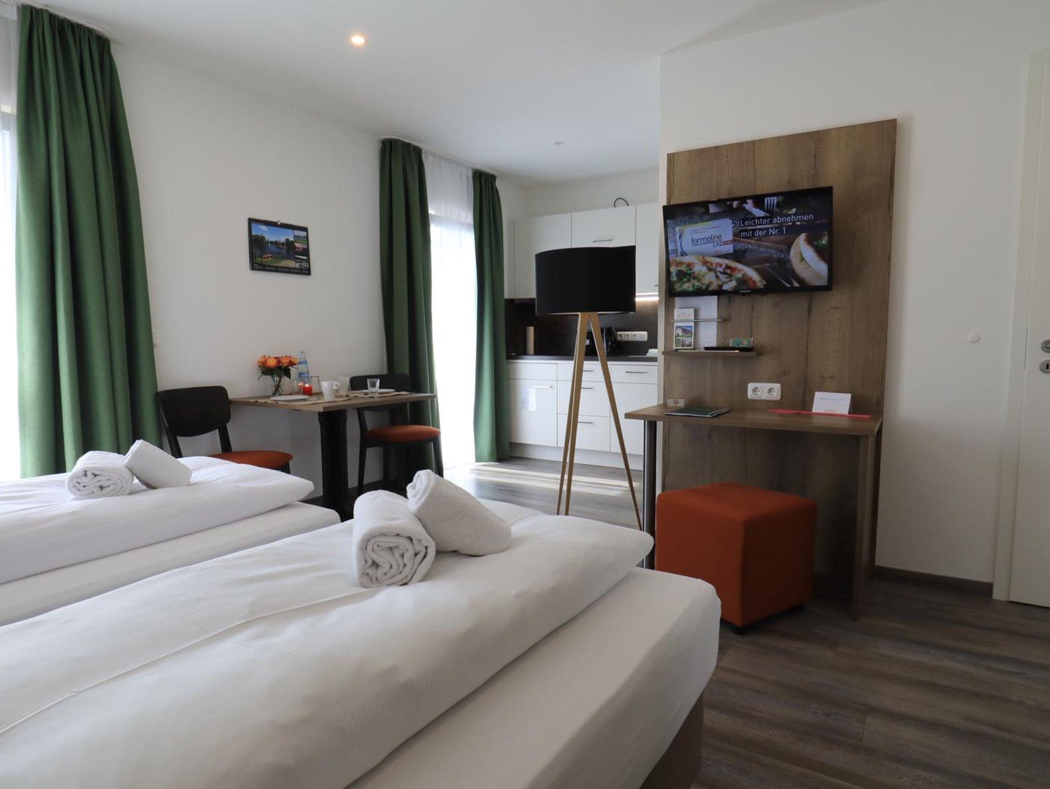 Das gemütliche Appartement bietet auf rund 25qm mit moderner und gemütlicher Ausstattung einen entspannten Aufenthalt in der Hallertau. Mediterrane Farben, harmonisch kombiniert mit freundlichem Holz und viel Licht, das durch die Räume flutet. Die Unterkunft befindet sich im Obergeschoss und besteht aus einem hellen Wohnraum mit Sitzgelegenheit und Doppelbett (Boxspringbett, 2 Einzelbetten, die bei Bedarf auch getrennt werden können). Ein Balkon mit schöner Aussicht lädt zum Entspannen und Wohlfühlen ein. Das Bad ist modern ausgestattet und besteht aus einer Dusche, einem Waschbecken, einem Spiegel und einem WC. Zusätzlich vorhanden sind moderne Fernseher, welche für Unterhaltung sorgen. Außerdem ist eine komplett bestückte Küche (Herd, Mikrowellenofen, Wasserkocher, Kaffeemaschine, Spülmaschine, Zubehör, Kühlschrank) vorhanden und kostenfreies WLAN, Parkplätze stehen ebenfalls zur Verfügung.