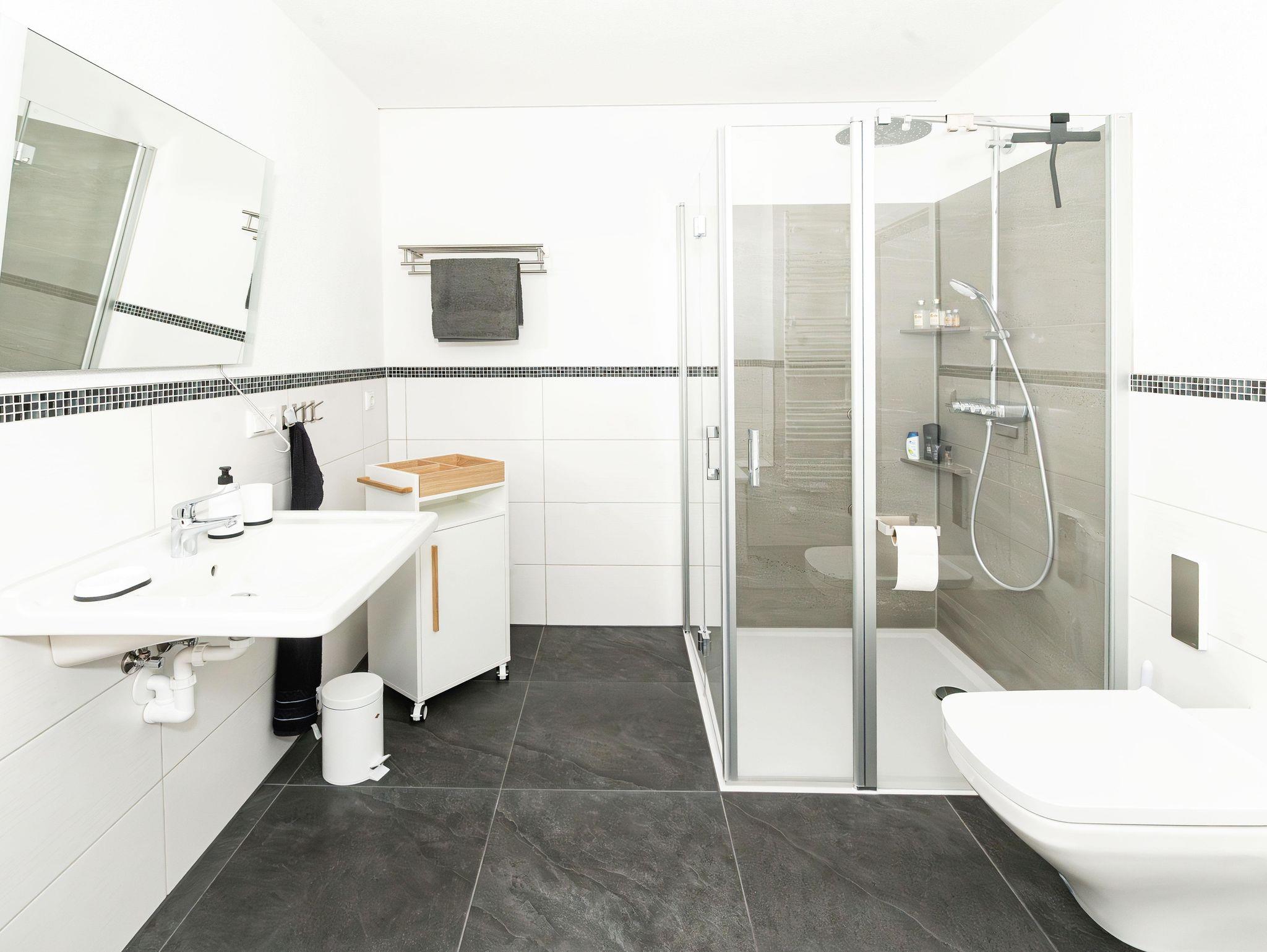 Ferienwohnungen Q14, Fewo Wiesenblick, Dusche, WC, 2 Schlafräume