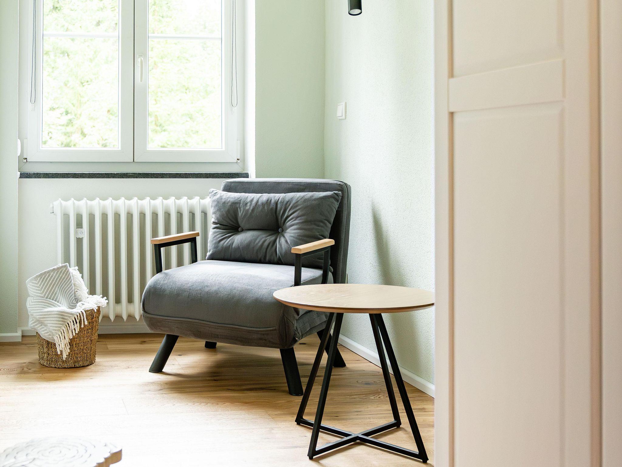 Die Ferienwohnung Wiesenblick befindet sich in der 1. Etage der Quelle und bietet vom Balkon einen herrlichen Blick über Wiesen und Wälder. In der Küche wird es Ihnen dank Backofen, Mikrowelle, Geschirrspüler etc. leicht gemacht, ein leckeres Essen zu zaubern, sofern Sie nicht die heimische Gastronomie nutzen wollen. TV+Soundbar und Spiele laden zu gemütlichen Abenden ein. Buchen Sie für 2 Personen steht Ihnen ein Schlafraum (Doppelbett) + mgl. Aufbettung zur Verfügung. Ab 3 Personen erhalten Sie Zugang zu einem weiteren, separaten Schlafzimmer (Doppelbett 180x200) mit TV auf gleicher Etage, jedoch außerhalb der Wohnungseingangstür. Ein kleines Zimmer bietet Platz zum Lesen oder Spielen mit den Kindern. Bei Bedarf kann der Sessel zur Aufbettung umfunktioniert werden, oder es kann ein Kinderreisebett+Hochstuhl bereitgestellt werden. Das Bad ist so gut wie möglich barrierefrei, mit großer ebenerdiger Dusche und Einladung zum Wannenbad mit beruhigendem Waldblick. Bei Bedarf können am WC Haltegriffe angebracht werden.