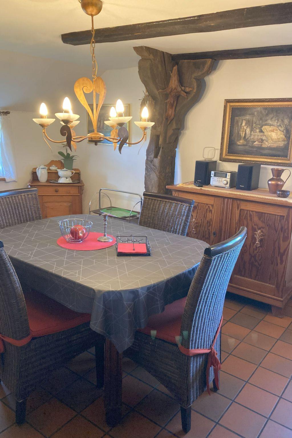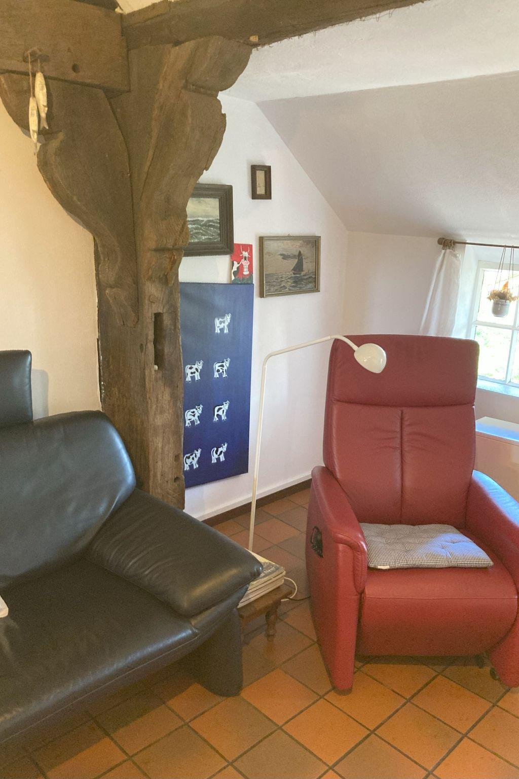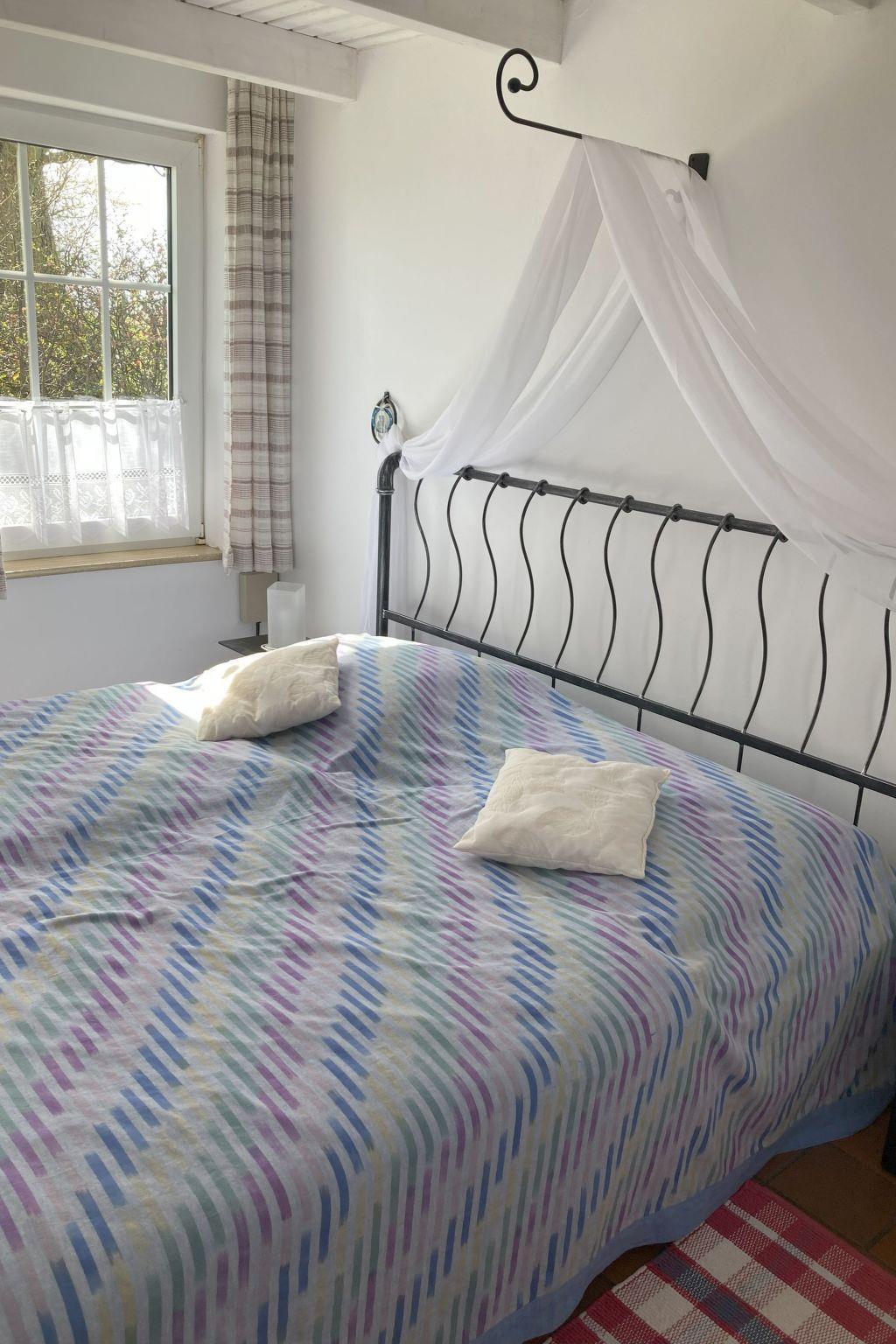The quaint, lovingly restored thatched cottage stands on a 1870 m² plot on Bäderstraße (K 197 road) on the Jade Bay in Stadland-Augustgroden. The house offers 80 m² of living space on the ground floor for up to 4 people. The two 12 m² and 13 m² bedrooms are each furnished with a double bed (1.80 x 2.00 metres). The spacious living/dining room (34 m²) with fireplace, cosy sofa corner and large dining table invites you to spend relaxing and restful holidays here. A small, fully equipped kitchen, a storage room, the hallway and the shower room with WC complete the offer of this holiday home. The large, sunny garden with mature trees is fenced on 3 sides and difficult to see into. A wide, water-bearing ditch (Sieltief) forms the boundary of the fourth side of the property.