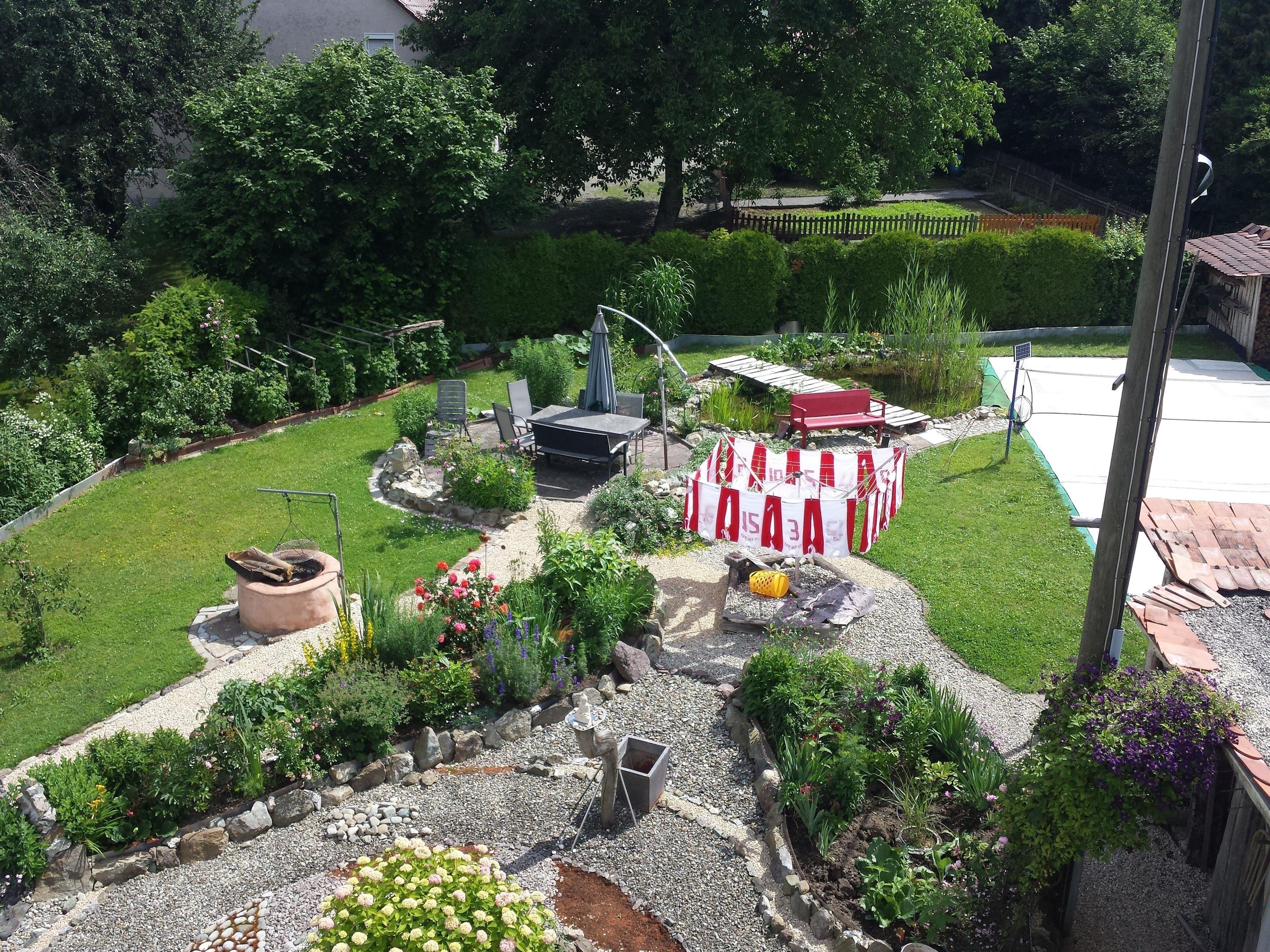 Im Garten erwartet Sie neben einem lauschigen Sitzplatz auch die Möglichkeit zu sportlicher Betätigung (Tischtennisplatte, Badmintonfeld)