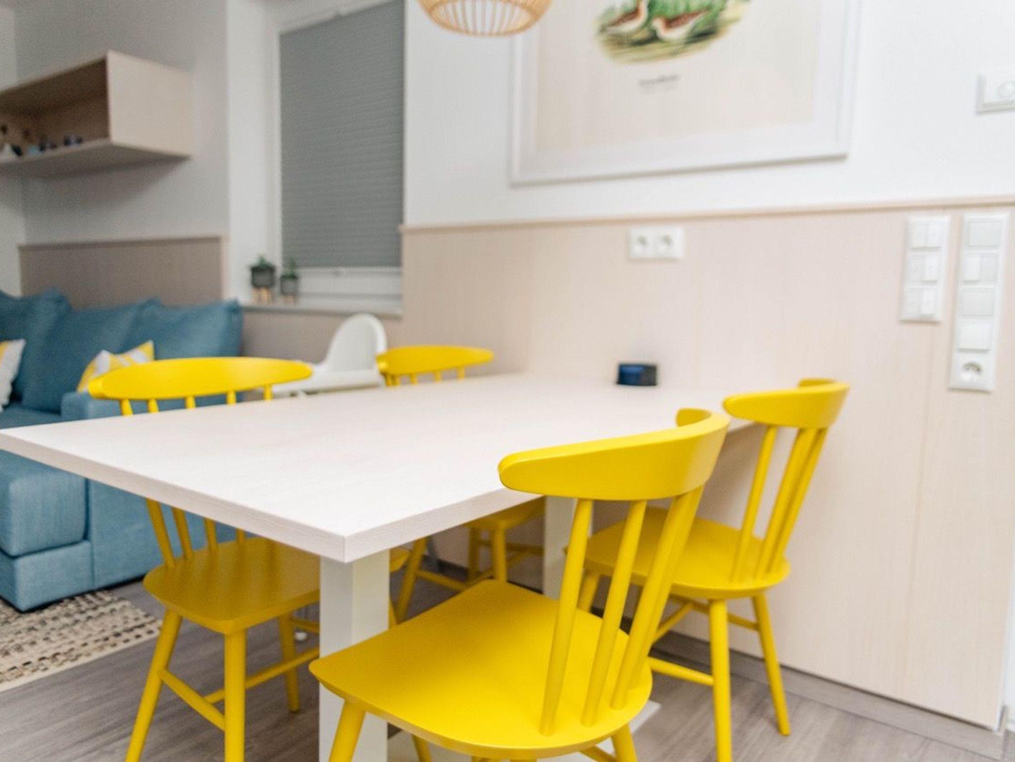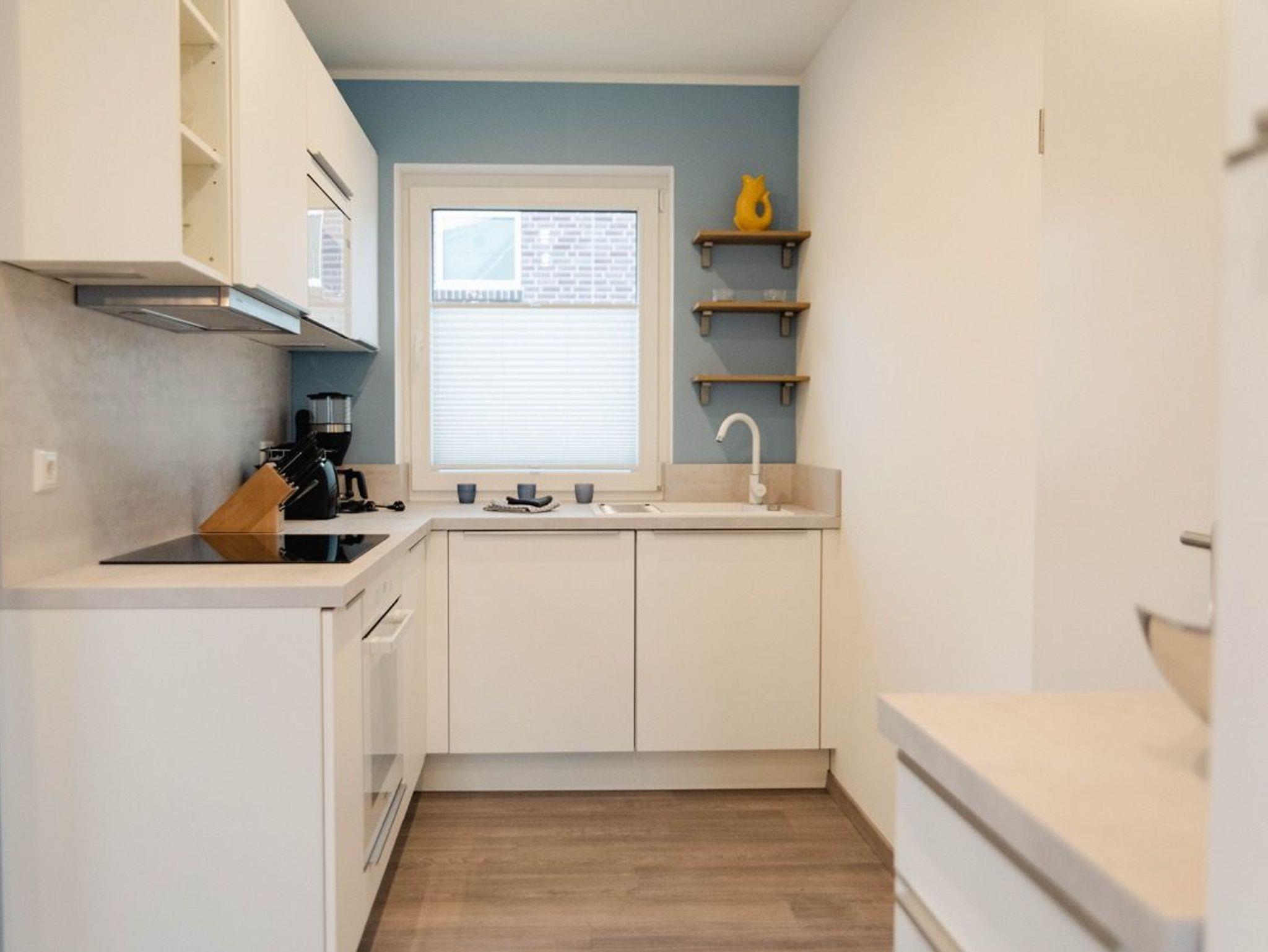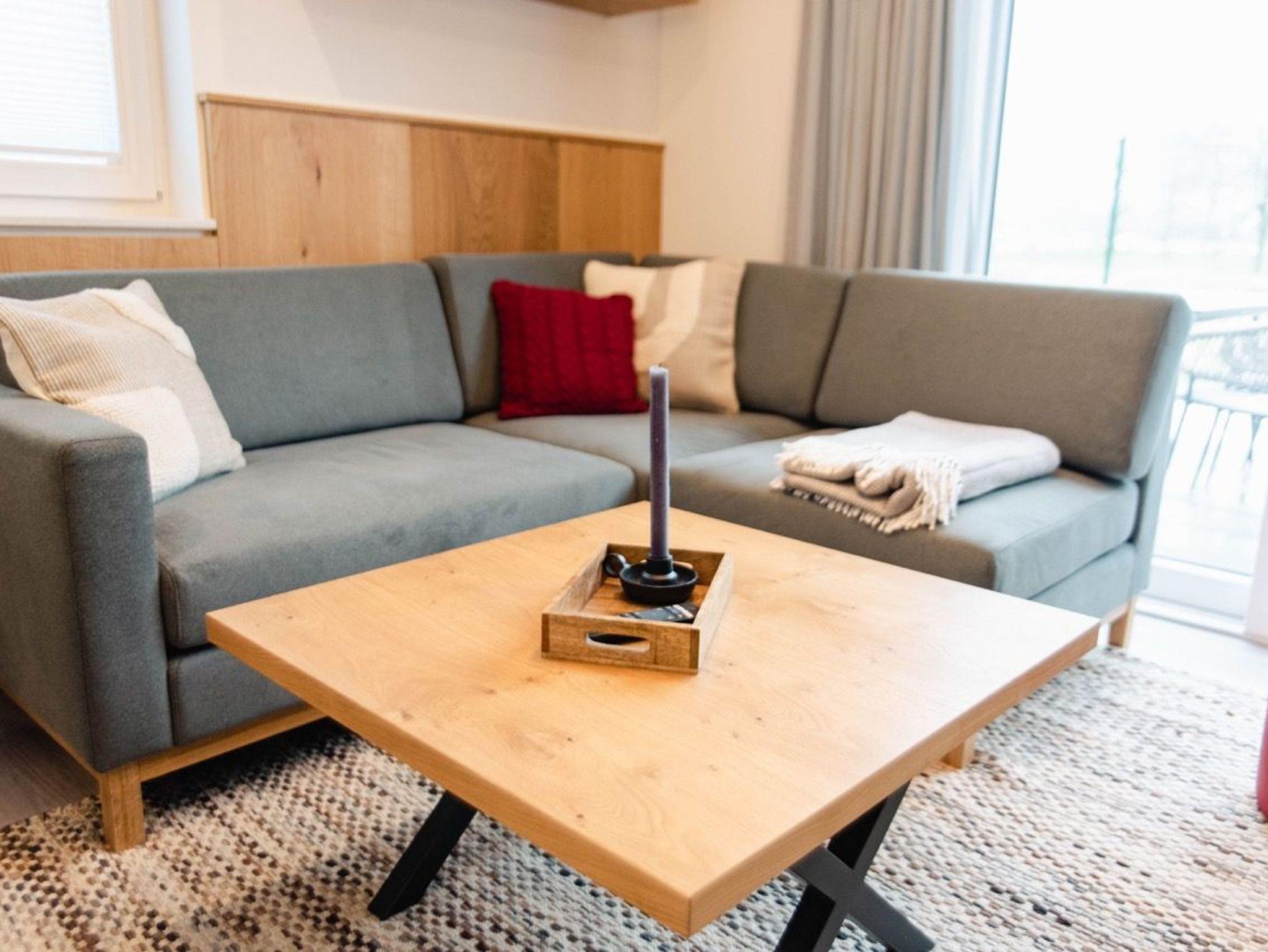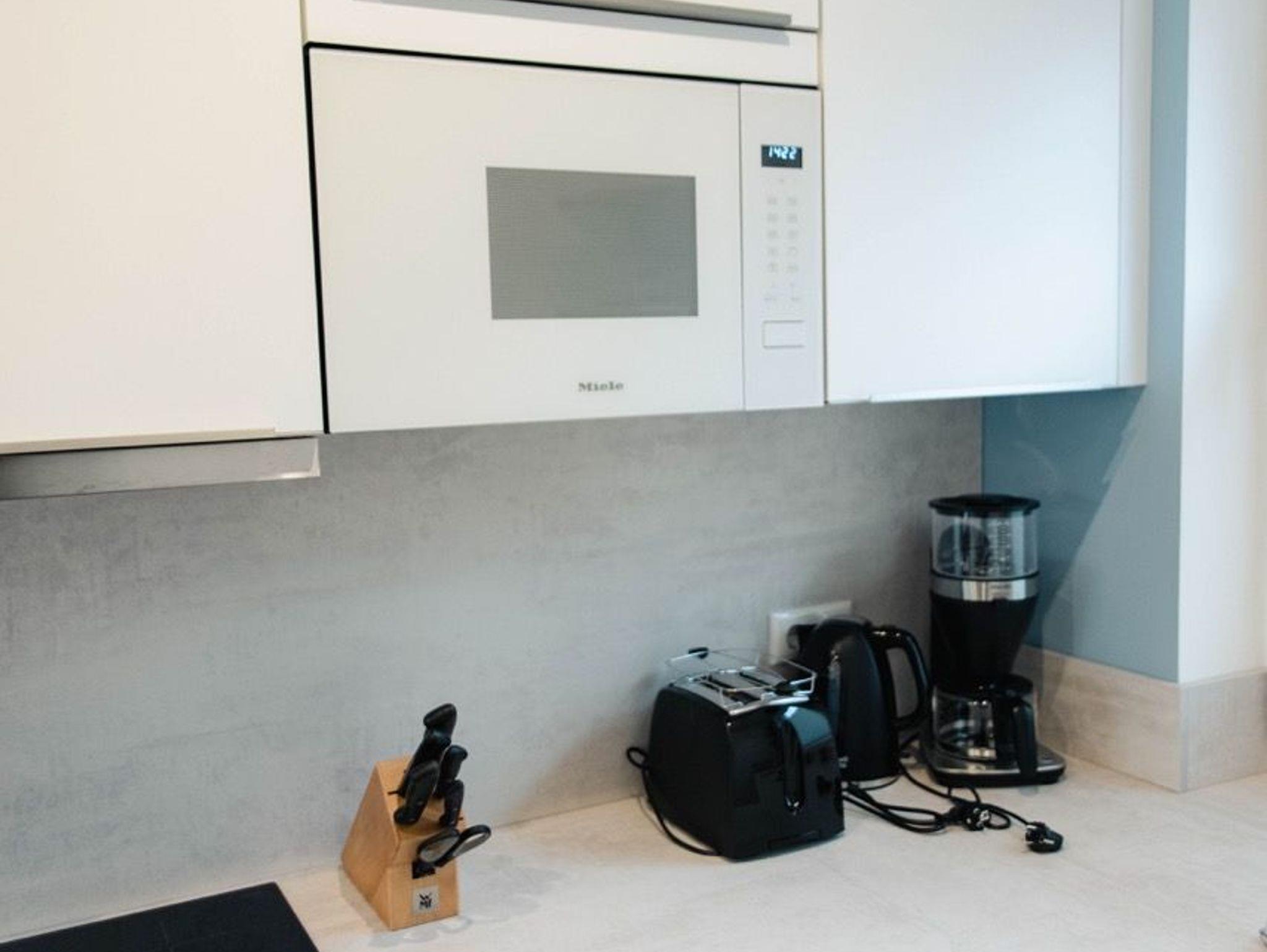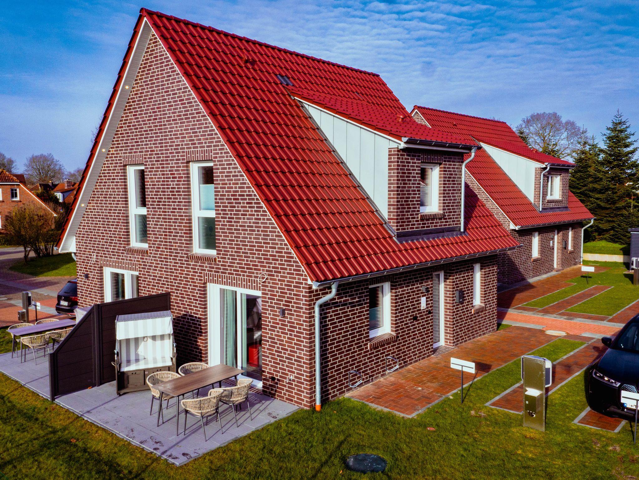 Für jedes Apartment steht ein Parkplatz mit E-Ladesäule zur Verfügung, die Terrassen sind möbliert, außerdem lädt ein gemütlicher Strandkorb zum Verweilen ein.