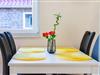 Stueetage: (entre(, , varme), Køkken(, radio, kogeplade, elkedel, brødrister, kaffemaskine, ovn, opvaskemaskine , køleskab, fryser, varme), stue / spisestue(, , , Fjernsyn, spisebord, radio, varme, barnestol), guest toilet(, toilet, håndvask, varme), pulterkammer(, vaskemaskine, strygebræt, tørreskab)) På 1. etage: (entre(varme), soveværelse(, , dobbeltseng, varme, insektnet), soveværelse(, , enkeltseng, enkeltseng, varme, insektnet), badeværelse(, toilet, bruser, håndvask, varme, føntørrer)) , , , Internetadgang, vaskemaskine, varme, terrasse(, havemøbler), tørreskab, Ladestation til el-biler,
