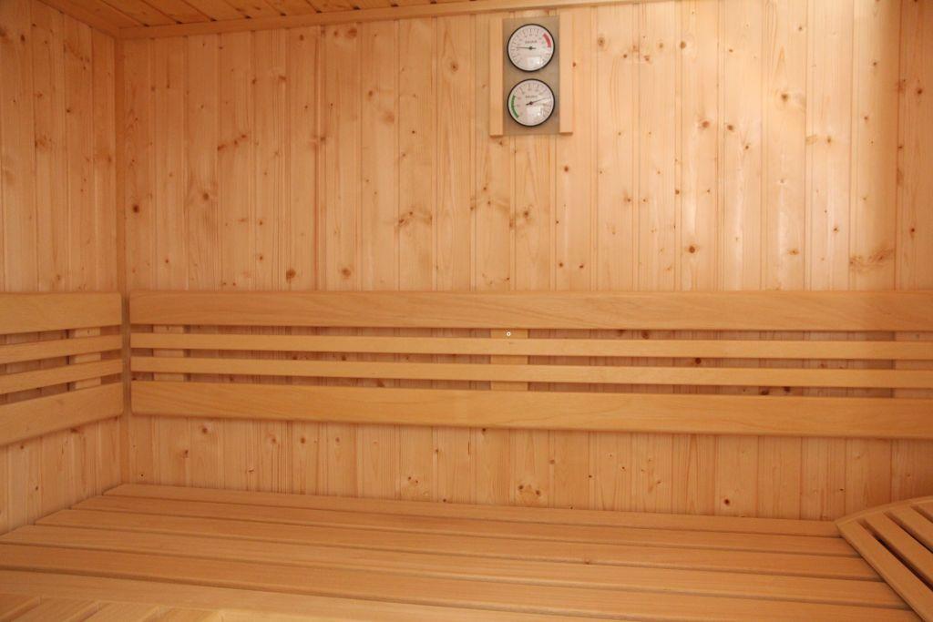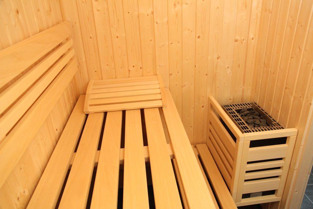 Die Sauna im Erdgeschoss bietet Ihnen die Möglichkeit, sich auch an "Schlechtwettertagen" zu erholen. Nach dem Saunieren können Sie gemütlich entspannen oder sich im Strandkorb mit Blick auf den schönen Badesee abkühlen oder vielleicht sogar ein Bad darin nehmen?