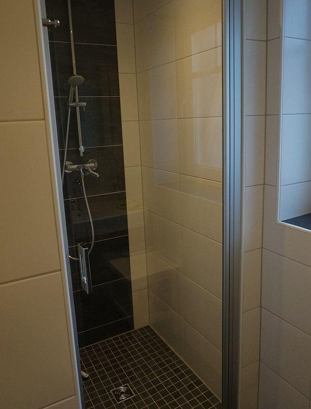 Das Bad im EG verfügt über eine ebenerdige Dusche, Sauna, Handtuchtrockner und Föhn. Auch im oberen Bad finden Sie eine Dusche, einen Handtuchtrockner und einen Föhn.