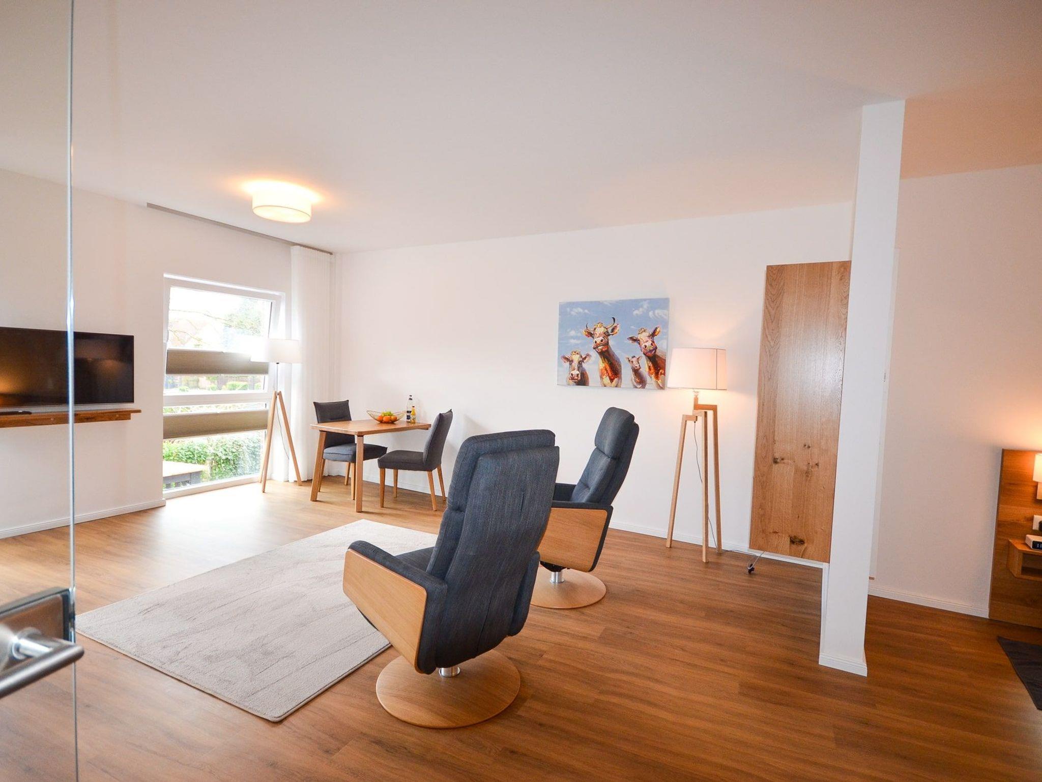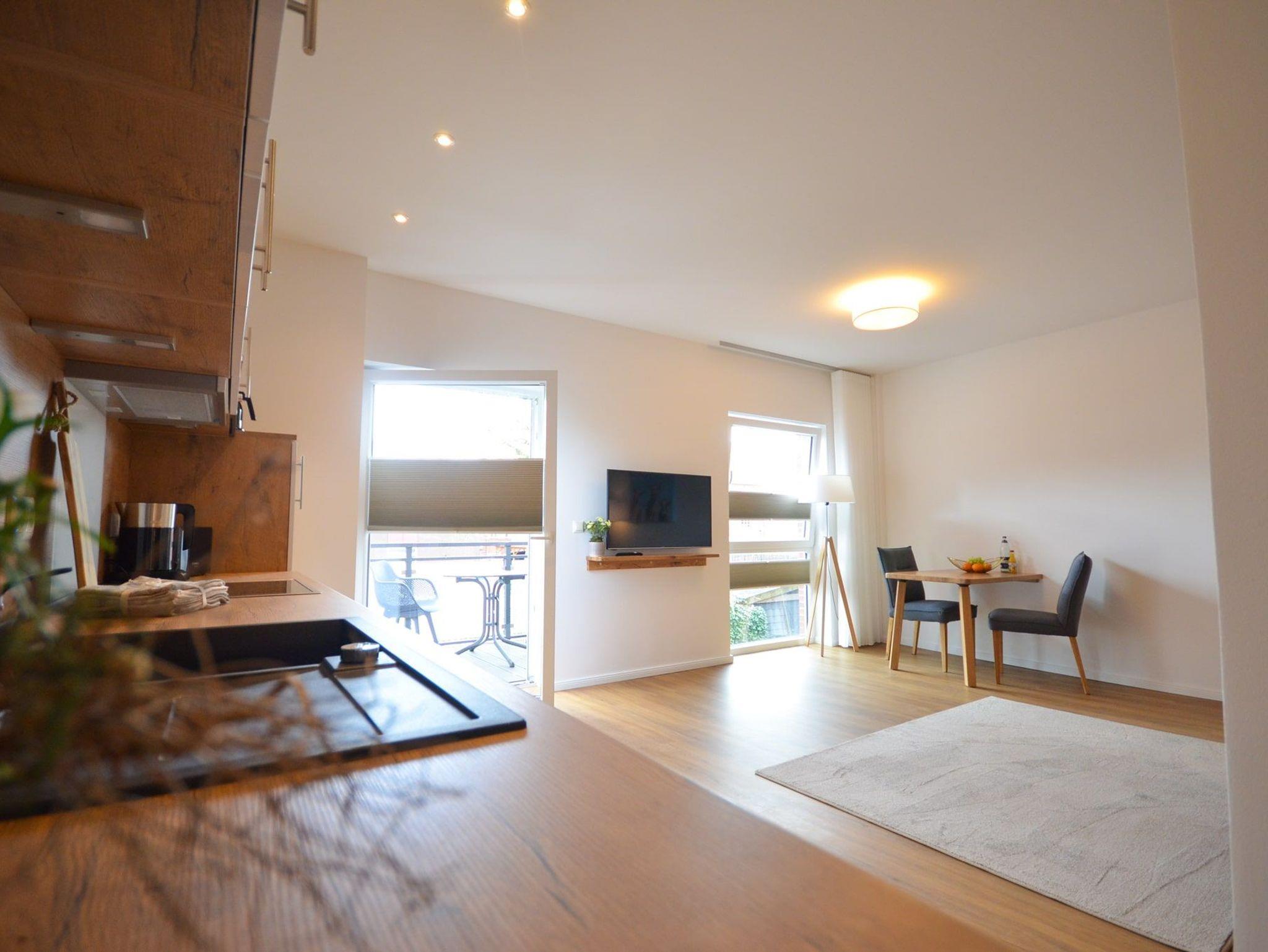 Mit der stilvollen, aufeinander abgestimmten Einrichtung und einer sehr ansprechenden Raumaufteilung, ist es ein Ort zum Wohlfühlen sowohl für einen Ostfrieslandurlaub als auch für Ihren geschäftlichen Aufenthalt. Mit der hellen, offenen Wohnküche und dem Essbereich ist dies ein Apartment, das sich geradezu für einen längeren Besuch anbietet.