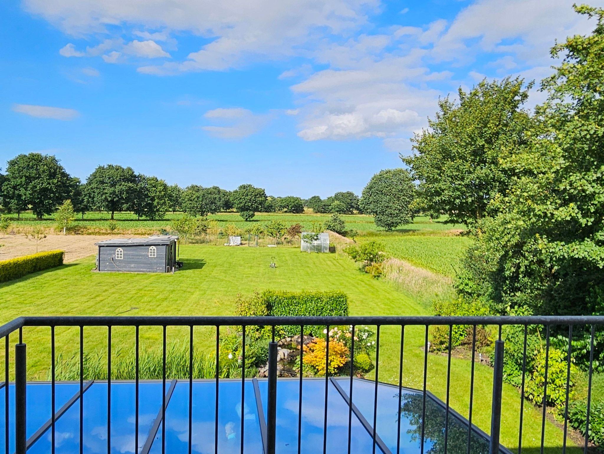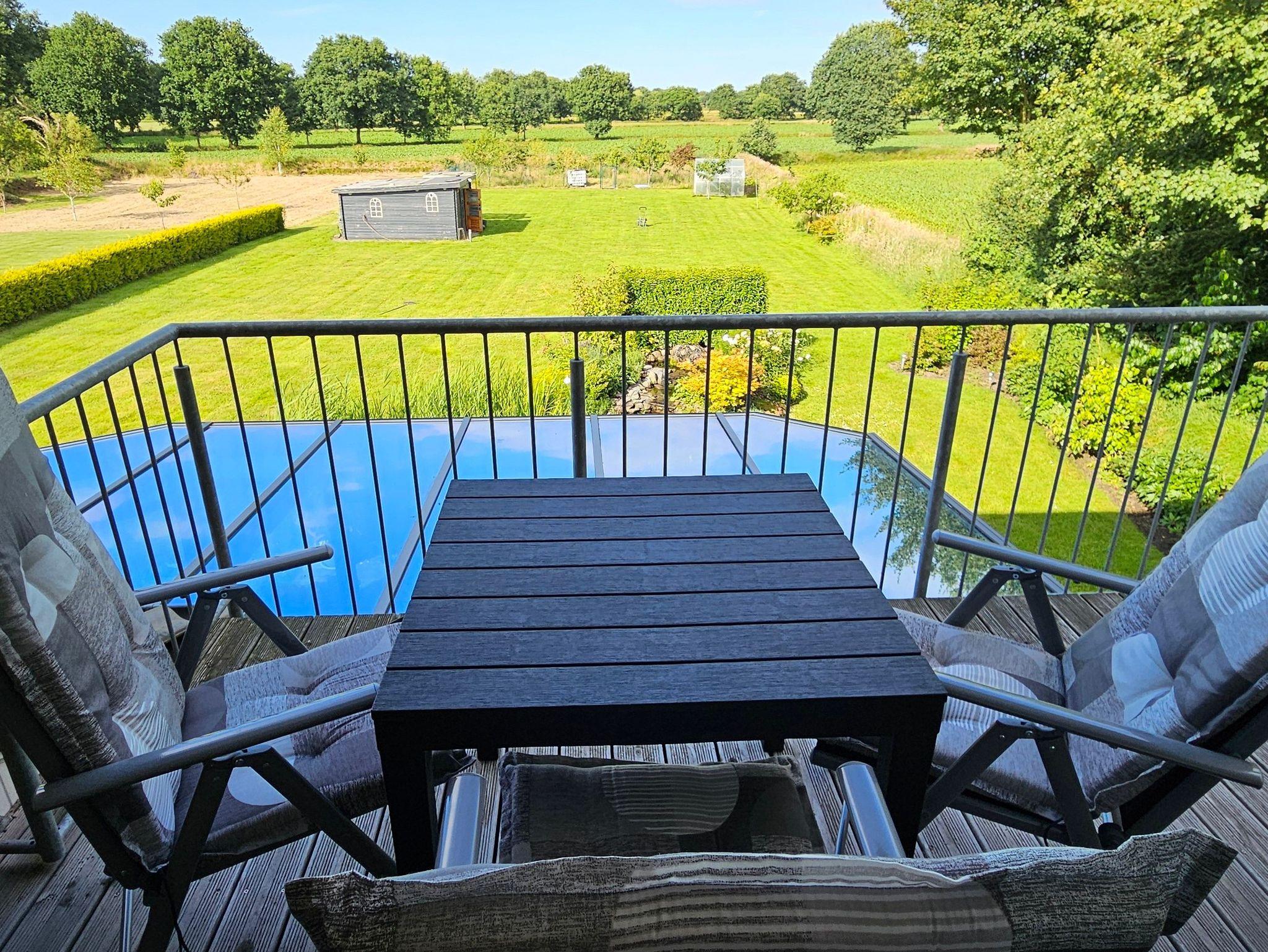Genießen Sie gemütliche Stunden auf dem möblierten Balkon mit Blick auf den schönen Garten und auf die umliegenden Felder. Hier werden Sie einen erholsamen und schönen Urlaub verbringen und gelegentlich ein paar Rehe beobachten können!