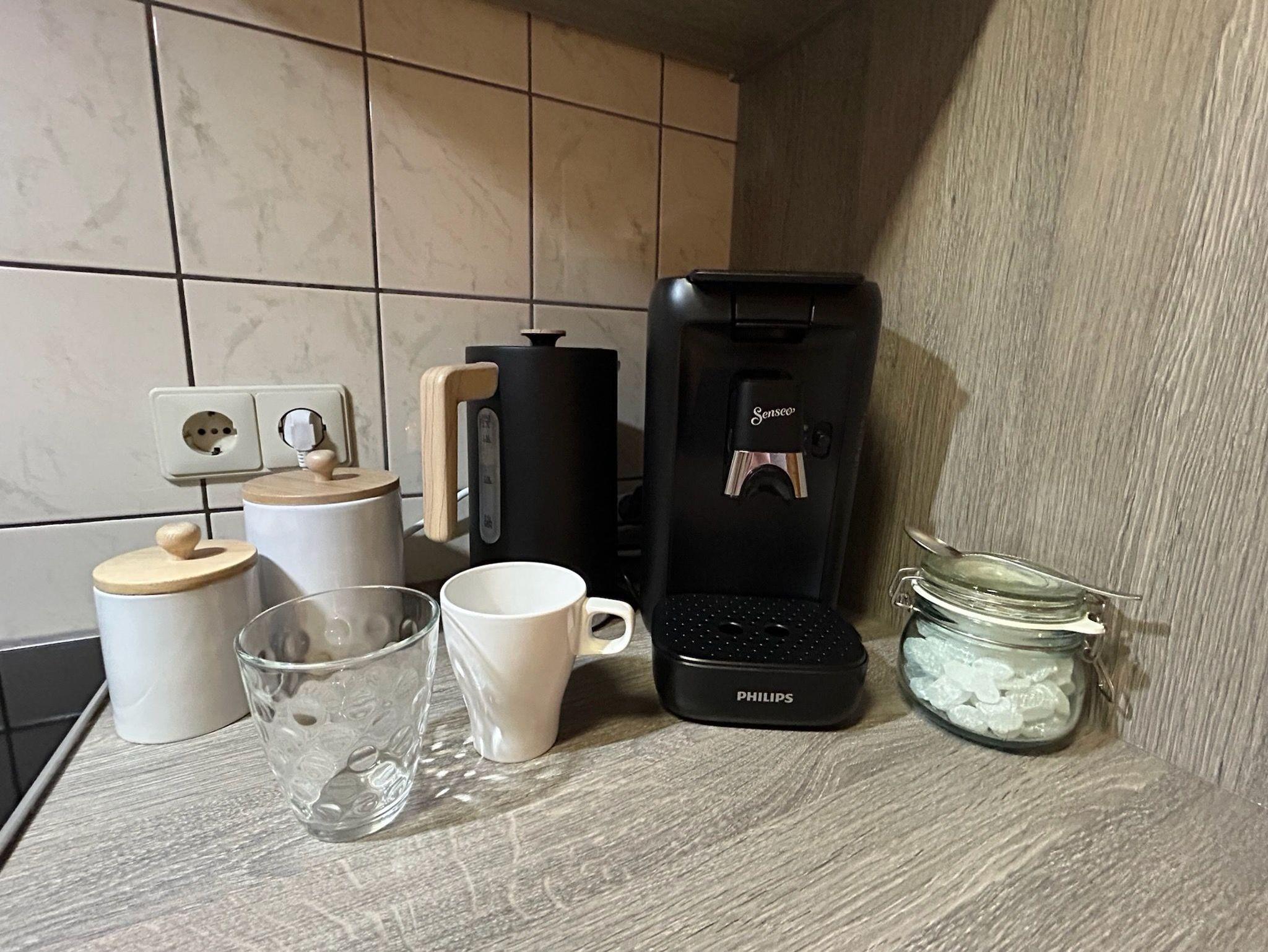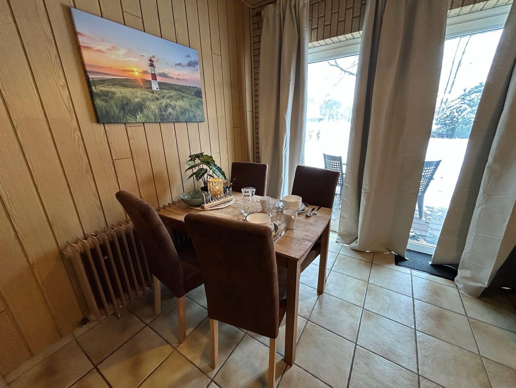Die voll ausgestattete Küche mit Cerankochfeld, Backofen, Kühlschrank mit Gefrierfach und Senseo-Kaffeemaschine lädt zu genussvollen Momenten ein. Das moderne Bad mit Dusche und Fön sorgt für einen angenehmen Start in den Tag. Draußen erwartet Sie eine eigene Terrasse, perfekt für Frühstück in der Morgensonne oder ruhige Abende nach einem Tag am Meer.