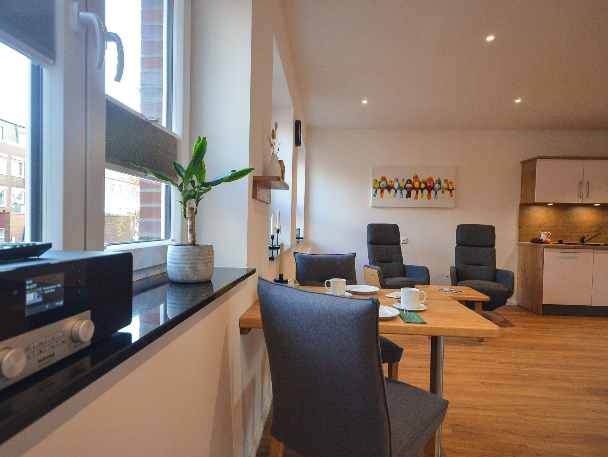 Dieses sehr helle Apartment ist stilvoll eingerichtet und hat eine sehr gelungene Raumaufteilung. Mit der klassisch-stilvollen, offenen Wohnküche und dem Essbereich ist dies ein Apartment, das sich auch für einen längeren Aufenthalt anbietet. Ein großer Abstellraum bietet sich z. Bsp. zum Deponieren für Ihre Koffer an.
