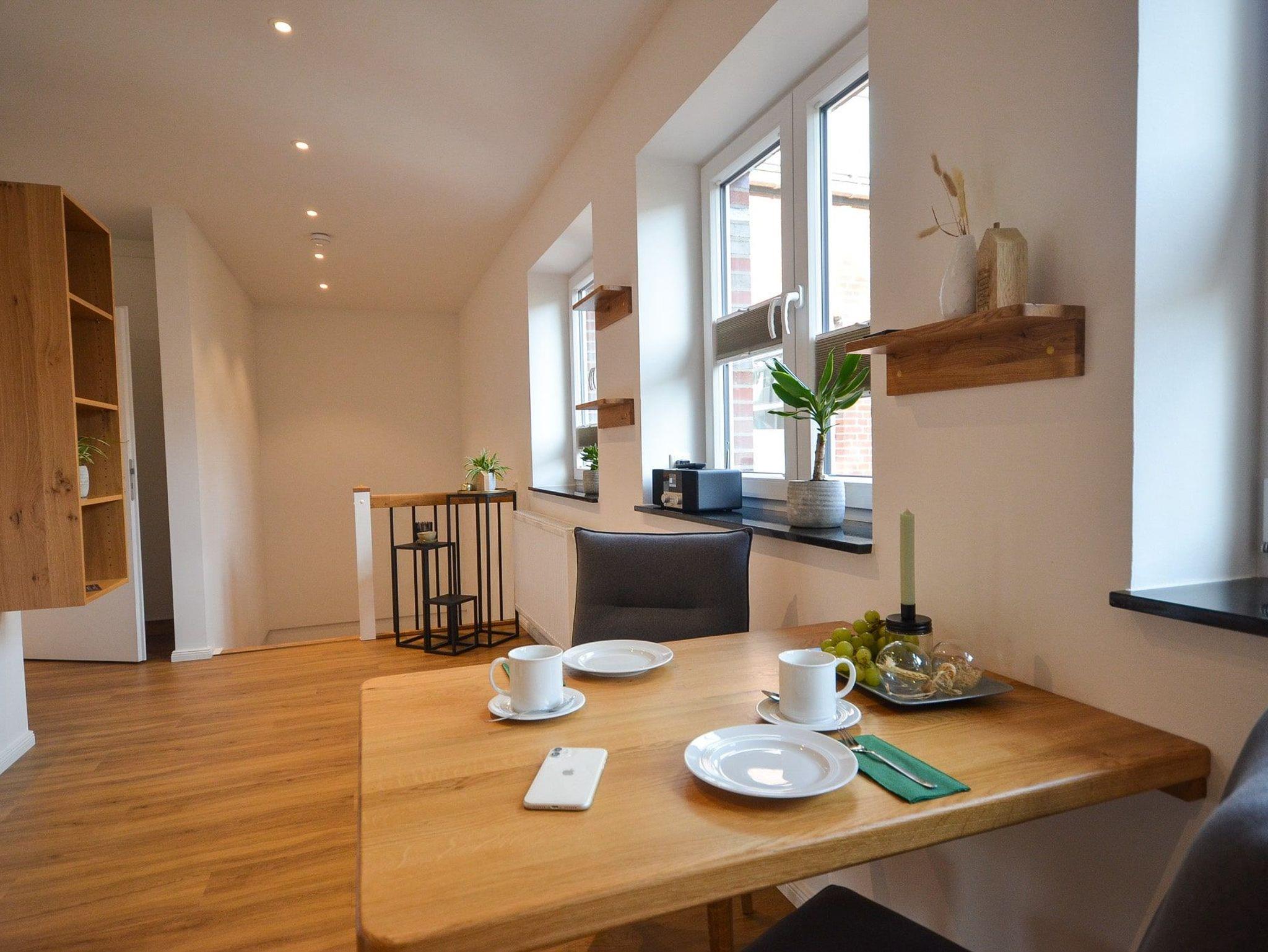 Das Apartment befindet sich im Erd- und 1. Obergeschoss mit Blick in den ruhigen Innenhof. Über eine Holztreppe erreichen Sie das 1. Obergeschoss. Das Apartment ist ca. 72 m² groß und für max. 2 Personen und 1 Kind im Alter von bis zu drei Jahren buchbar.