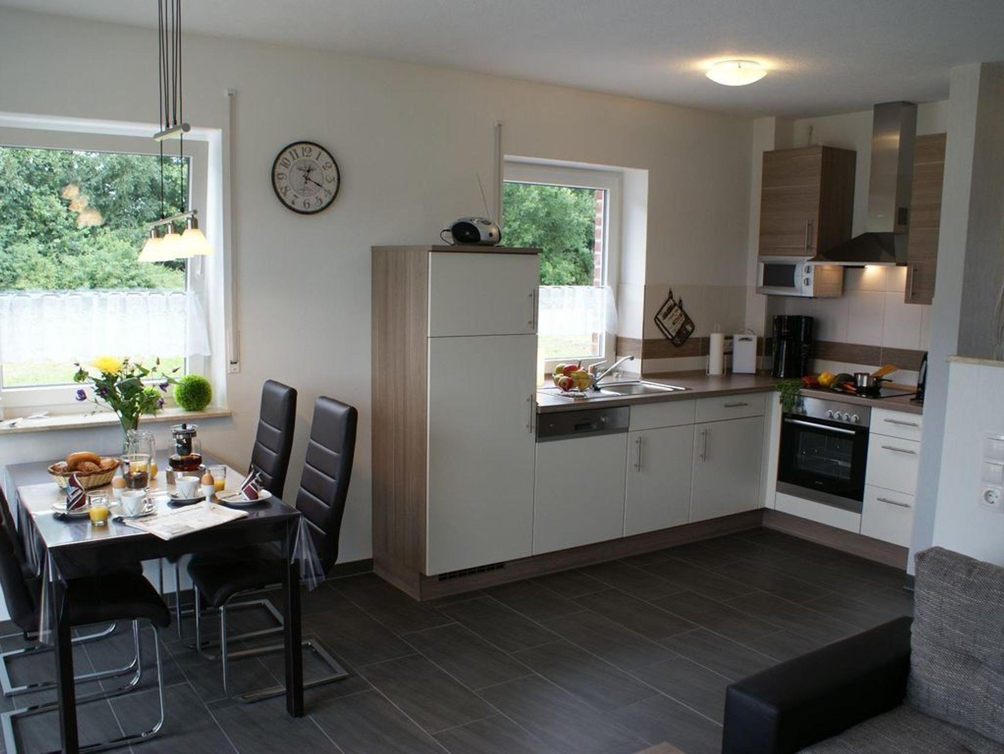Allergikageeignetes Feriendoppelhaus (2 x 4 Betten) mit Fliesen und Laminat. Bad im OG mit ebenerdigem Duscheinstieg und separatem WC im EG. Bettwäsche und Handtücher werden kostenfrei gestellt. Keine Haustiere. Nichtraucherhaus. Möblierte Terasse mit Grill + Gartenschirm. Elektrische Jalousien am Terassenfenster. Jedes Zimmer ist verdunkelbar. Fliegengitter in den Schlafzimmern und im Bad. Kaffemaschine, Geschirspühler, Mikrowelle, Mixer, Gerfrierfach, Kosmetikspiegel, Safe, Kinderhochstuhl, Spiele und Lesematerial. Die Wohnzimmercouch ist ausziehbar. W-Lan gegen Gebühr.
