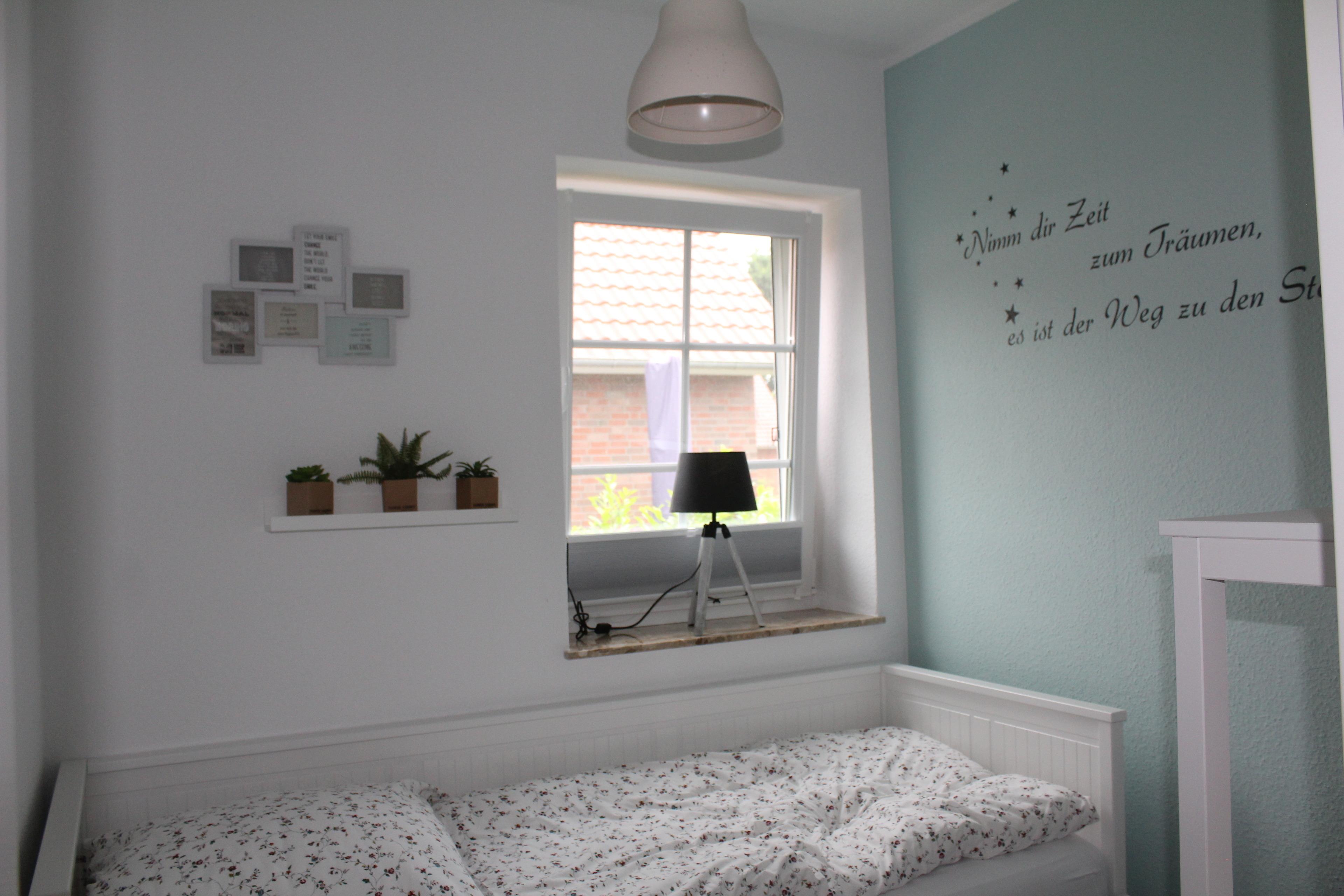 Erdgeschoss: Ein Gästezimmer mit Einzelbett sowie ein Badezimmer mit Dusche/WC.