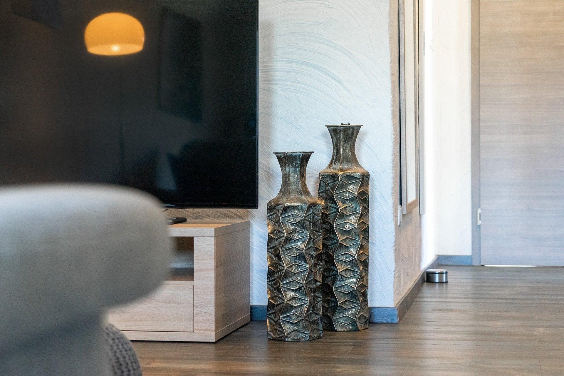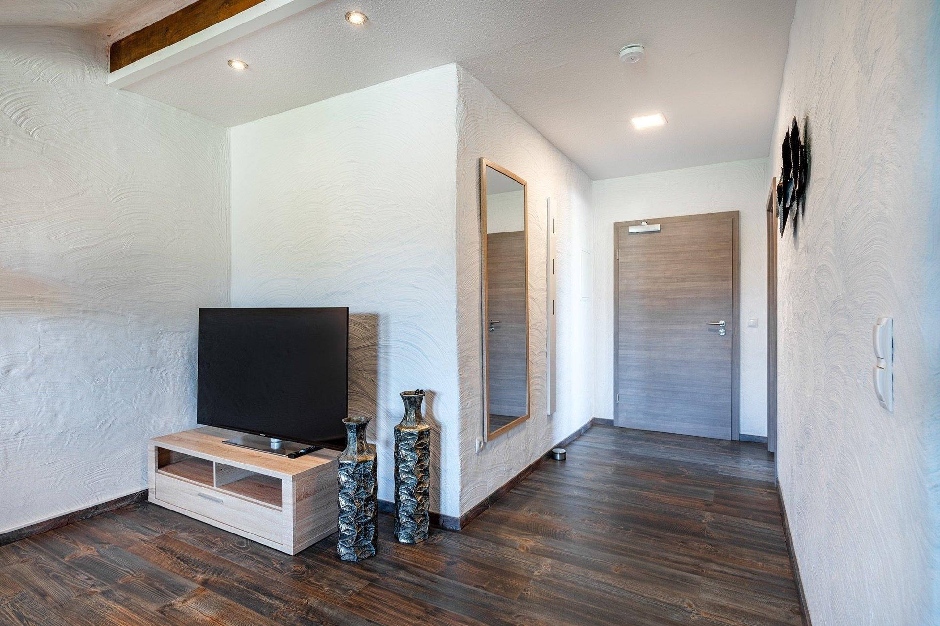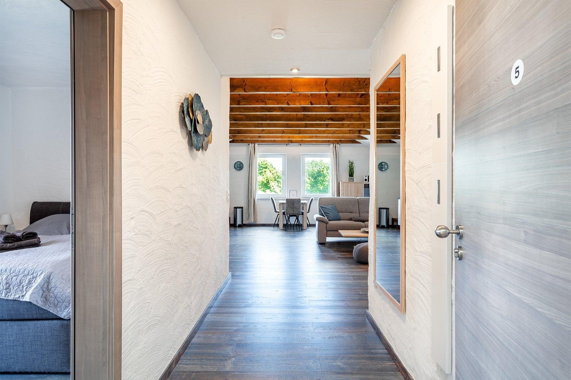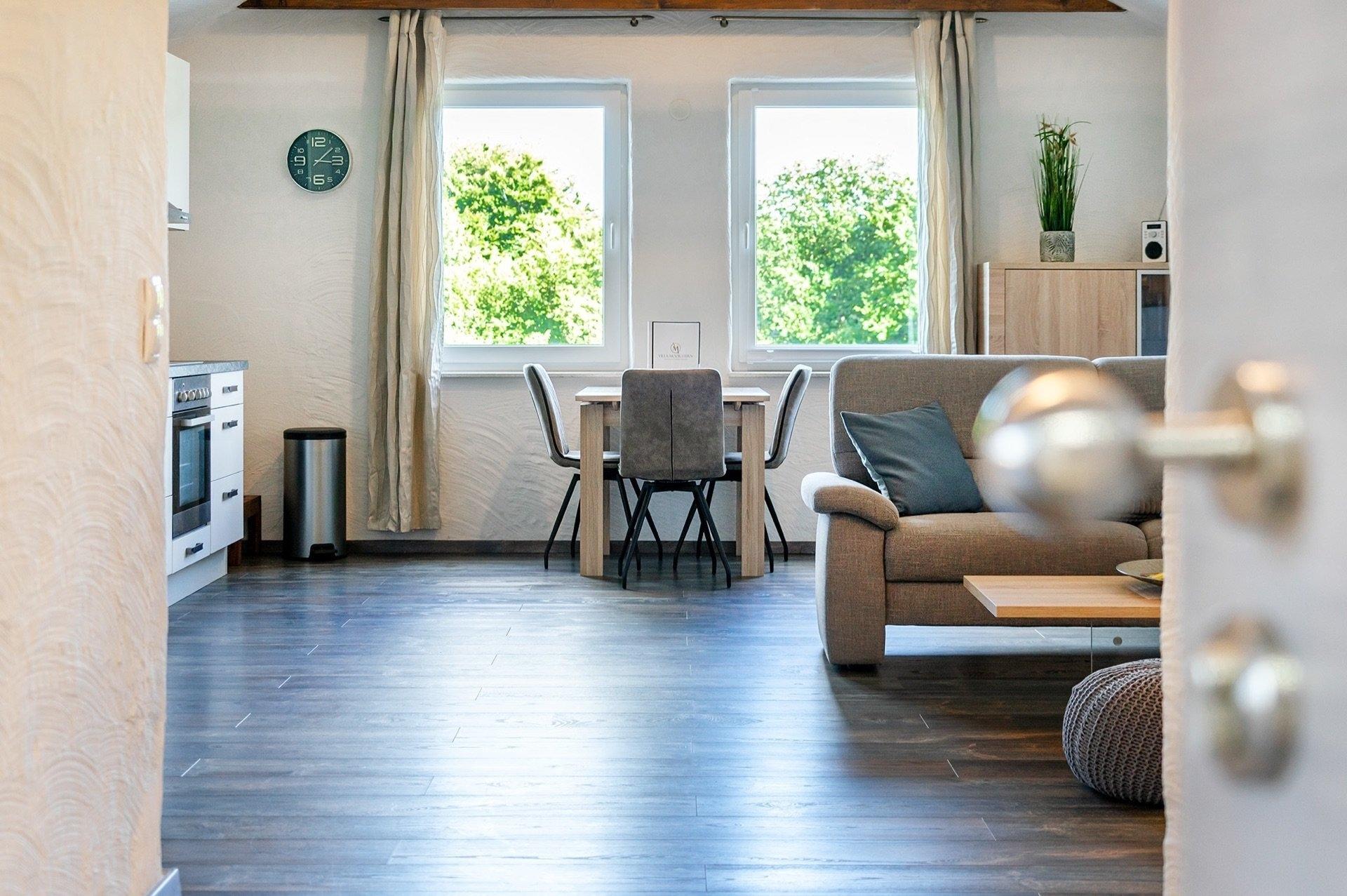 Die Ferienwohnung "Bernuthsfeld" bietet nicht nur eine behagliche Unterkunft, sondern auch einen traumhaften Ausblick auf die Moorlandschaft Ostfrieslands von ihrer einladenden Loggia aus. Hier kann jeder Gast die Ruhe und Schönheit der Natur in vollen Zügen genießen.Das Schlafzimmer der Wohnung ist ein kleines Wohlfühlparadies, ausgestattet mit einem bequemen Boxspringbett, das zum erholsamen Schlaf einlädt. Ein geräumiger Kleiderschrank und liebevoll gestalteter Nachttisch mit stimmungsvollen Nachtlampen vervollständigen das Ambiente.Der offene Wohnzimmer- und Küchenbereich strahlt Gemütlichkeit aus und lädt zu gemeinsamen Aktivitäten ein. Die Küche ist modern und vollständig ausgestattet mit hochwertigen Geräten wie Cerankochfeld, Backofen, Kühlschrank, Gefrierfach und Geschirrspüler. Für den perfekten Kaffeegenuss stehen sowohl eine klassische Kaffeemaschine als auch eine Kaffeepadmaschine (Senseo) zur Verfügung. Ein großer, ausziehbarer Esstisch bietet genügend Platz für gemeinsame Mahlzeiten oder unterhaltsame Spielabende zu zweit. Die gemütliche Couch und ein großzügiger58 Zoll Smart-TV sorgen für Unterhaltung und Entspannung. Die gesamte Wohnung ist zeitgemäß eingerichtet, um den Gästen einen hohen Erholungswert zu bieten.Das Badezimmer der Wohnung ist geräumig und komfortabel gestaltet, um den Aufenthalt noch angenehmer zu machen.Die Loggia der Ferienwohnung ist ein besonderes Highlight, ausgestattet mit bequemen Möbeln, von denen aus man einen weitläufigen Blick auf die Moorlandschaft Ostfrieslands genießen kann. Hier kann man sich zurücklehnen und inmitten der Natur absolute Entspannung finden.Die Wohnung befindet sich im zweiten Obergeschoss und ist bequem und barrierearm mit einem Aufzug erreichbar. Gäste mit Hunden sind herzlich willkommen, und es besteht die Möglichkeit, bis zu zwei Hunde unterzubringen oder individuelle Anfragen zu stellen.Für zusätzlichen Komfort stehen eine Waschmaschine und ein Trockner gegen Gebühr im zweiten Stockwerk zur Verfügung. Ein abschließbarer Abstellraum für Fahrräder und E-Bikes mit Ladestationen ist ebenfalls vorhanden, um den Aufenthalt der Gäste noch angenehmer zu gestalten.Die Zufriedenheit und das Wohlbefinden unserer Gäste, insbesondere Familien, liegen uns sehr am Herzen. Auf Wunsch stellen wir gerne kostenfreie Babybetten mit passender Bettwäsche, Wickelkommoden, Babybadewannen, Rausfallschutz und Tritthocker zur Verfügung, um den Aufenthalt für Eltern und ihre Kleinen so angenehm wie möglich zu gestalten.Darüber hinaus bieten wir in unserem Abstellraum kostenfrei Bollerwagen zur Ausleihe an, damit Familien bequem ihre Ausflüge in die Umgebung oder zum nahegelegenen Strand unternehmen können. Unsere Gäste sollen sich bei uns wie zu Hause fühlen und einen unbeschwerten Urlaub genießen können, ganz gleich, ob sie als Familie oder in anderer Konstellation anreisen.